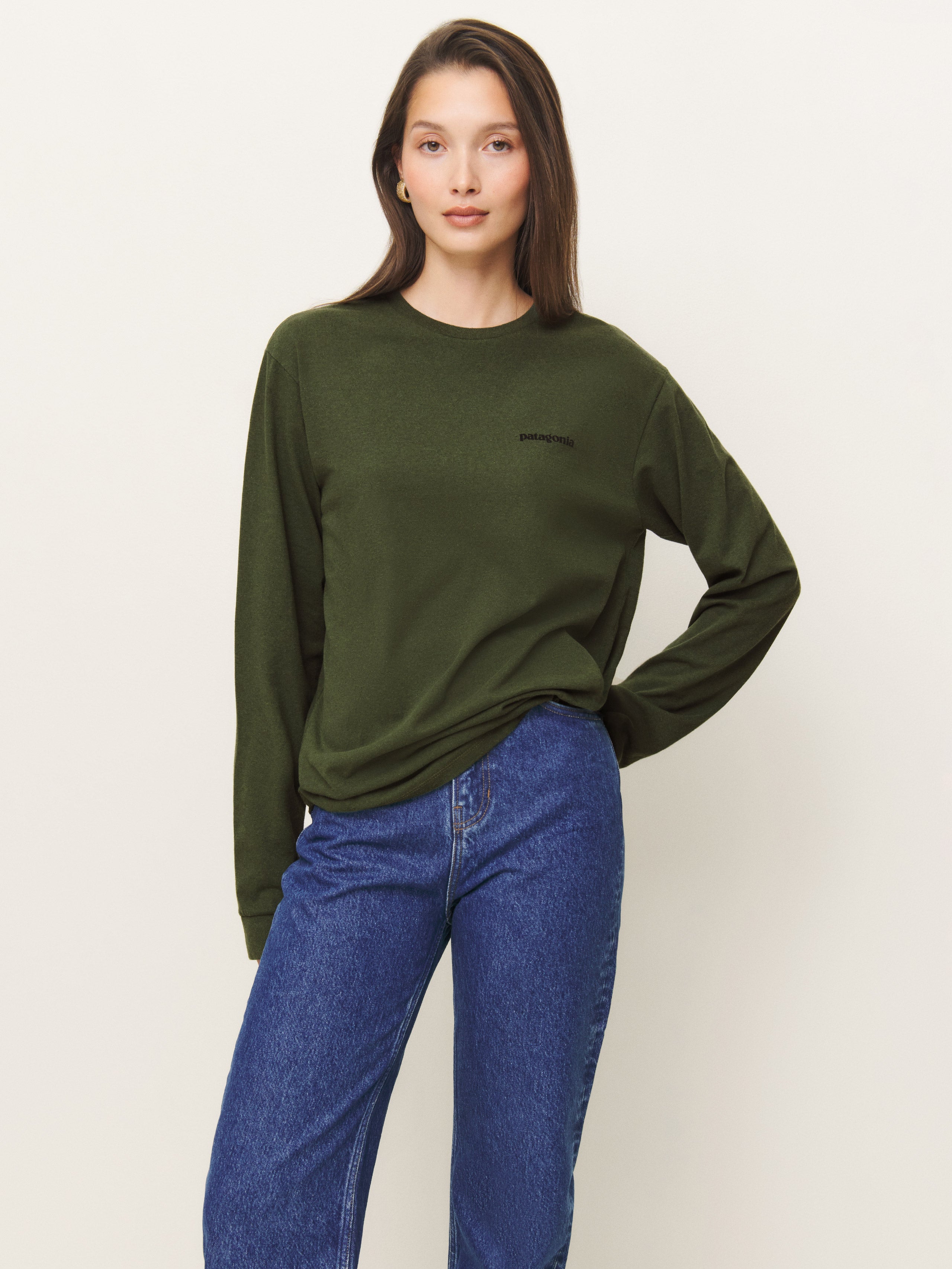 On top of it. Shop the Patagonia M's L/s P-6 Logo Responsibili-tee, a sustainable tee from Reformation.