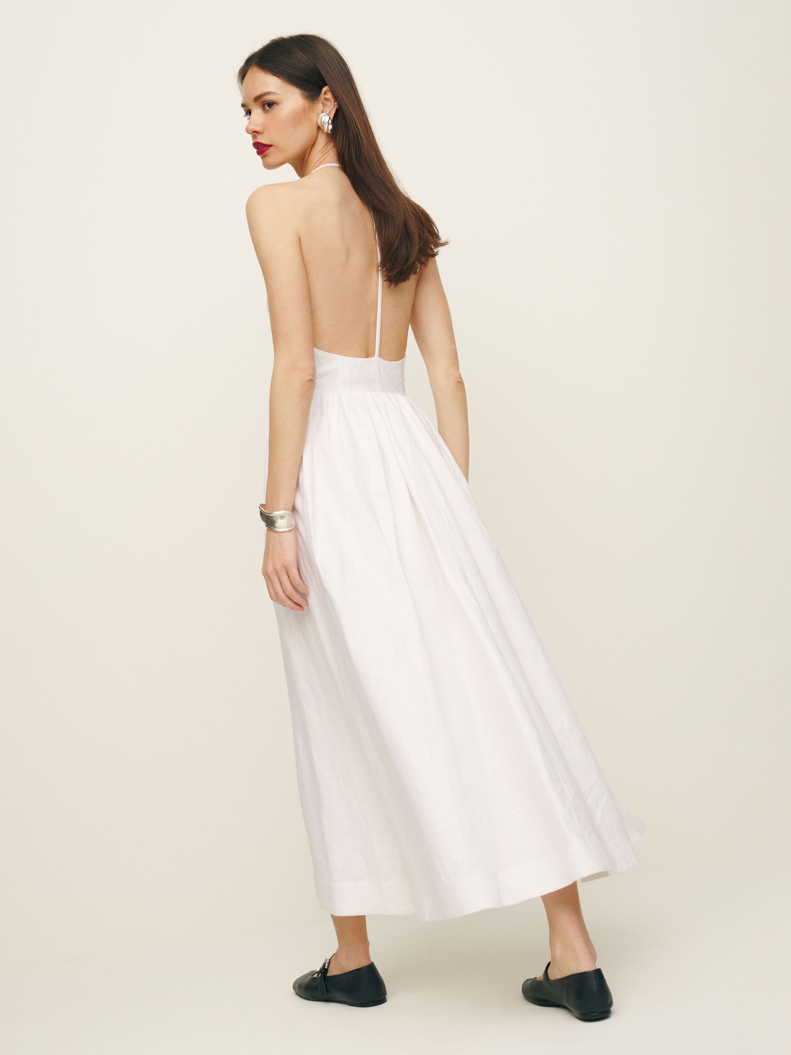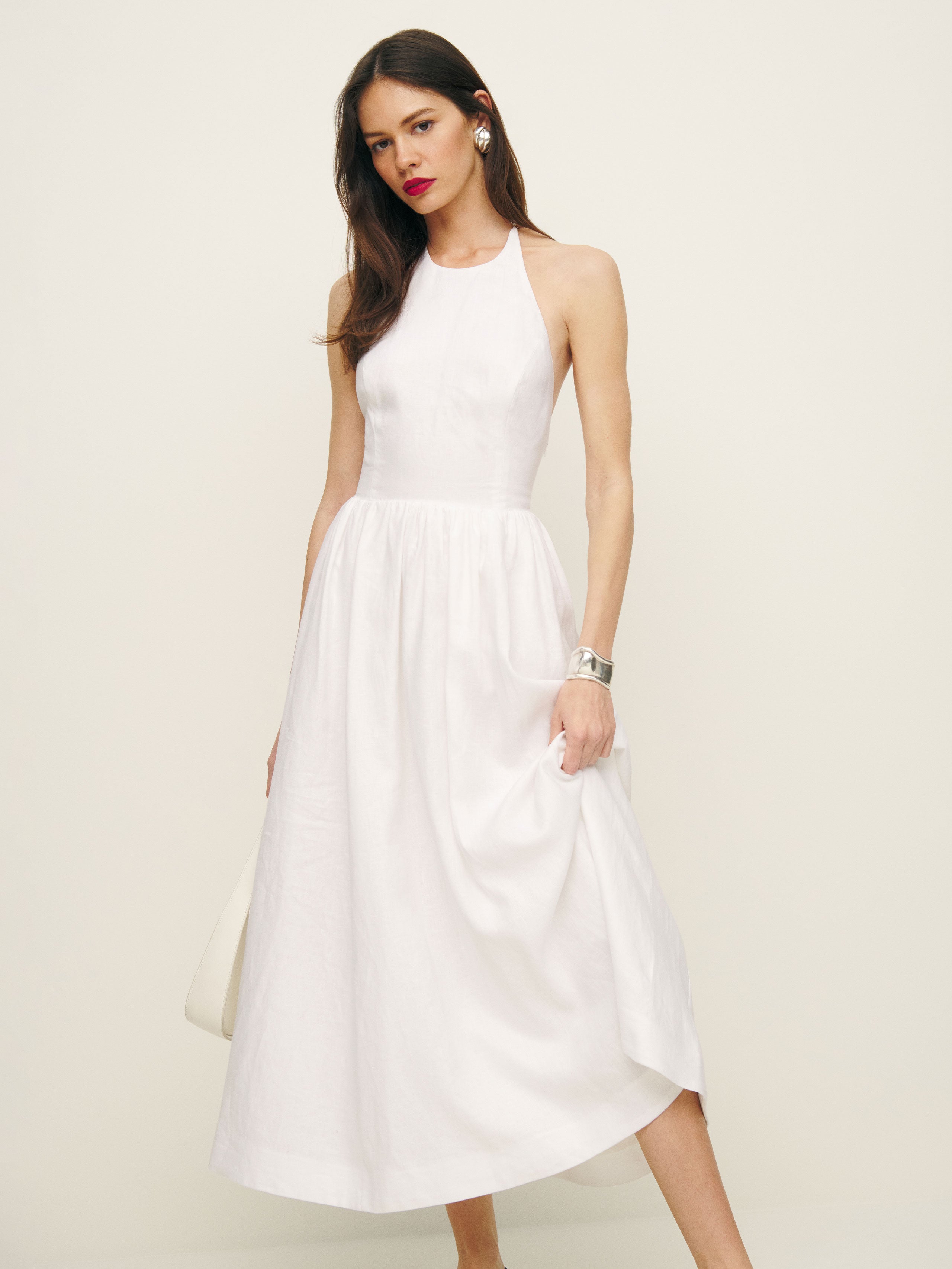 How classic. Shop the Percy Linen Dress from Reformation, a midi length dress with a high halter neckline.