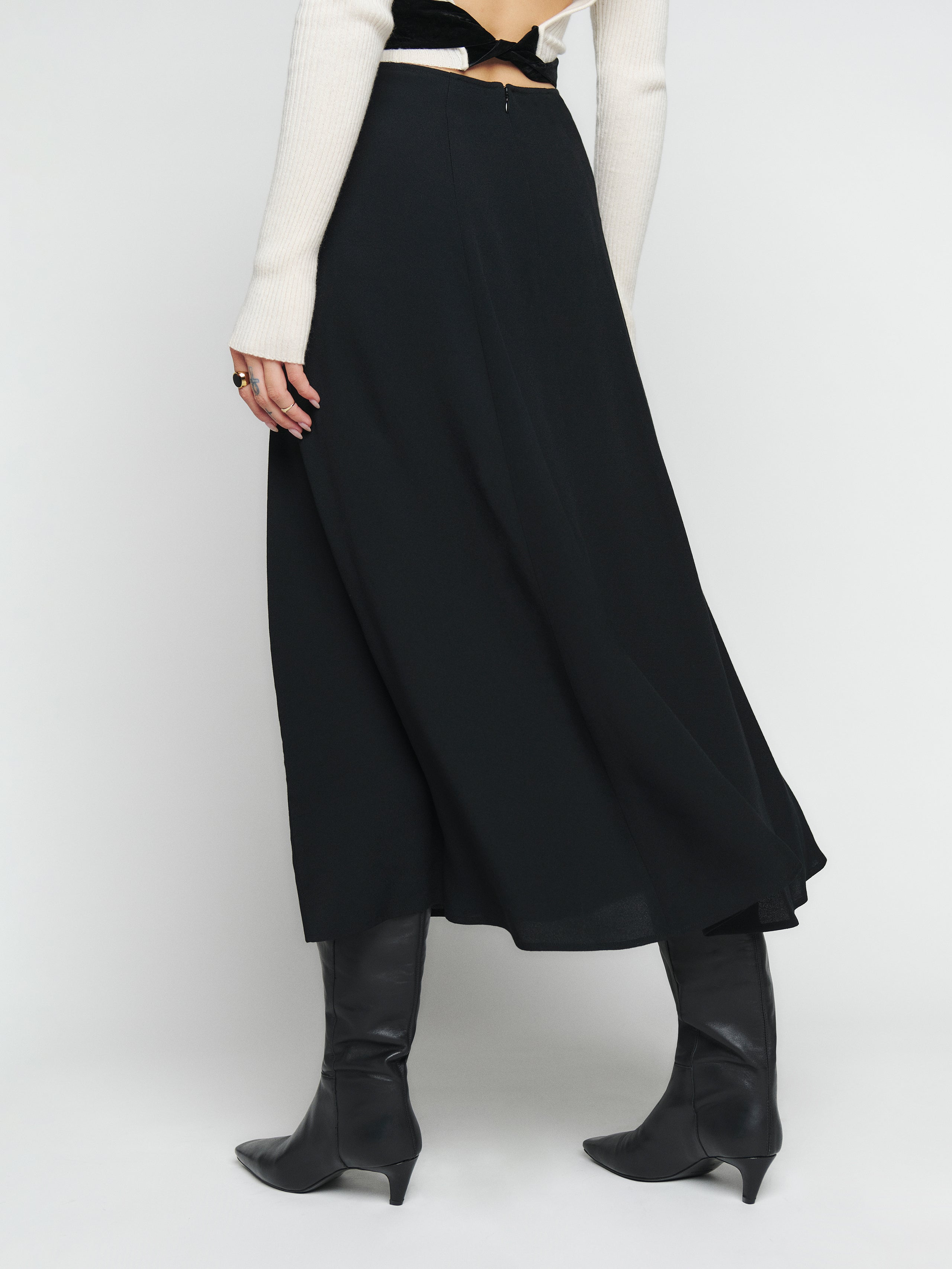 Wear the skirt. Shop the Petites Zoe Skirt, a sustainable skirt from Reformation.