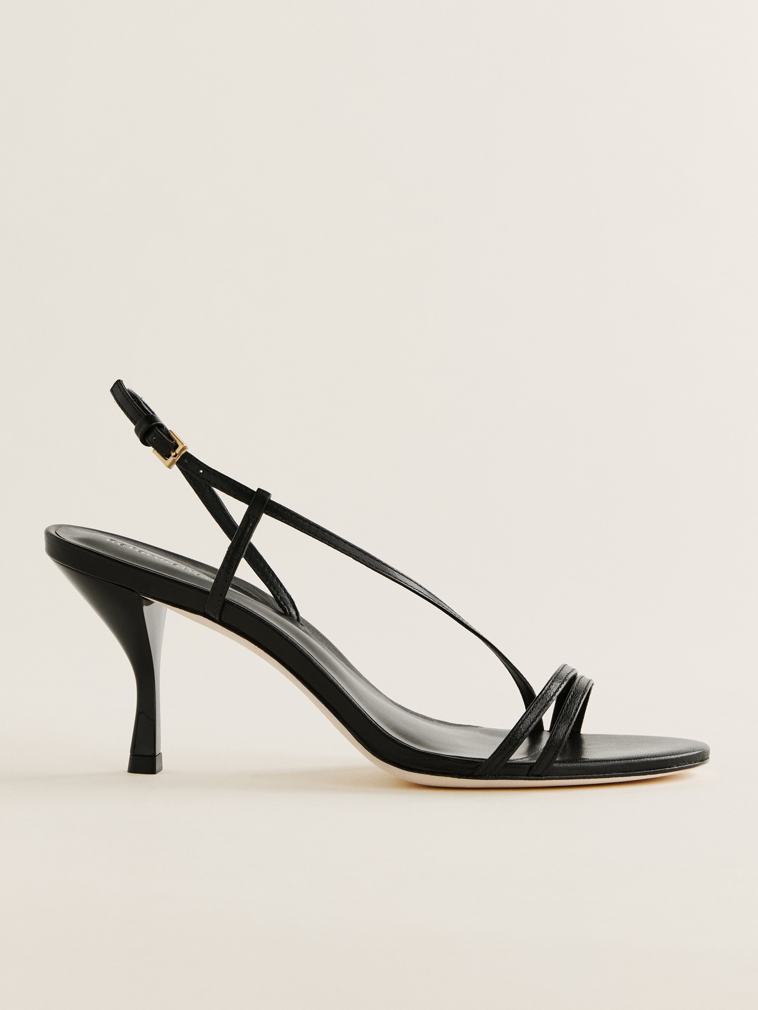 Wear me. Shop the Petunia Heeled Sandal from Reformation, a heeled sandal with asymmetrical straps at the upper and a strap at the ankle.