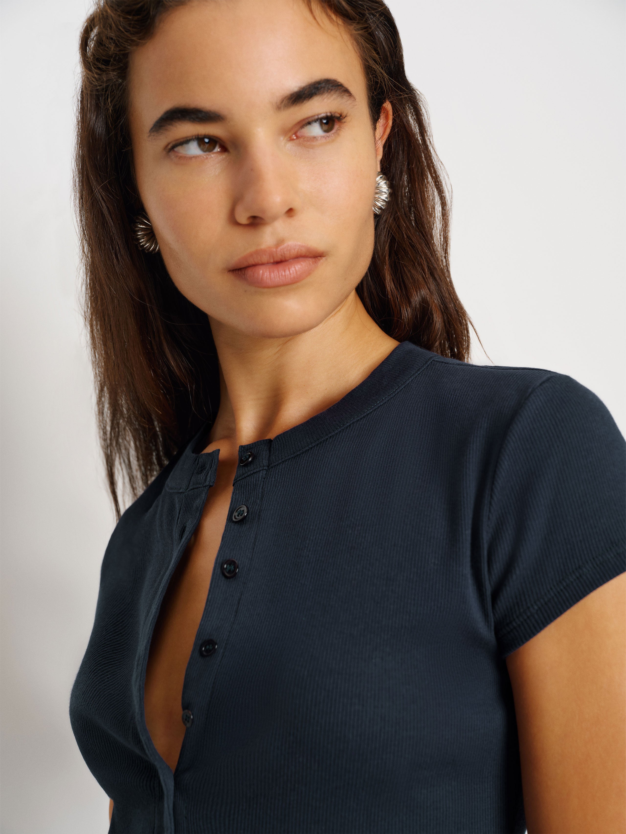 Easy little knit. Shop the Raelynn Knit Top from Reformation, a short sleeve top with a button front.