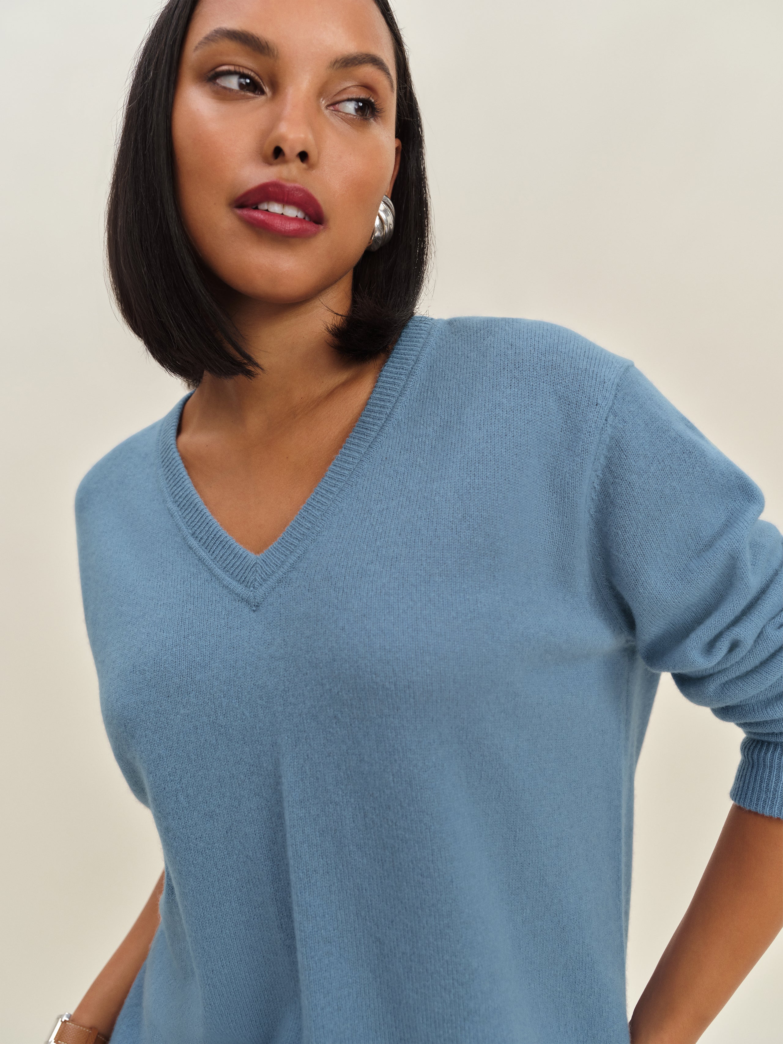 Shop the Remi Cashmere V Neck from Reformation, a relaxed fitting cashmere sweater with a v neckline.
