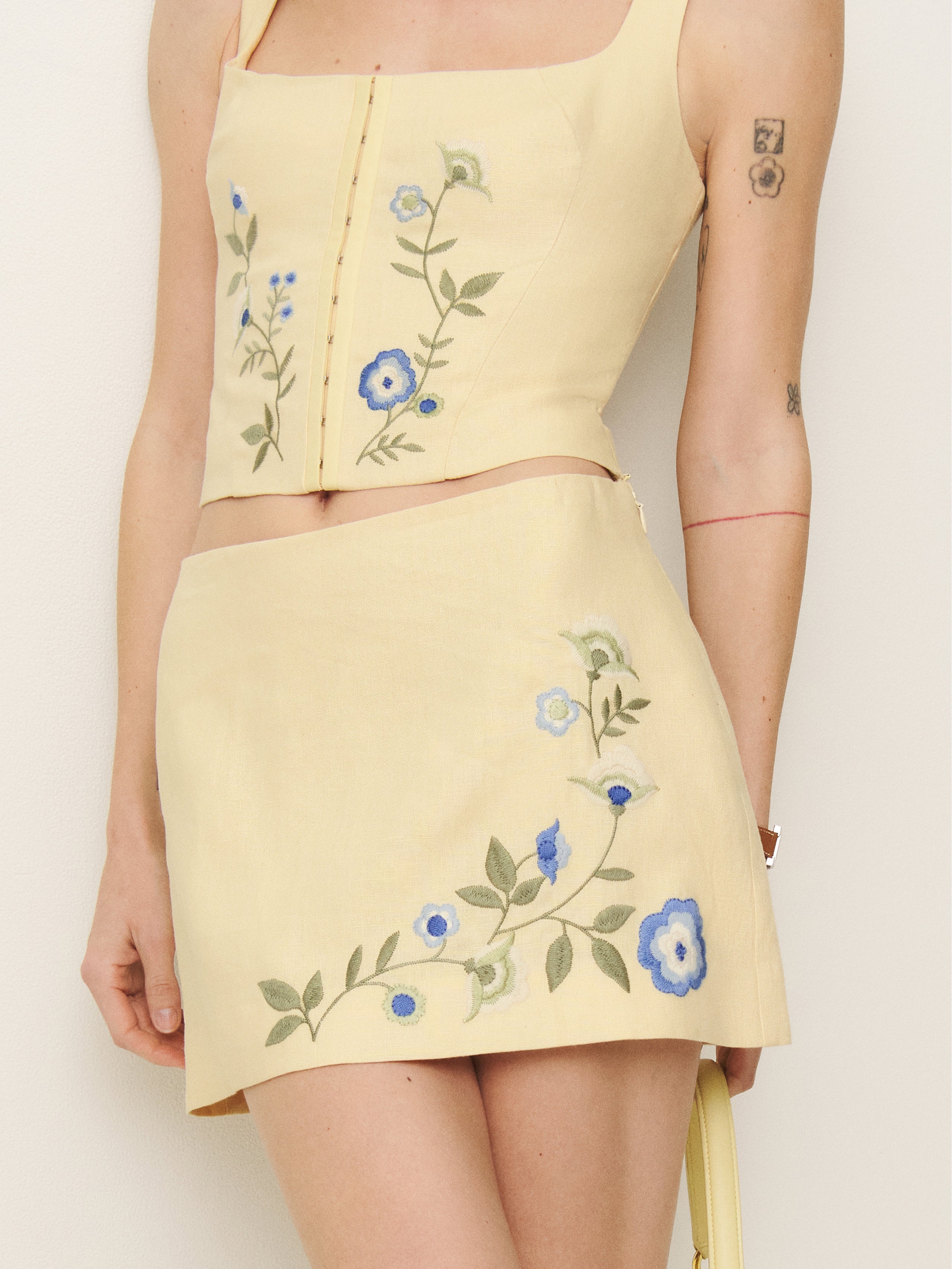 Let those legs out. Shop the Ren Linen Skirt from Reformation, a low-rise mini skirt with a...