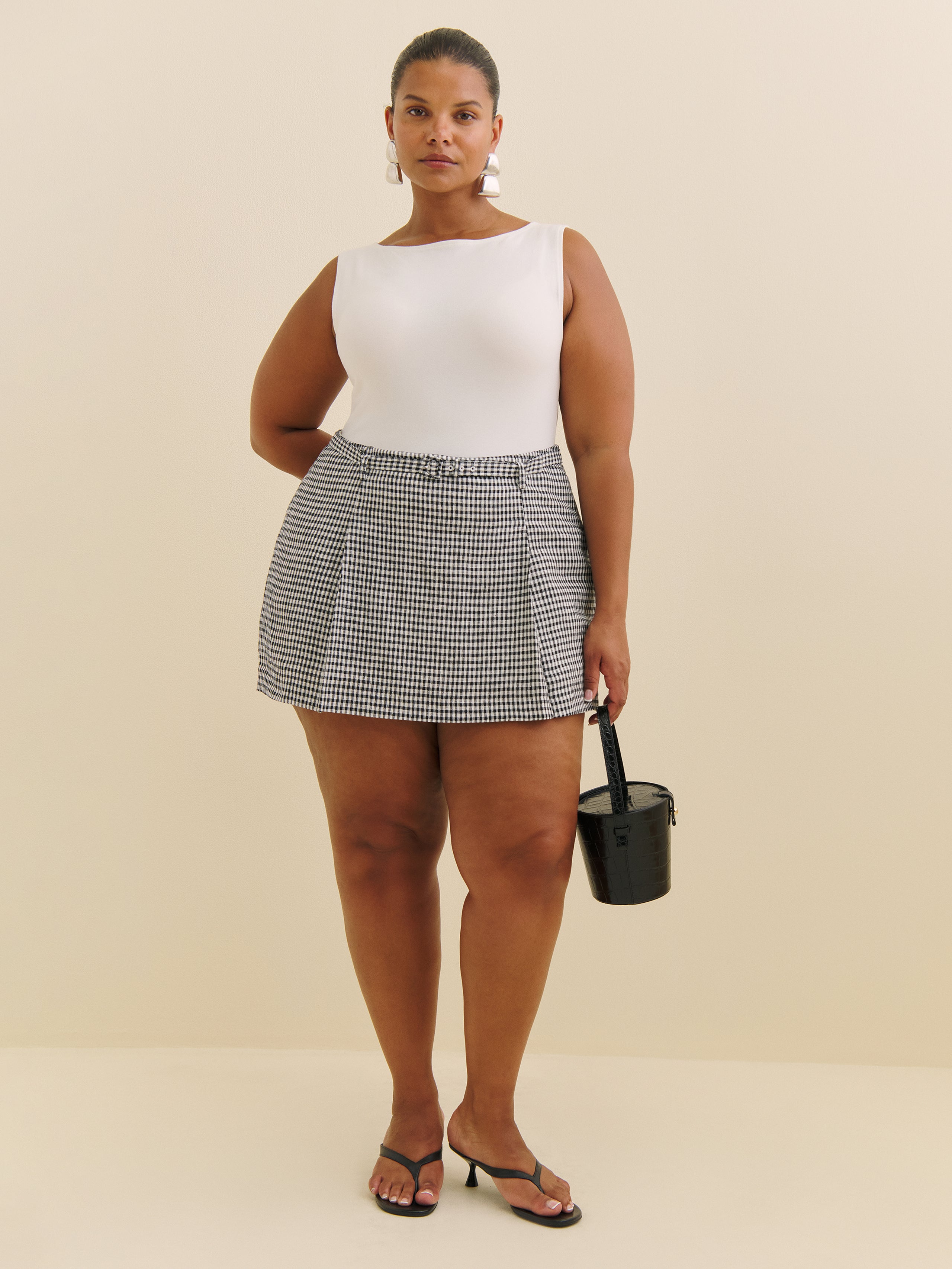 Wear the skirt. Shop the Rory Linen Skirt ES from Reformation, a mid-rise skirt with front pleats and a detachable belt.