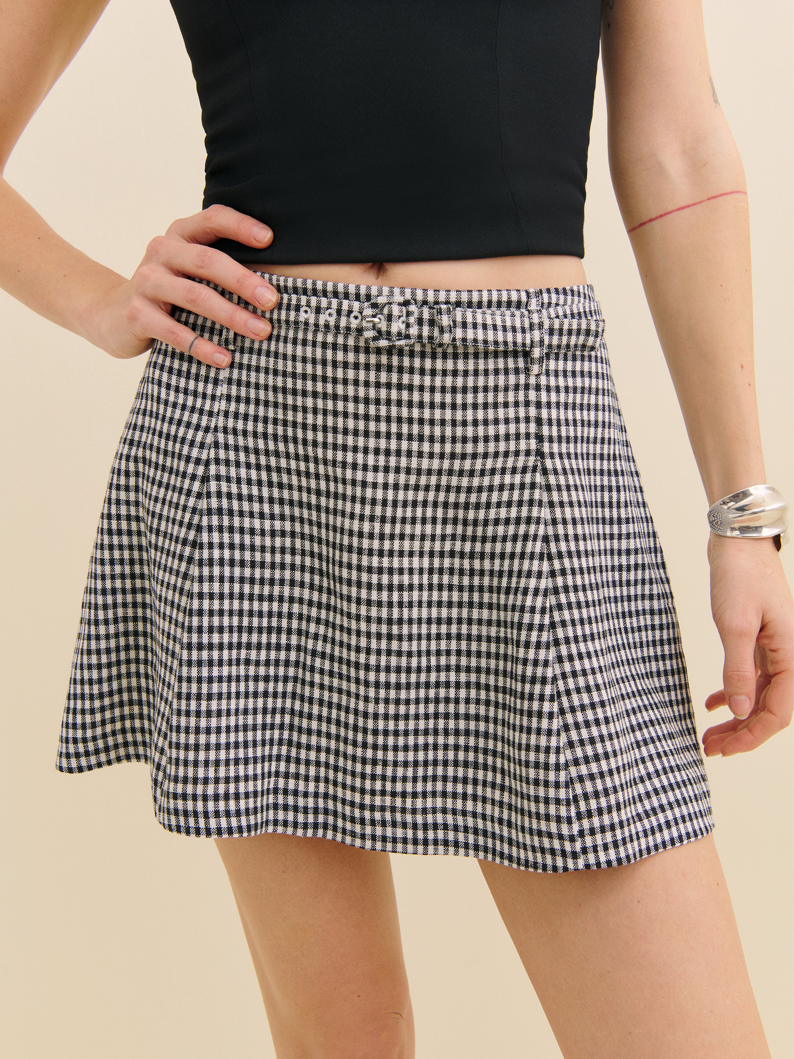 Wear the skirt. Shop the Rory Linen Skirt from Reformation, a mid-rise skirt with front pleated detailing and a detachable belt.