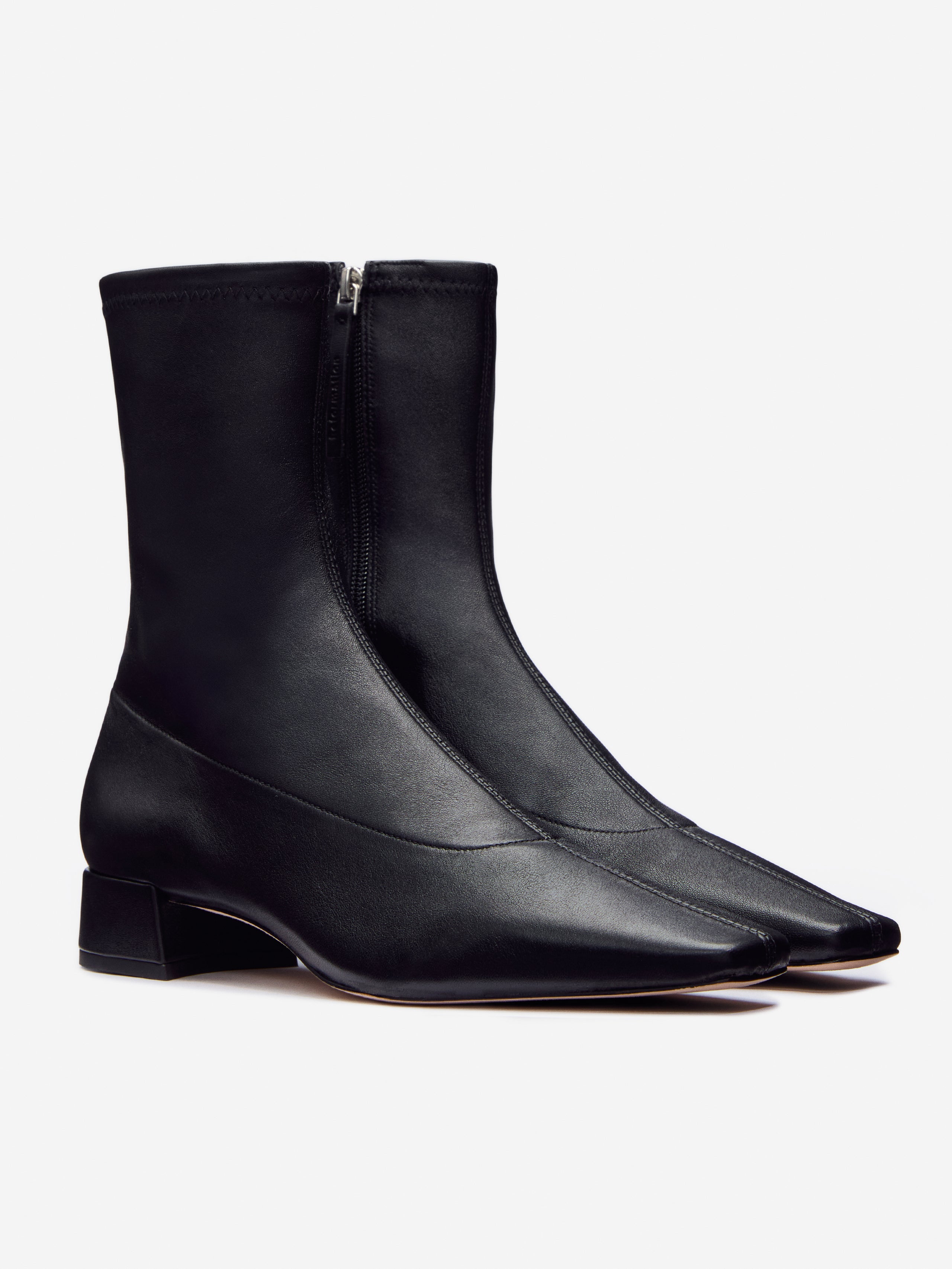 These boots were made for walking. Shop the Rosina Ankle Boot from Reformation, a block heel ankle boot with a square toe and seam detailing.