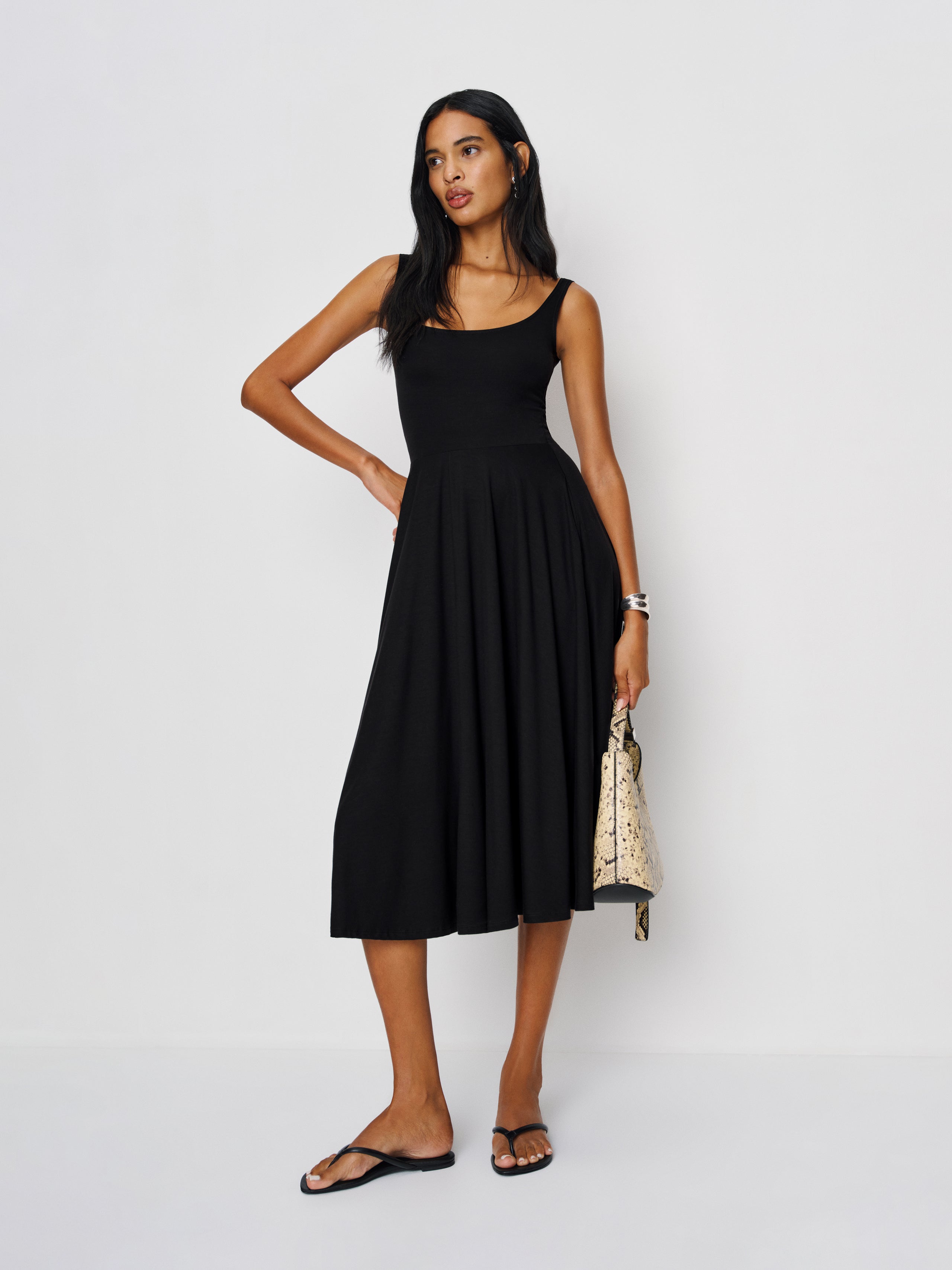 Look cute, be comfortable. Shop the classic Rou Dress from Reformation, a midi length, fit and flare...