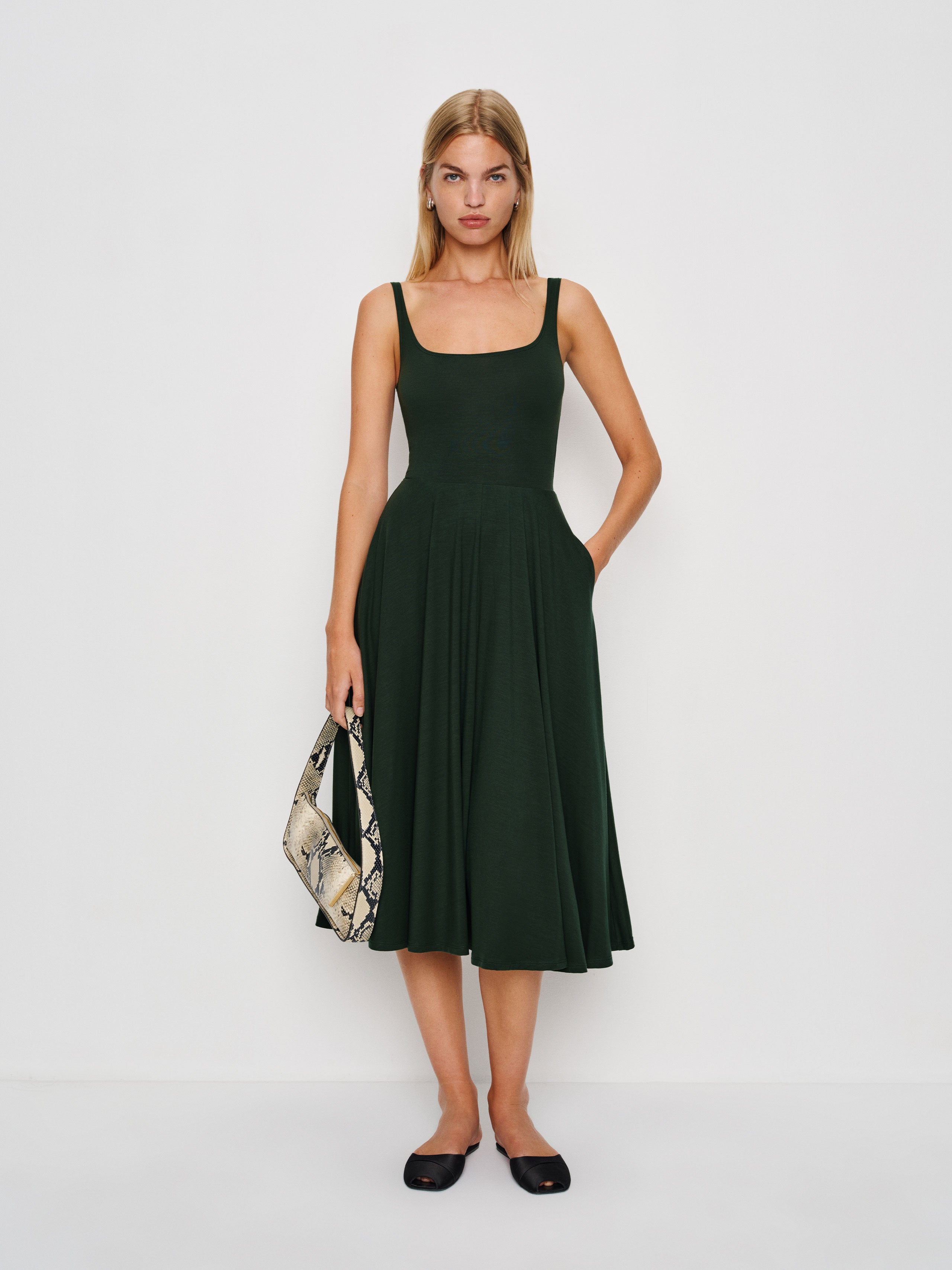 Look cute, be comfortable. Shop the classic Rou Dress from Reformation, a midi length, fit and flare...