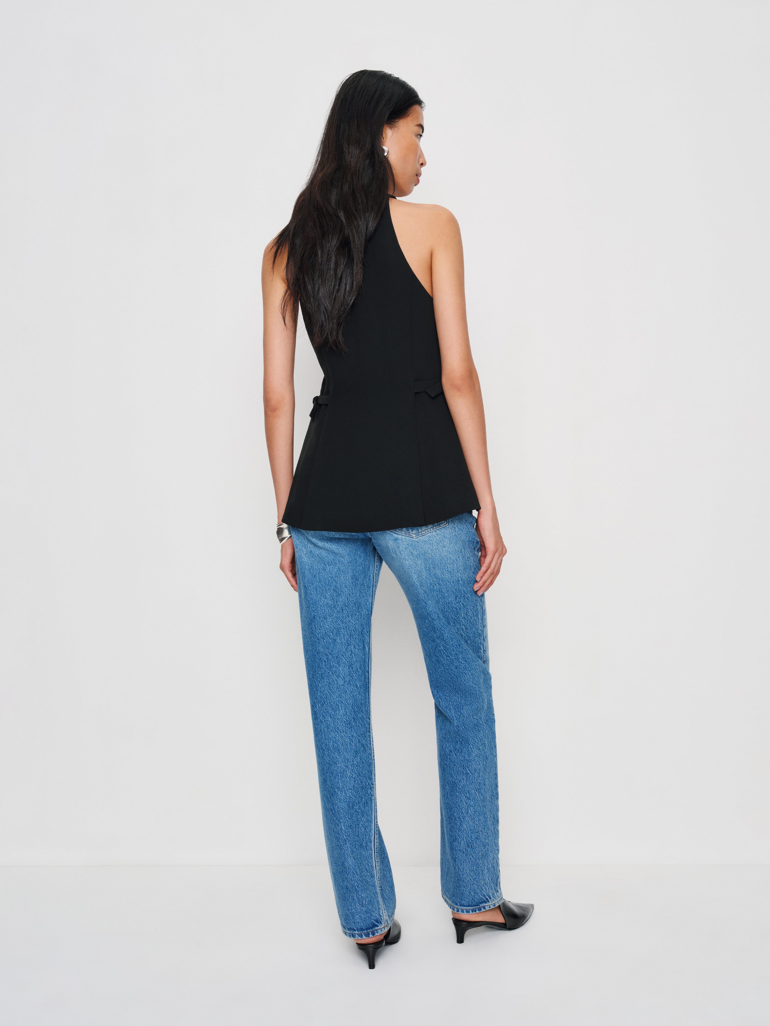 You must be new. Shop the Rowe Vest from Reformation, a sleeveless vest-style top with a functional...