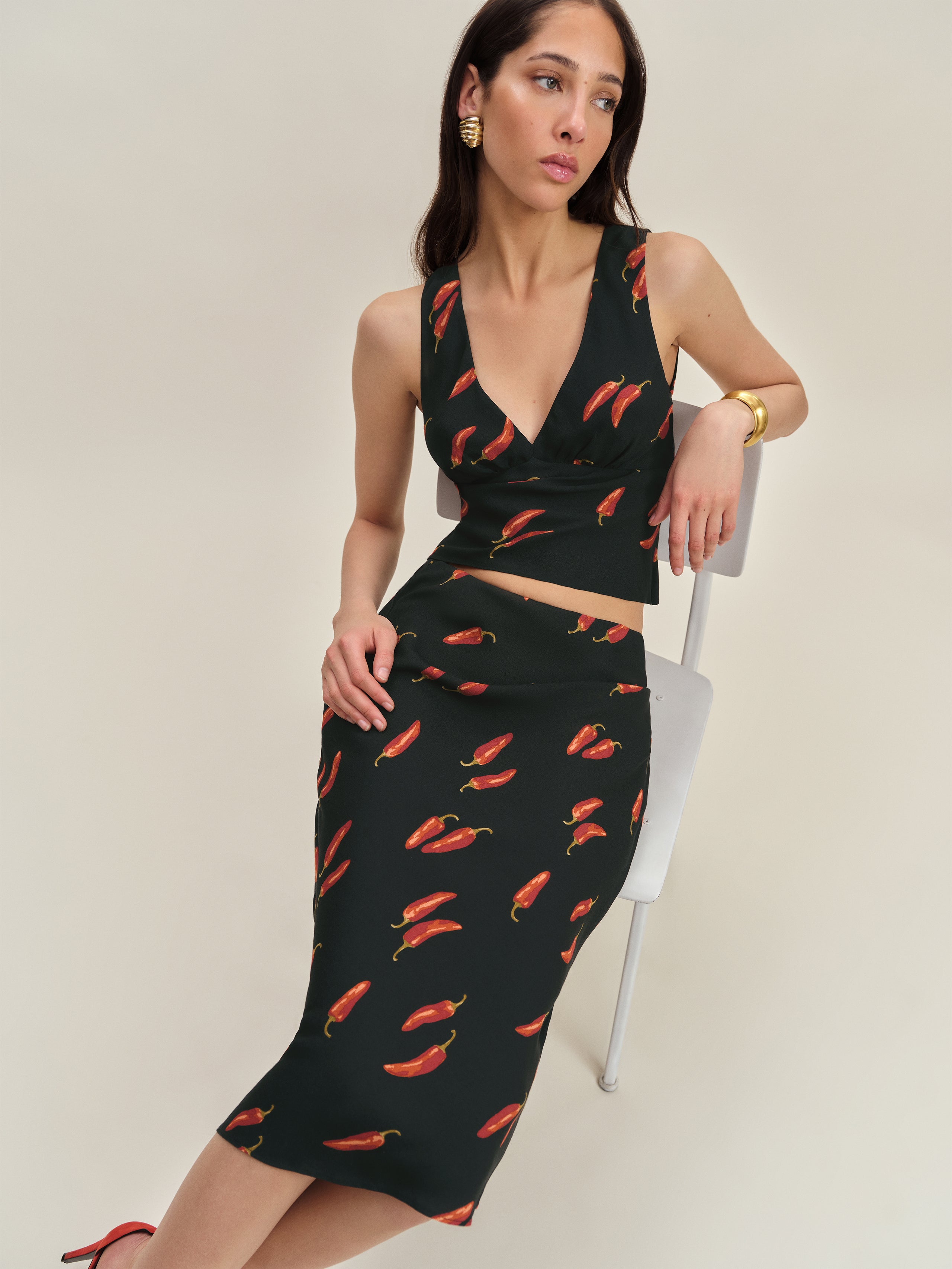 How classic. Shop the Ryan Two Piece from Reformation, a two piece set with a sleeveless top and matching midi skirt.