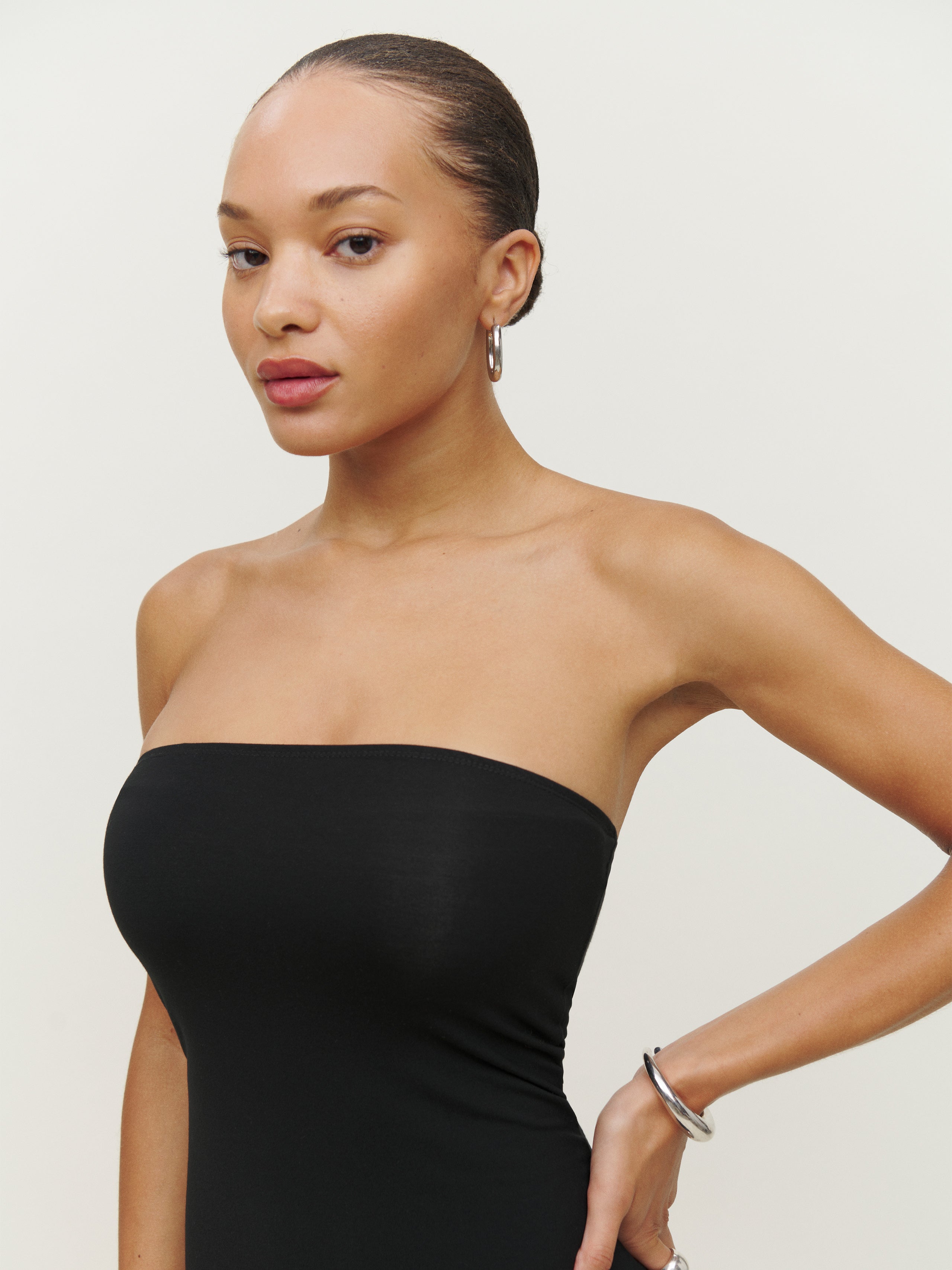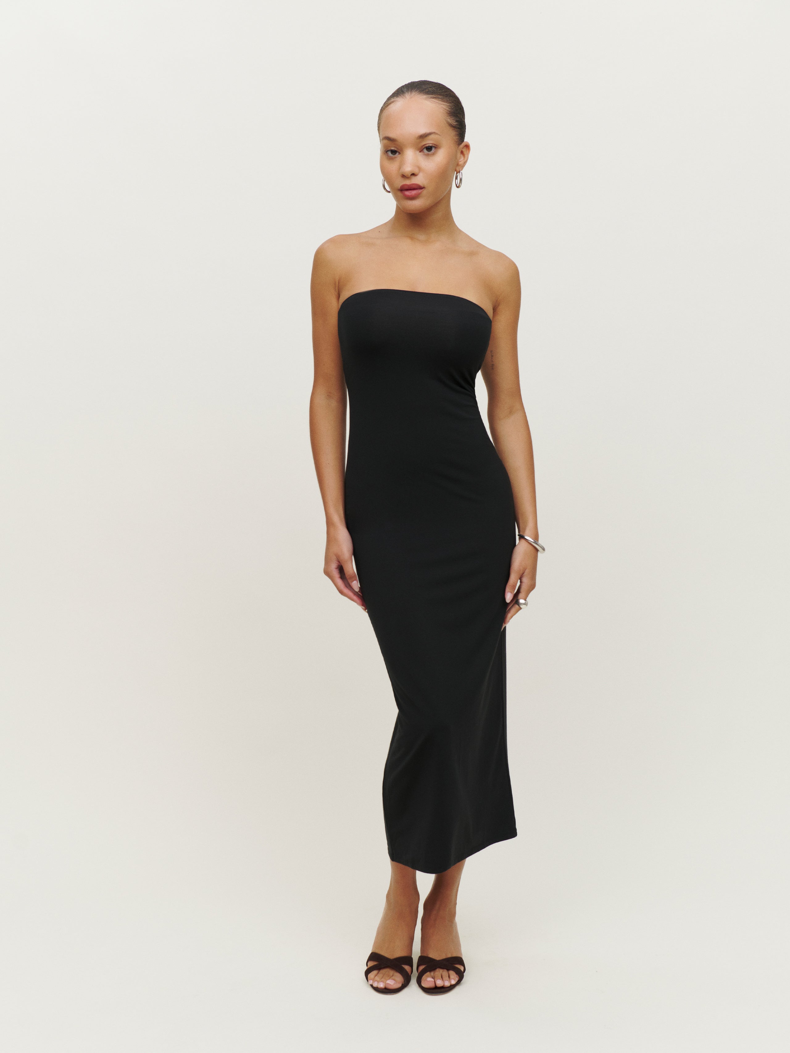 How classic. Shop the Ryden Knit Dress from Reformation, a strapless midi dress with a slim fit.