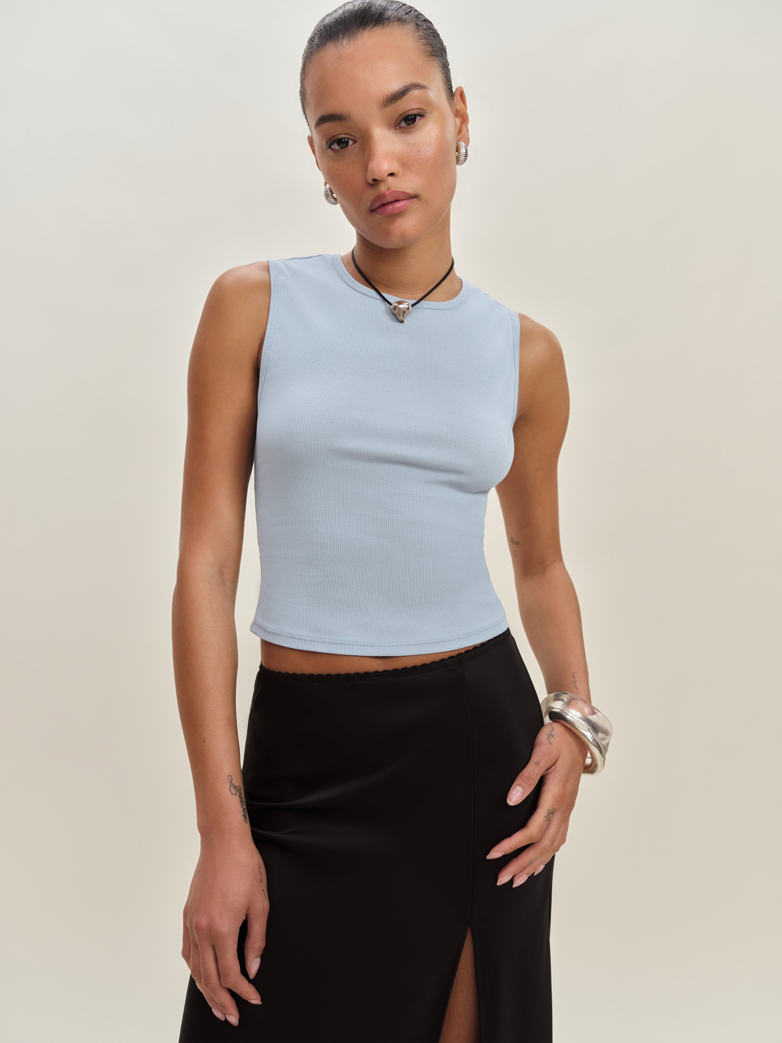 Pretty necessary. Shop the Ryland Tank from Reformation, a sleeveless, fitted top with a crew neckline.
