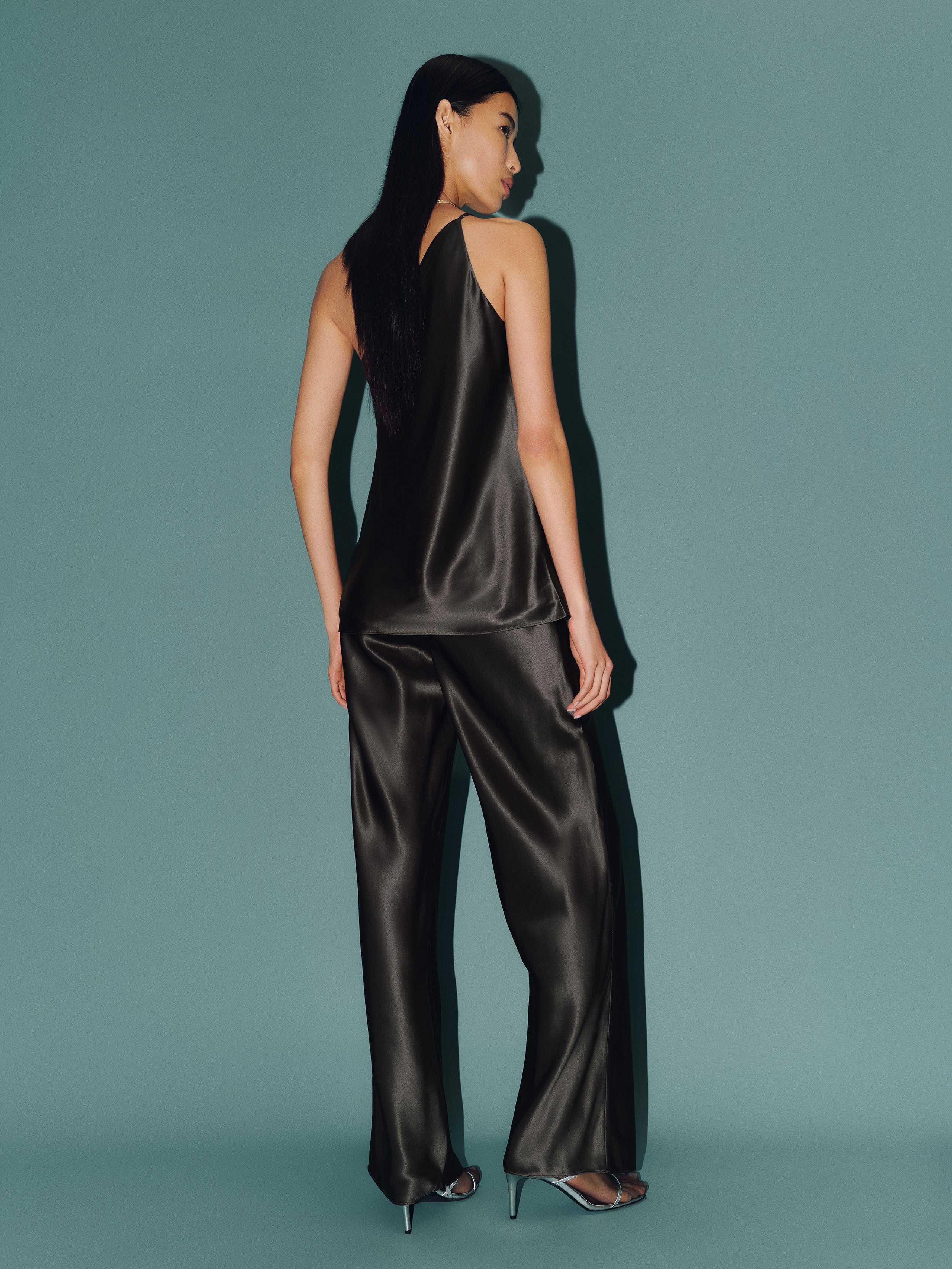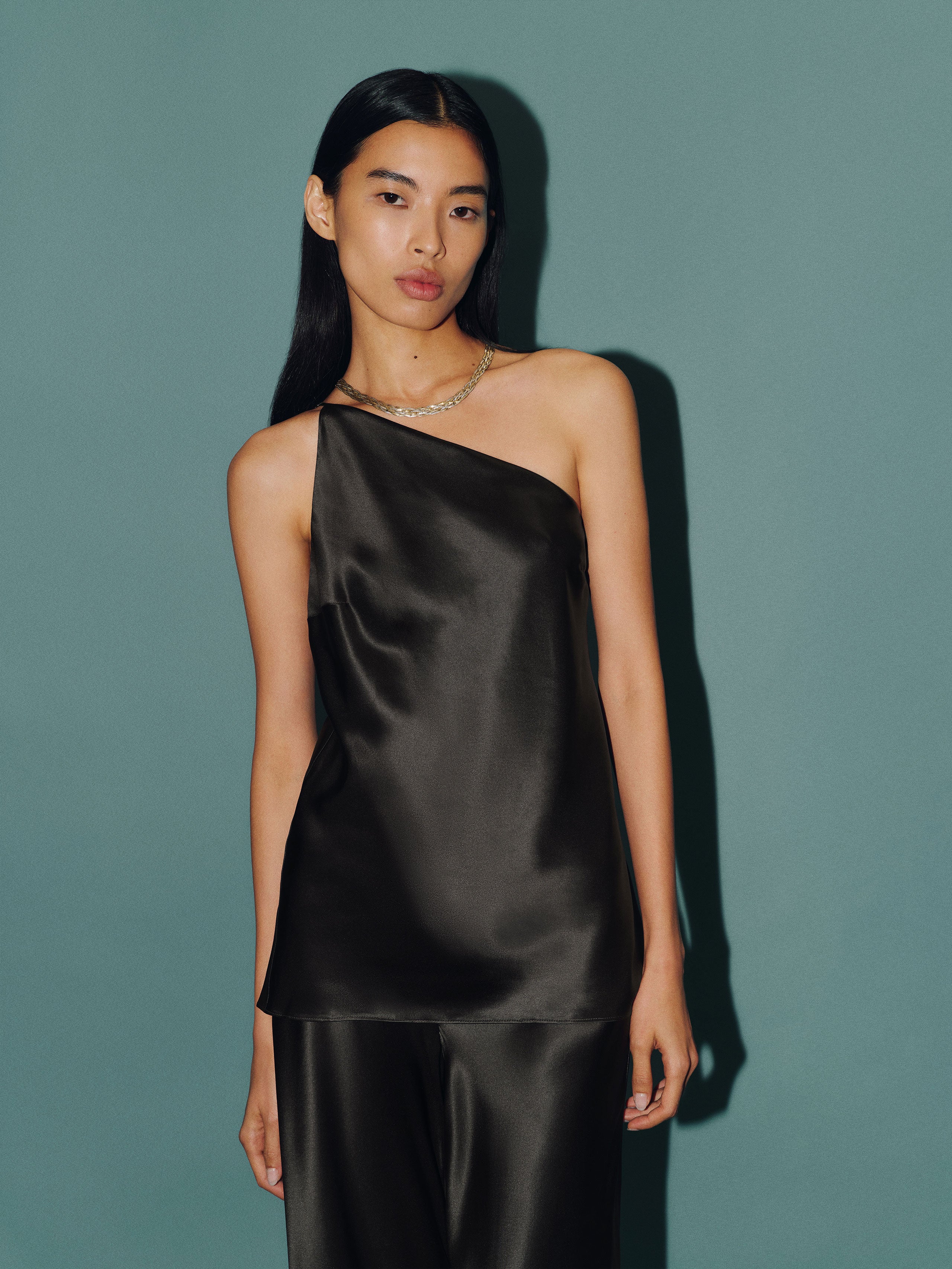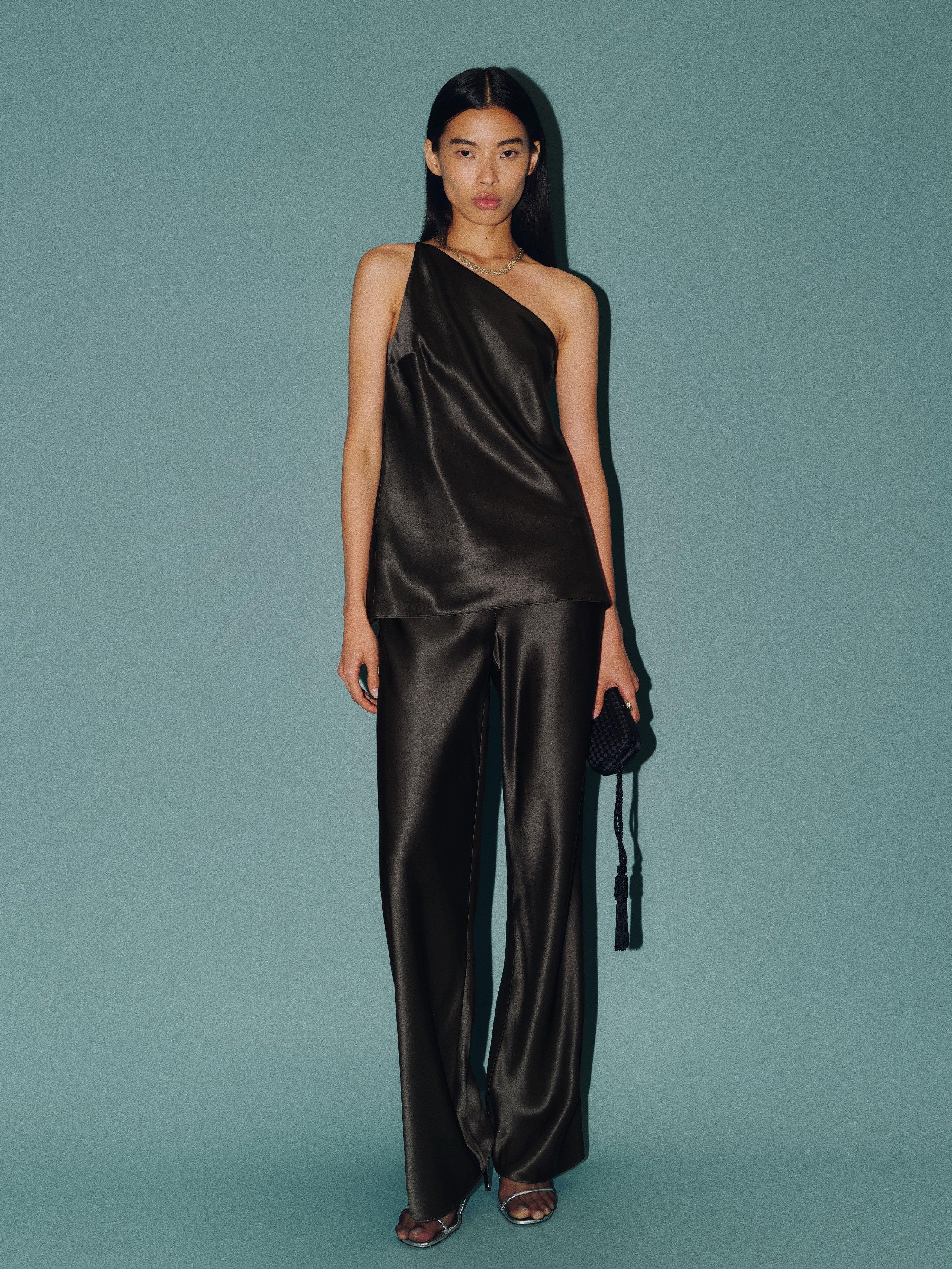 Have we met. Shop the Samantha Silk Two Piece from Reformation, a top with an asymmetrical neckline and matching mid rise pants. Easy, but doesn't look it.