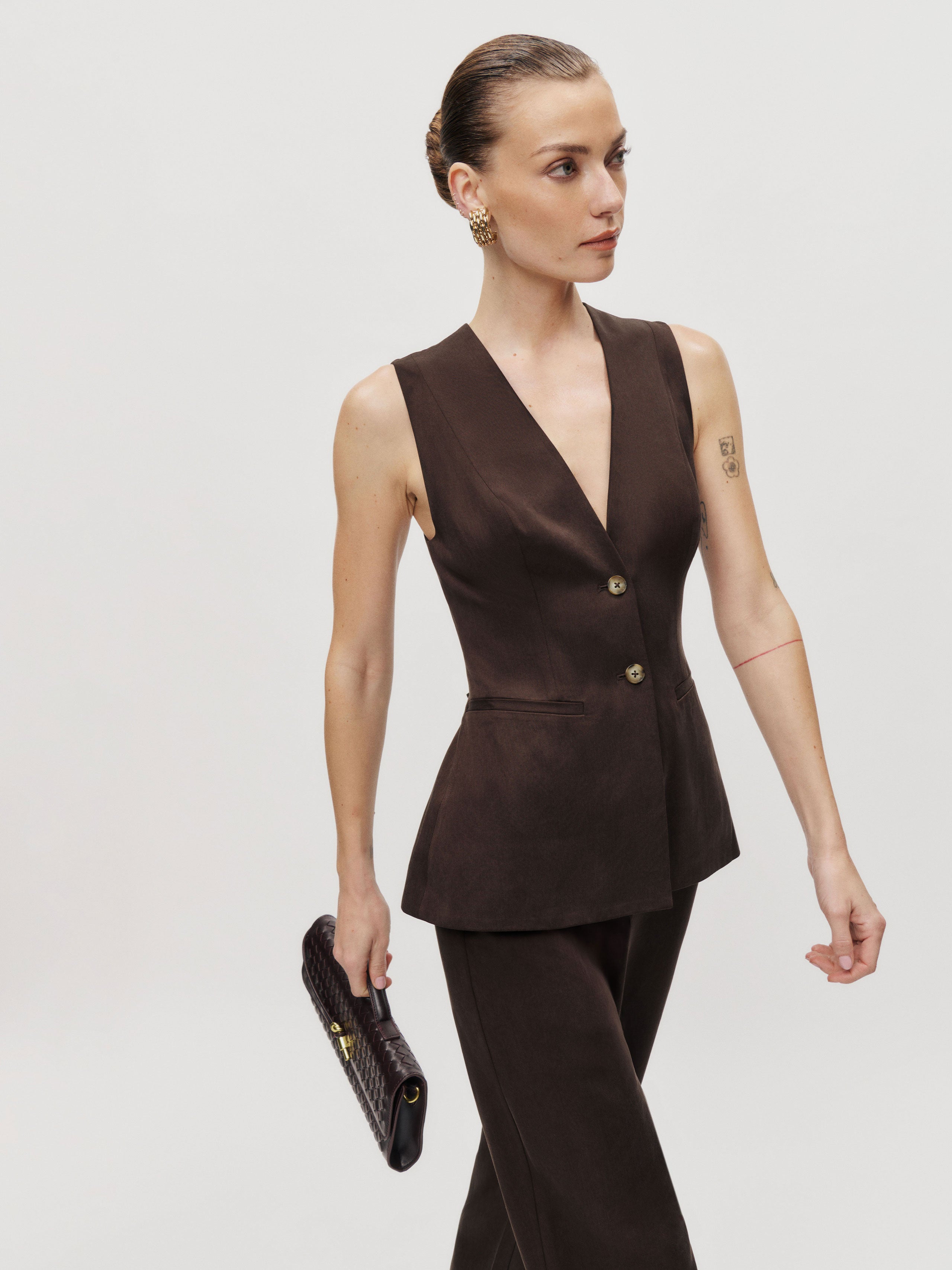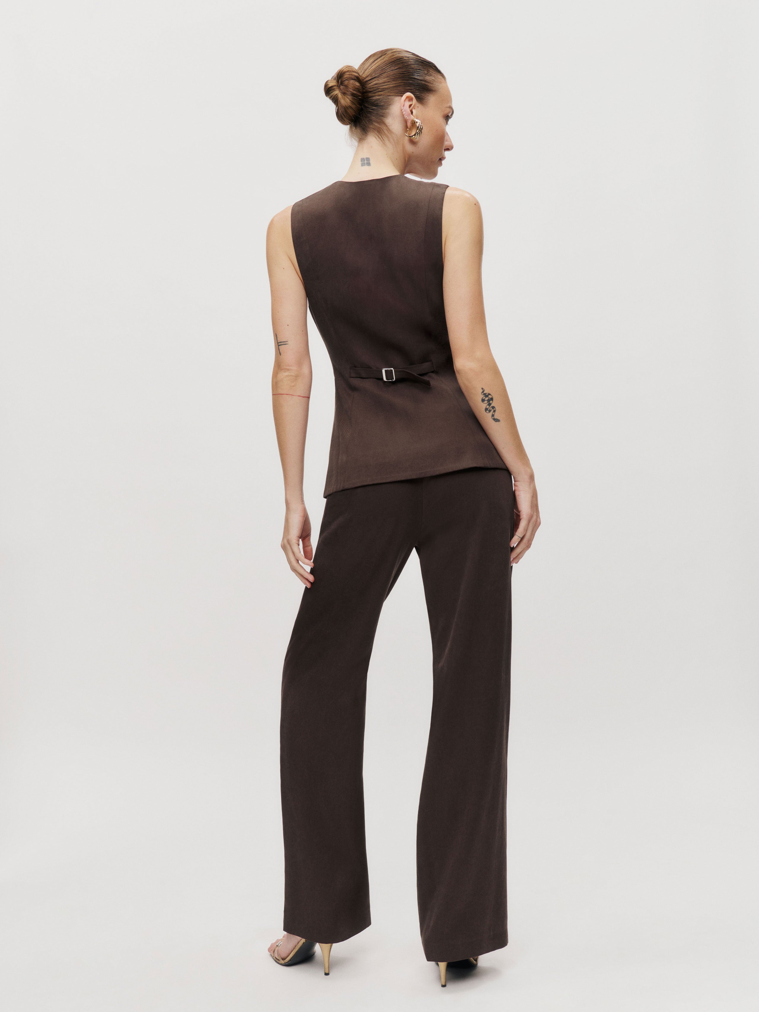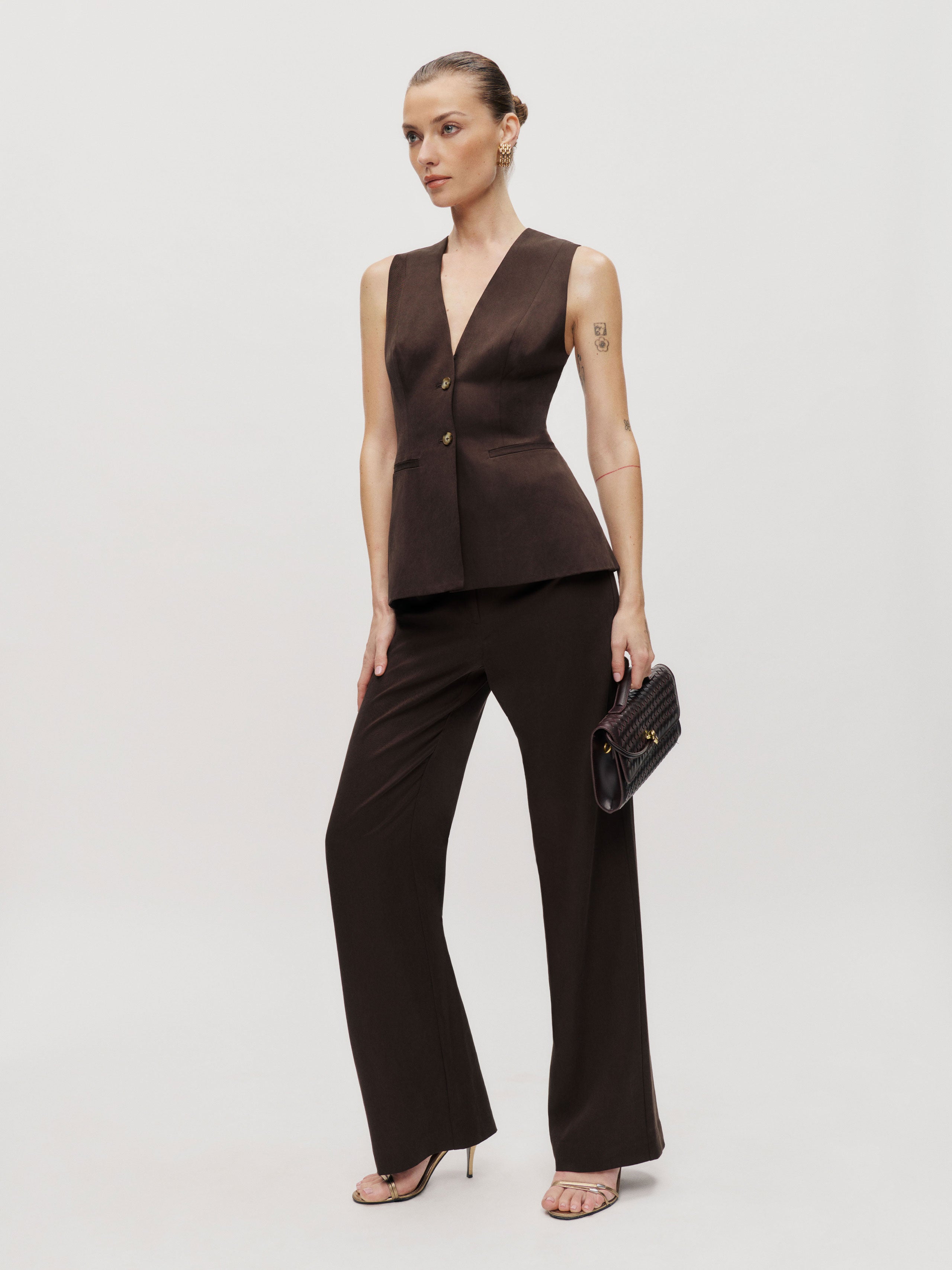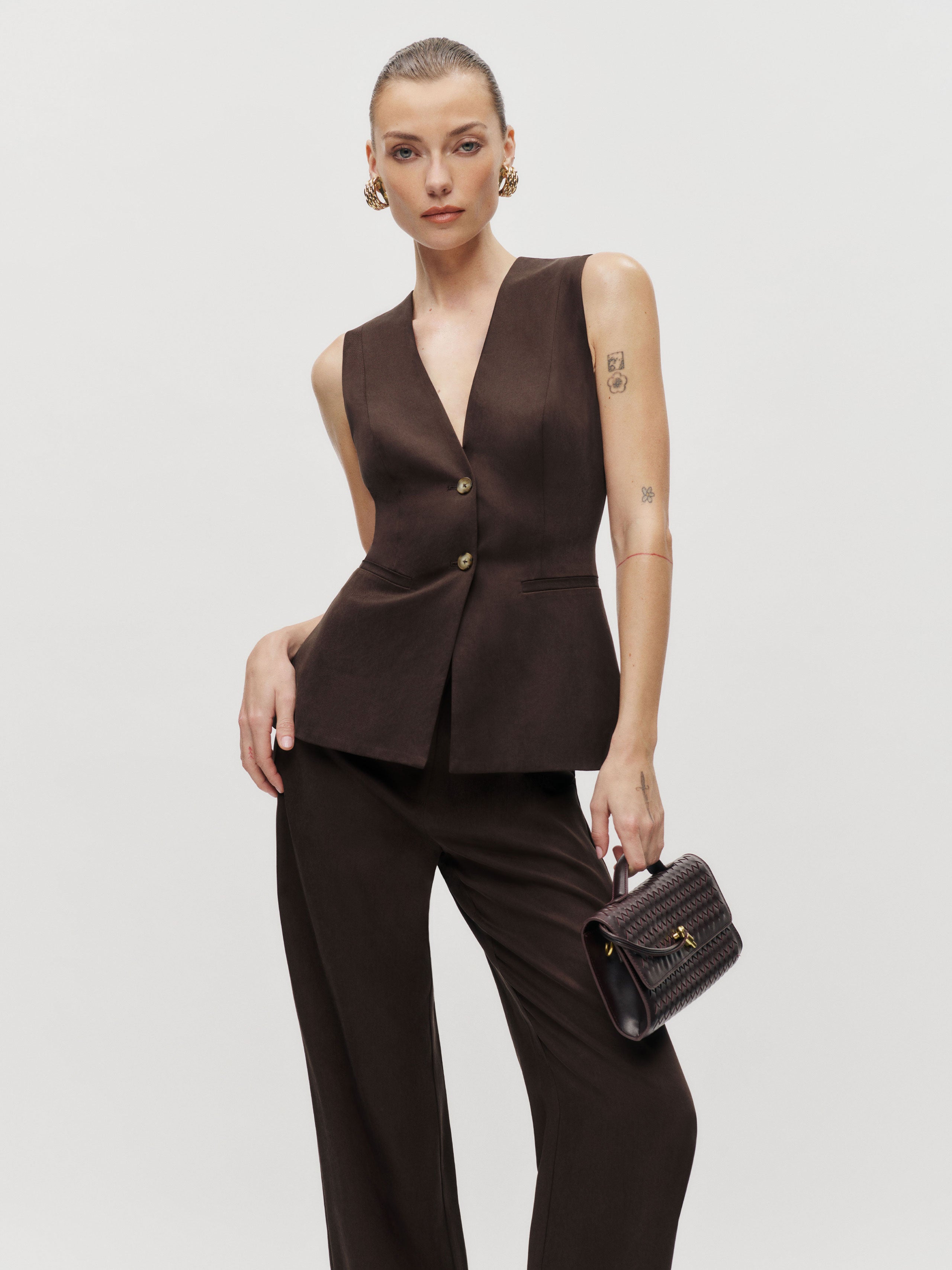 We make a good pair. Shop the Saylor Two Piece from Reformation, a two-piece set with a sleeveless vest and matching pants.
