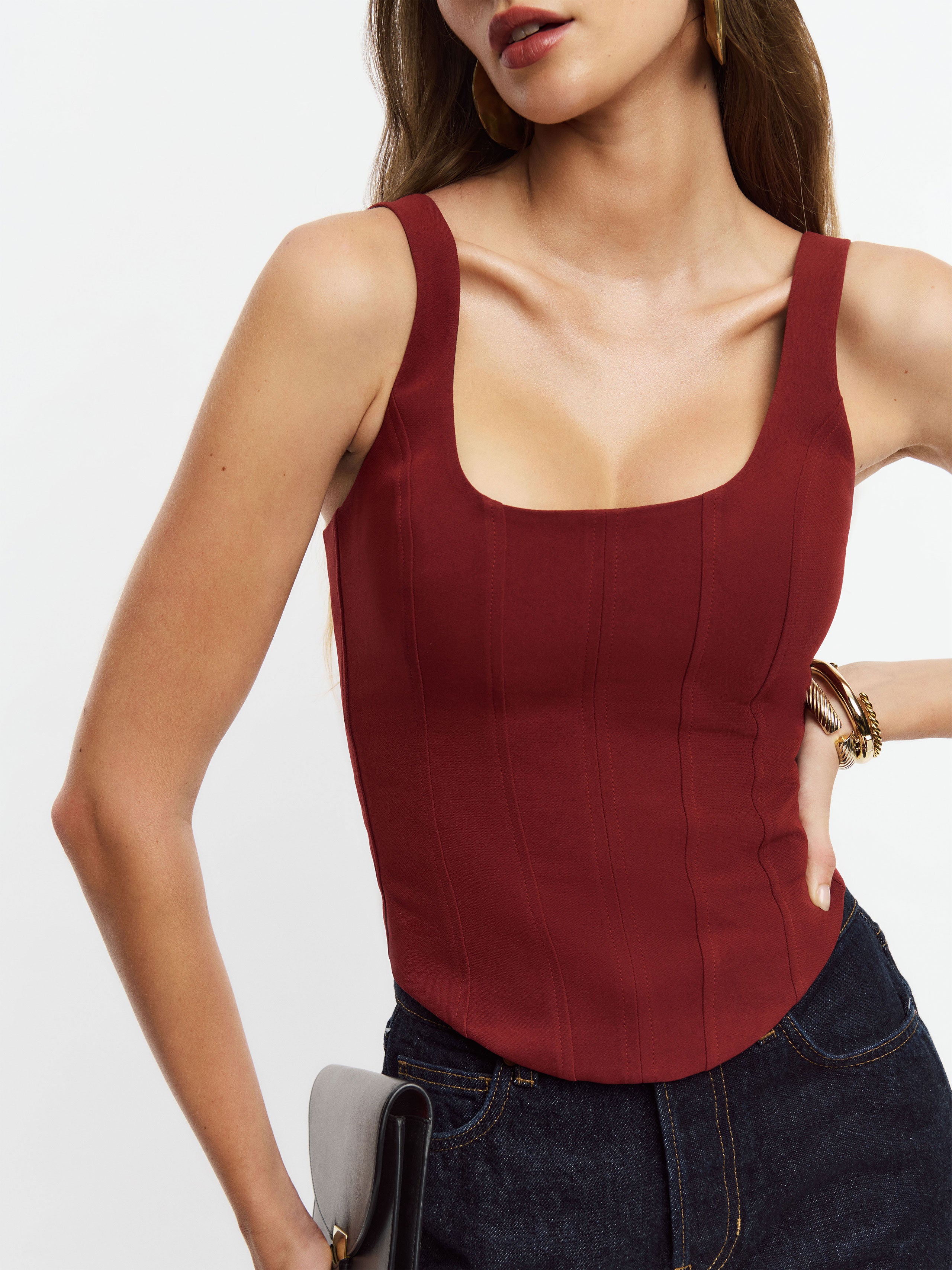 Up top. Shop the Seren Top from Reformation, a sleeveless top with a scoop neckline and curved hem.