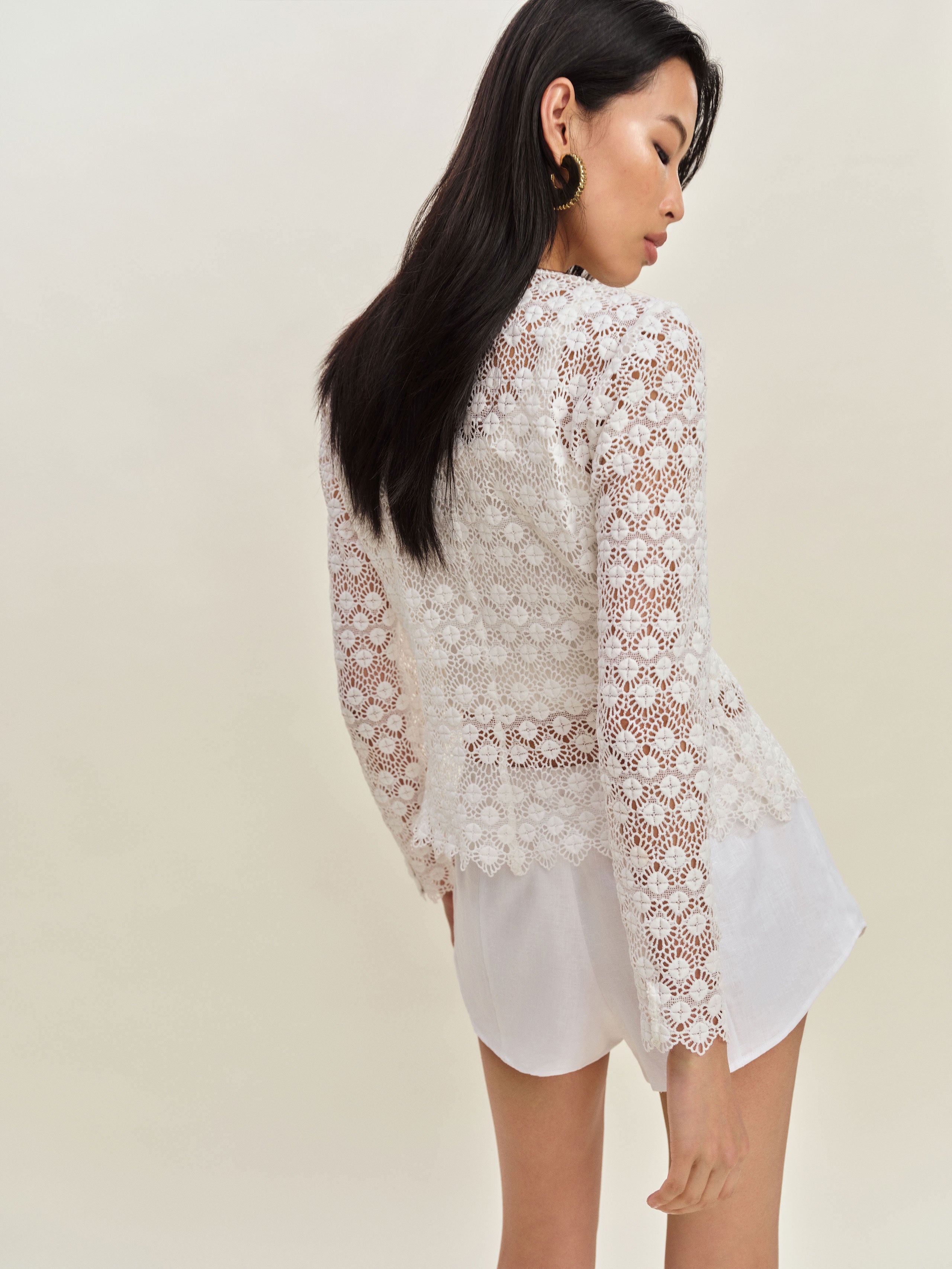 Layer up. Shop the Simona Top from Reformation, a long-sleeved knit top with a hook eye closure.