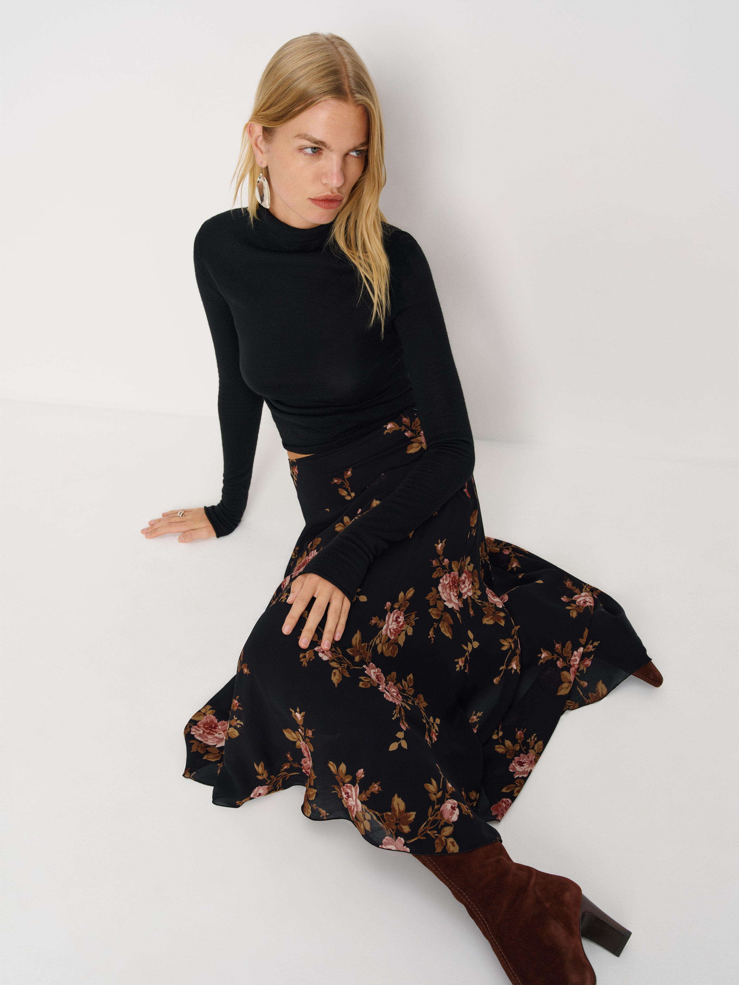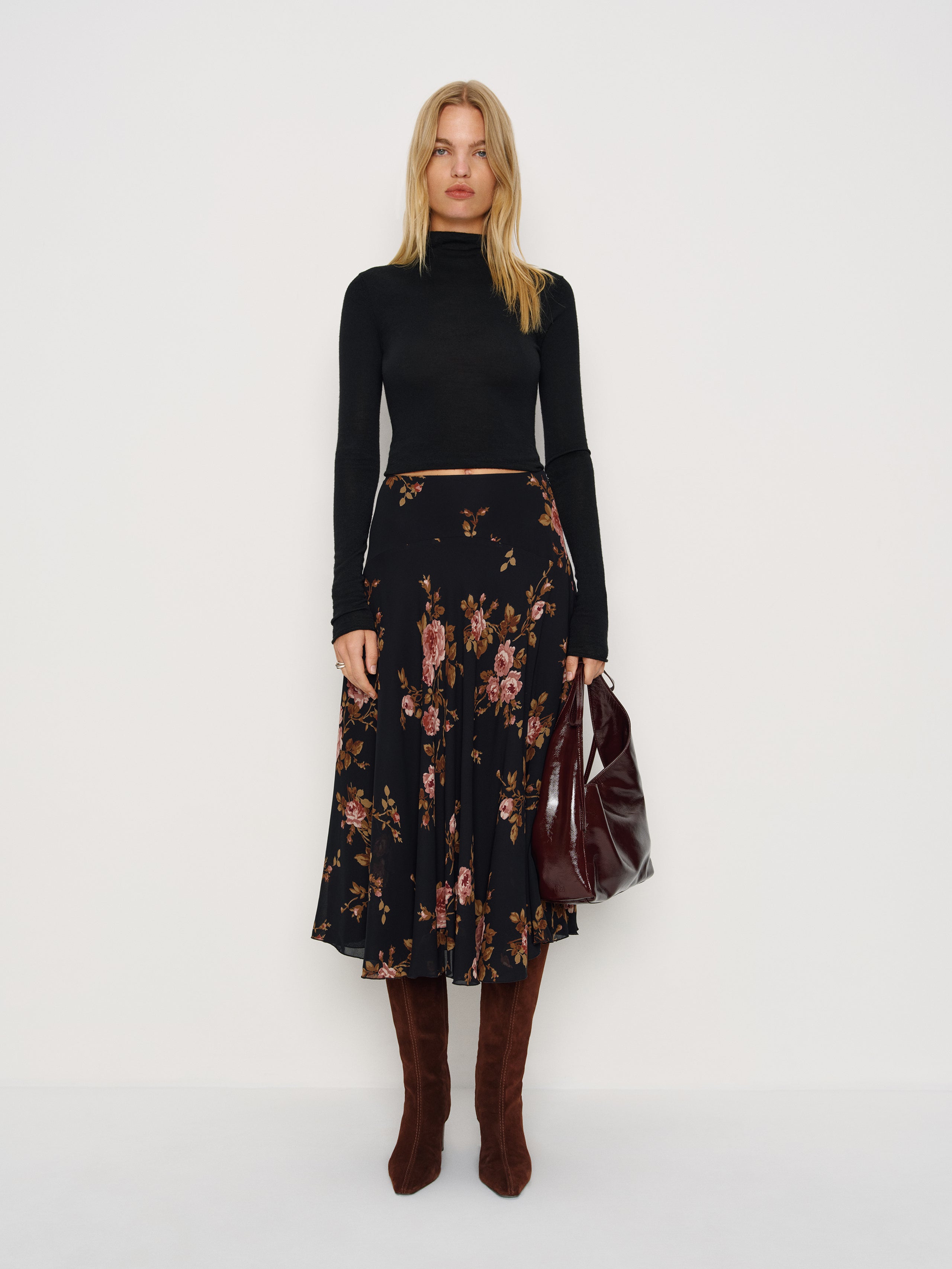 Let your skirt do the talking. Shop the Sophie Skirt from Reformation, a midi mid rise skirt with an A-line fit. What good outfits are made of.
