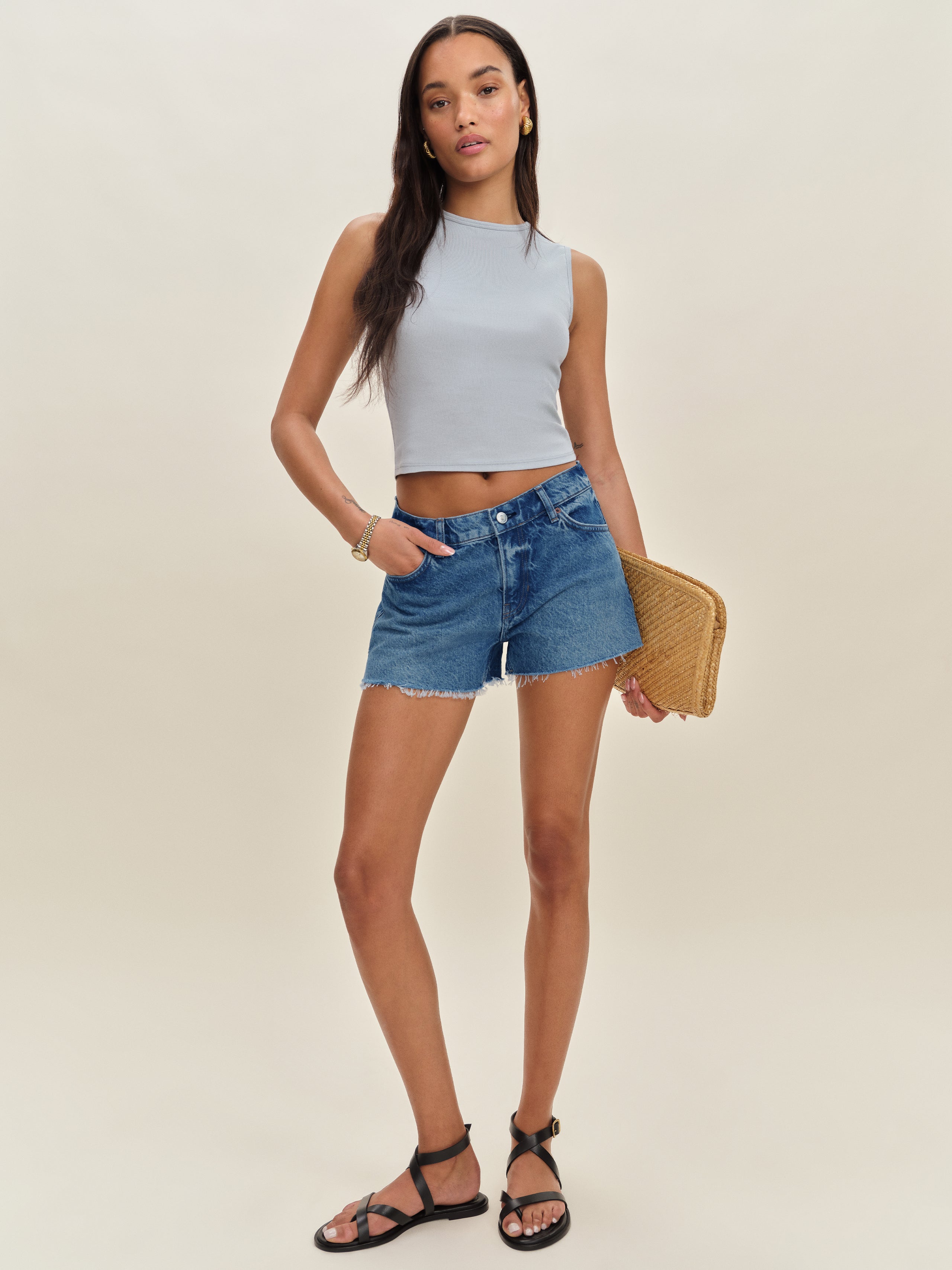 Shop the Sutton Low Rise 2.5” Slouchy Jean Shorts from Reformation, a low rise jean short with...