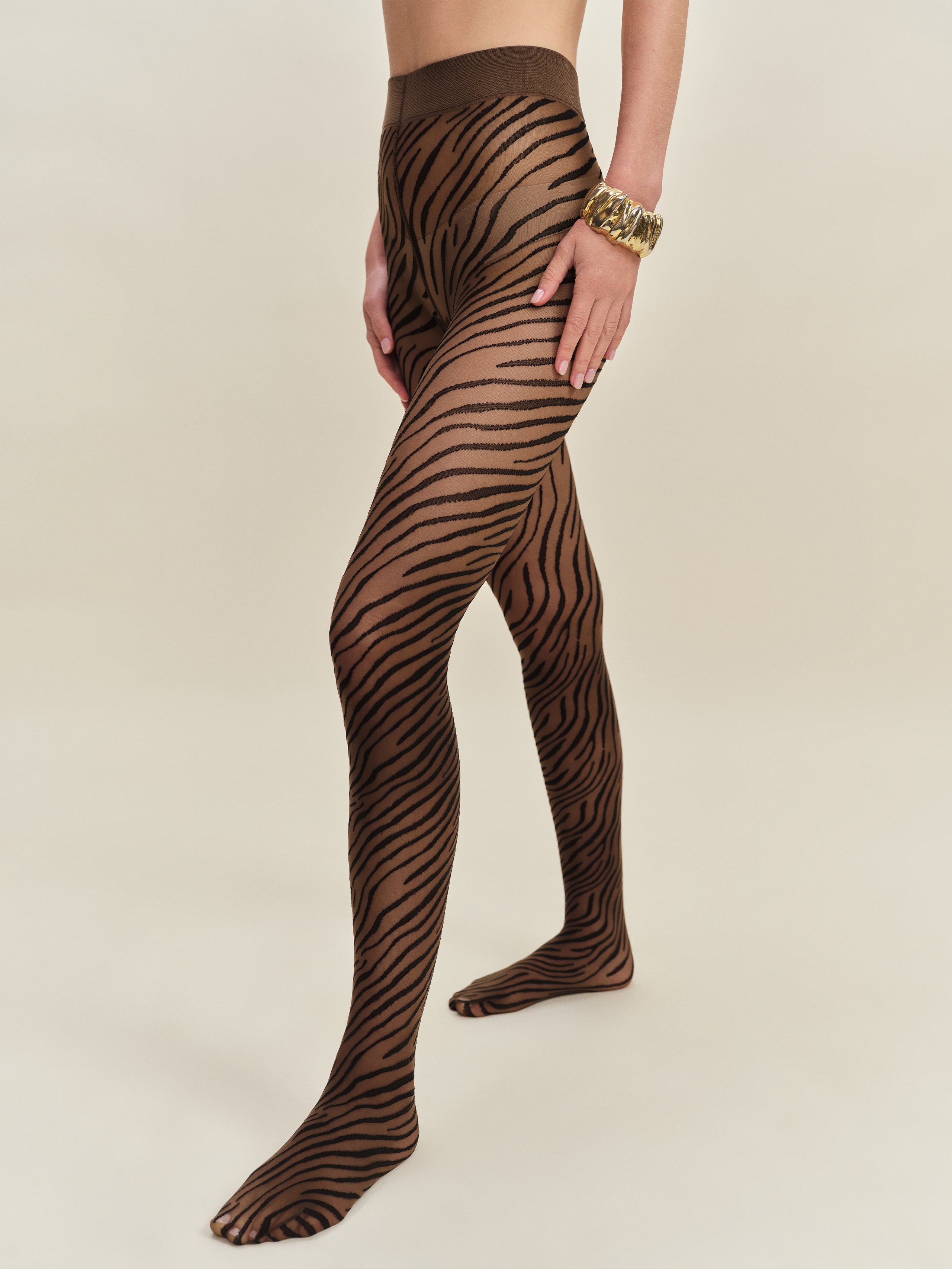 Wear me. Shop the Swedish Stockings Zadie Zebra tights from Reformation, sheer tights with zebra print detailing.
