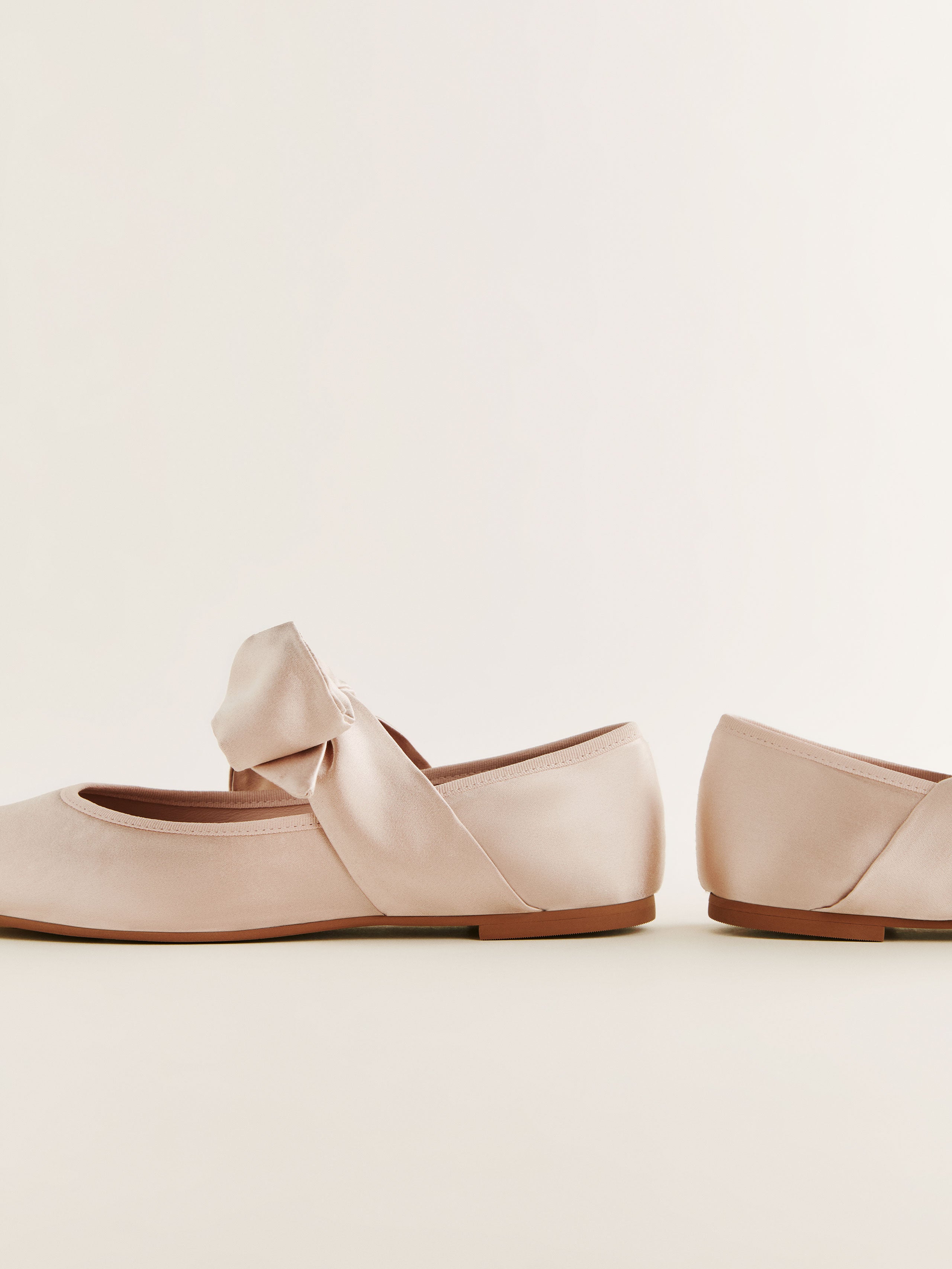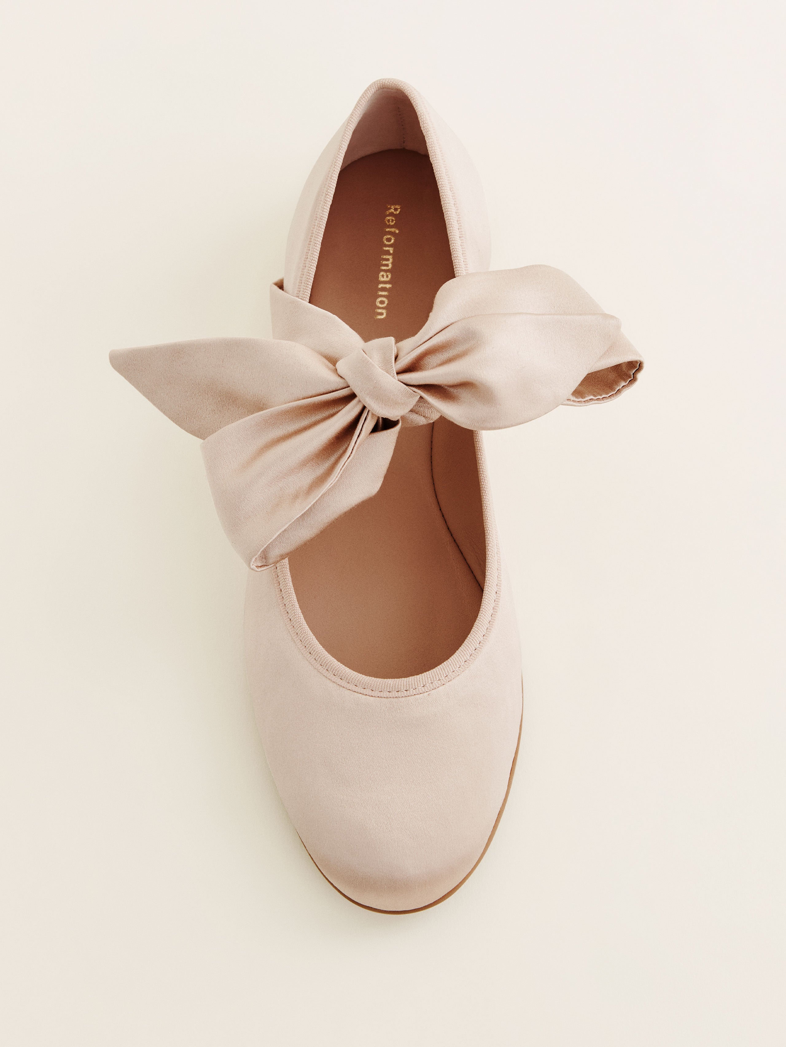 Shop the Talia Ballet Flat from Reformation, a ballet flat with a round toe and an adjustable bow.