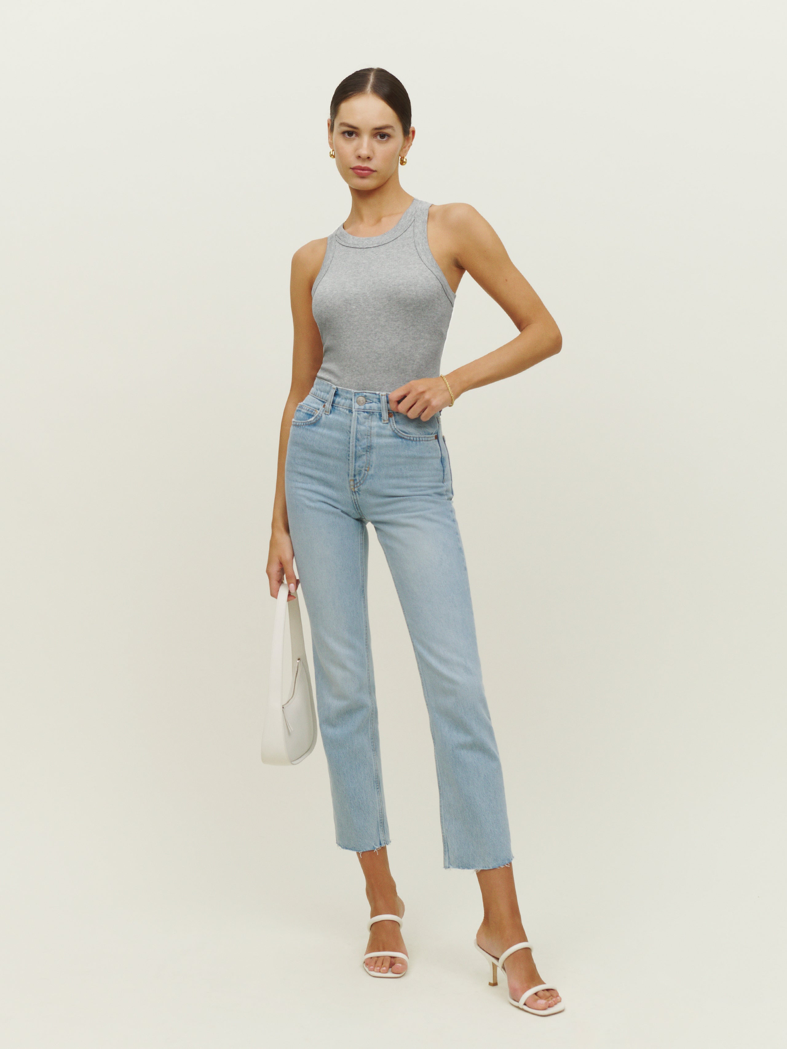 Layer up. Shop the Tasha Tank from Reformation, a slim fitted tank with a high neckline. Made...