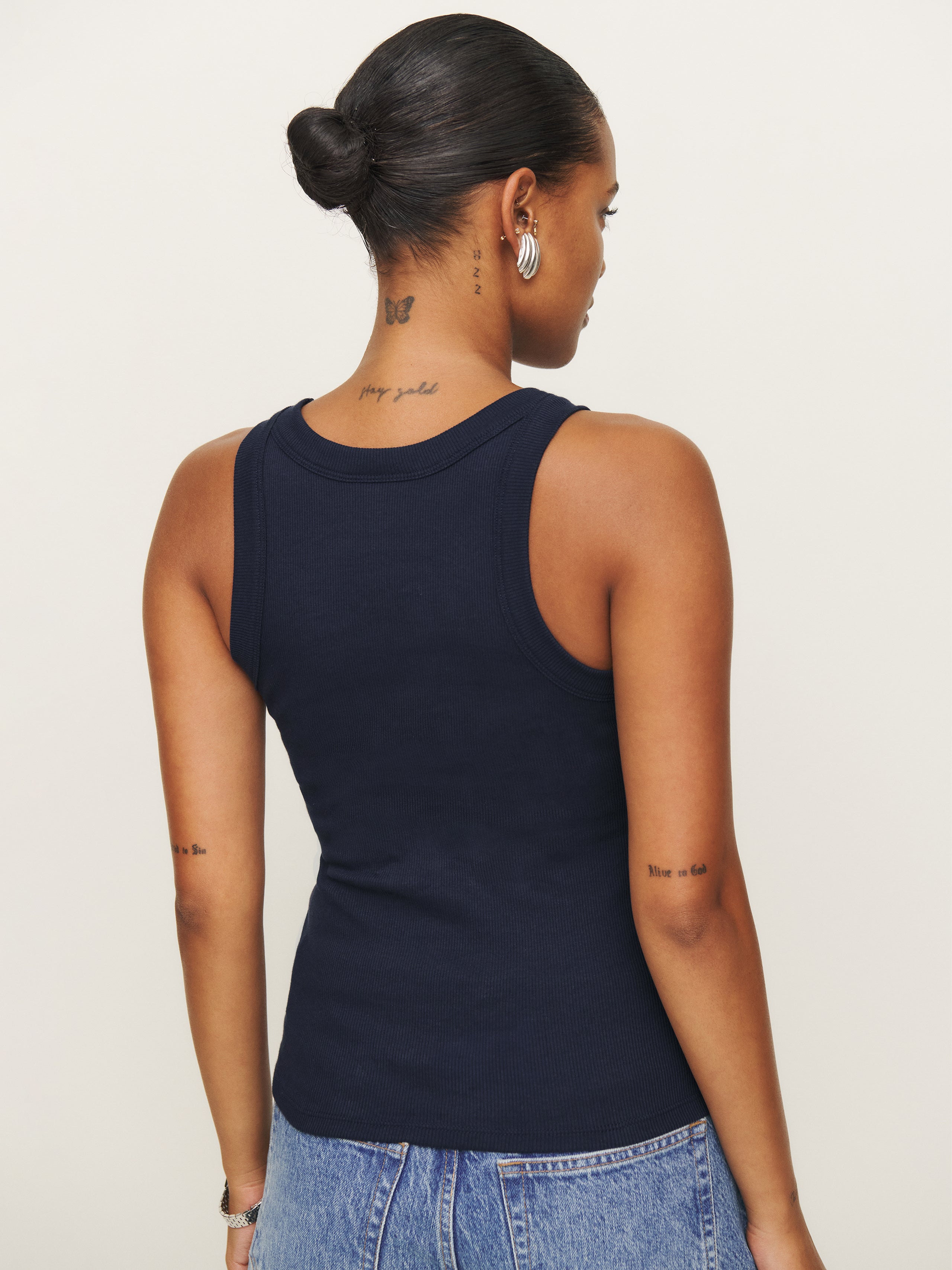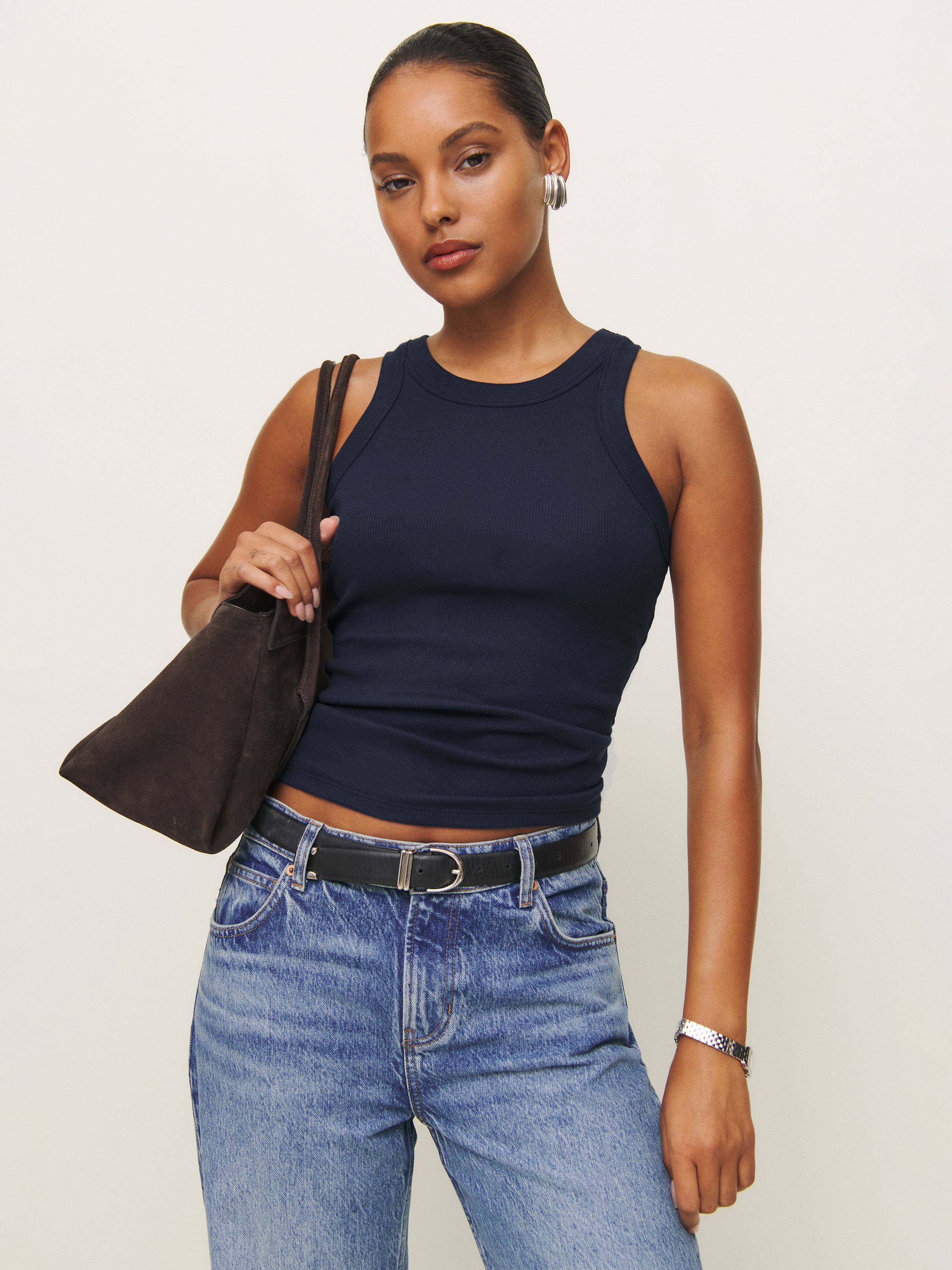 Layer up. Shop the Tasha Tank from Reformation, a slim fitted tank with a high neckline. Made...