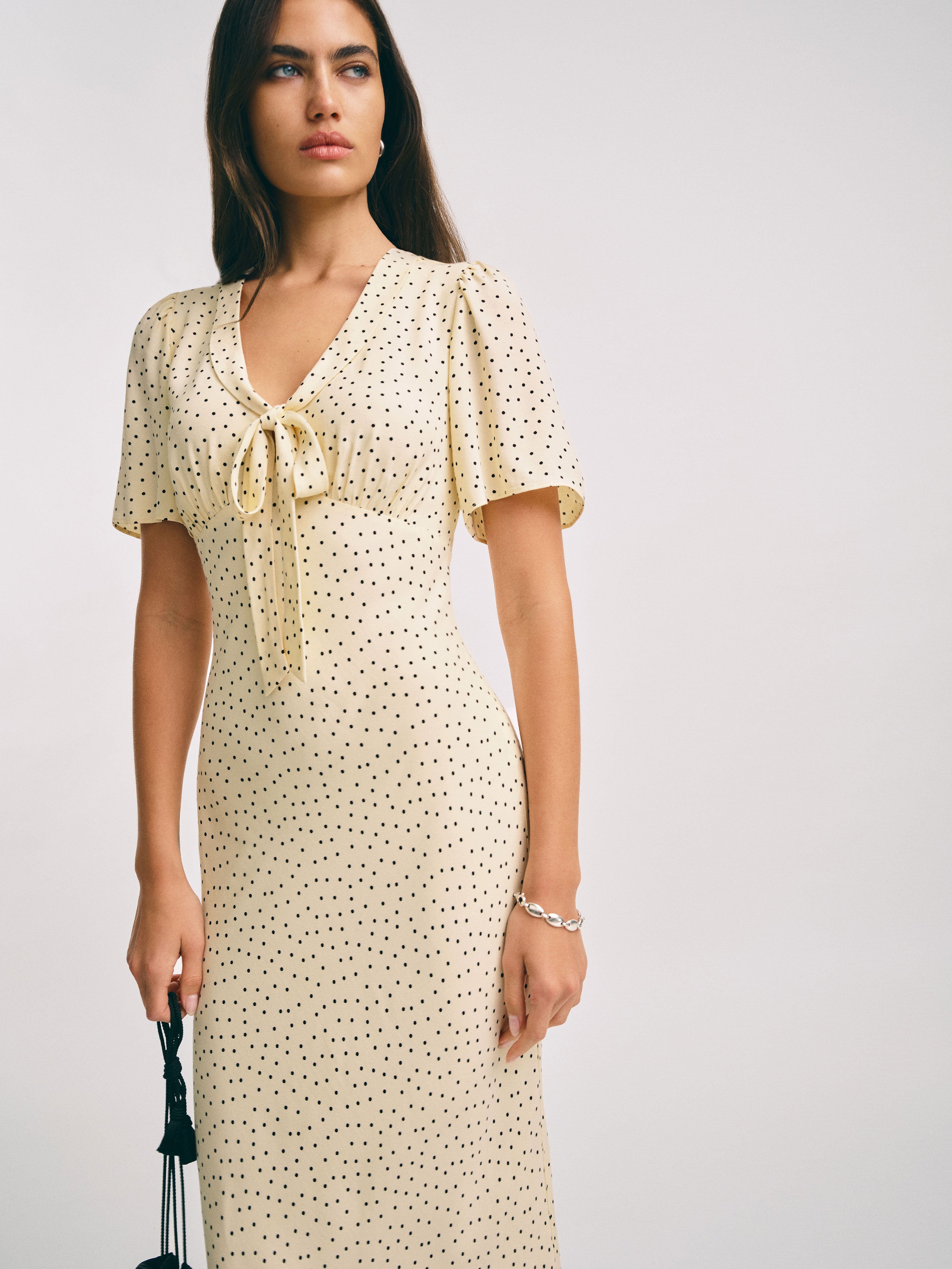 You flirt. Shop the Tyra Dress from Reformation, a midi slip-style dress with short sleeves, a V-neckline,...