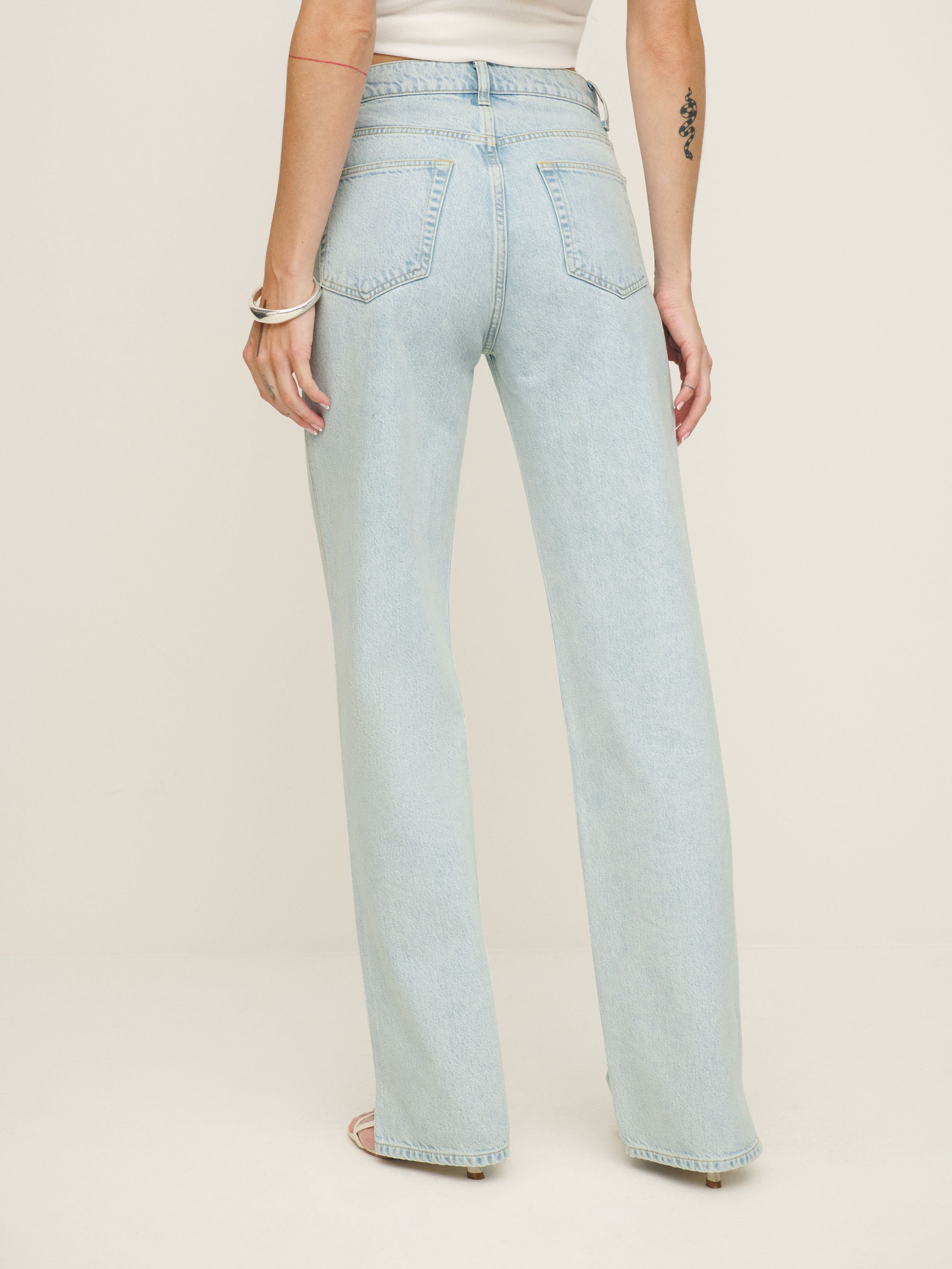 Fresh denim. Shop the Val 90s Mid Rise Straight Jeans from Reformation, a classic fit you can...