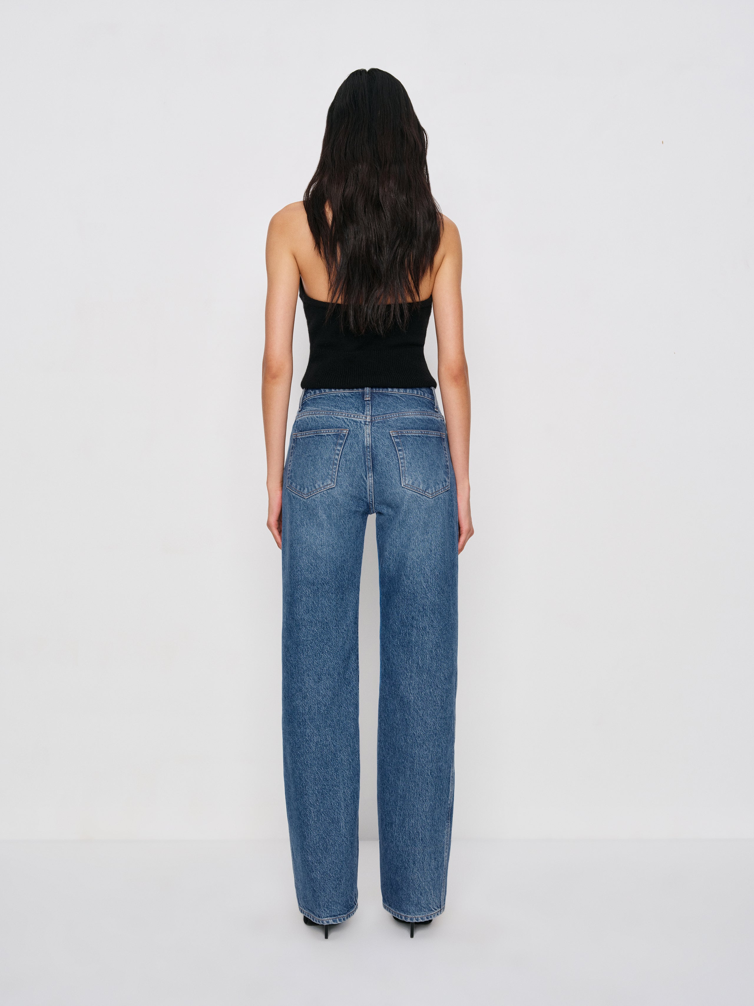 Fresh denim. Shop the Val 90s Mid Rise Straight Long Jeans from Reformation, a relaxed fitted jean with a mid rise and straight leg.
