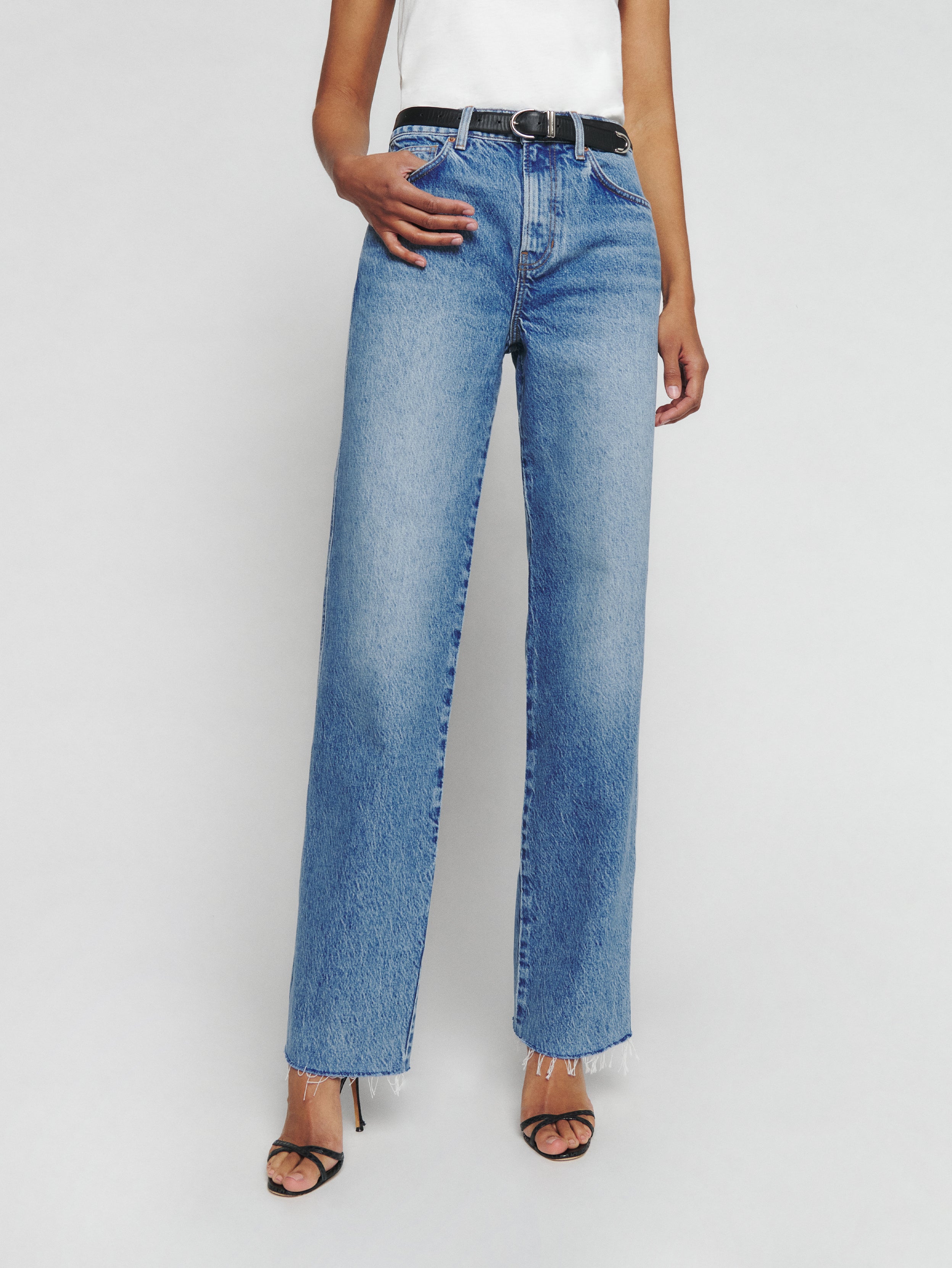 Fresh denim. Shop the Val 90s Mid Rise Straight Short Jeans from Reformation, a relaxed fitted jean with a mid rise and straight leg.