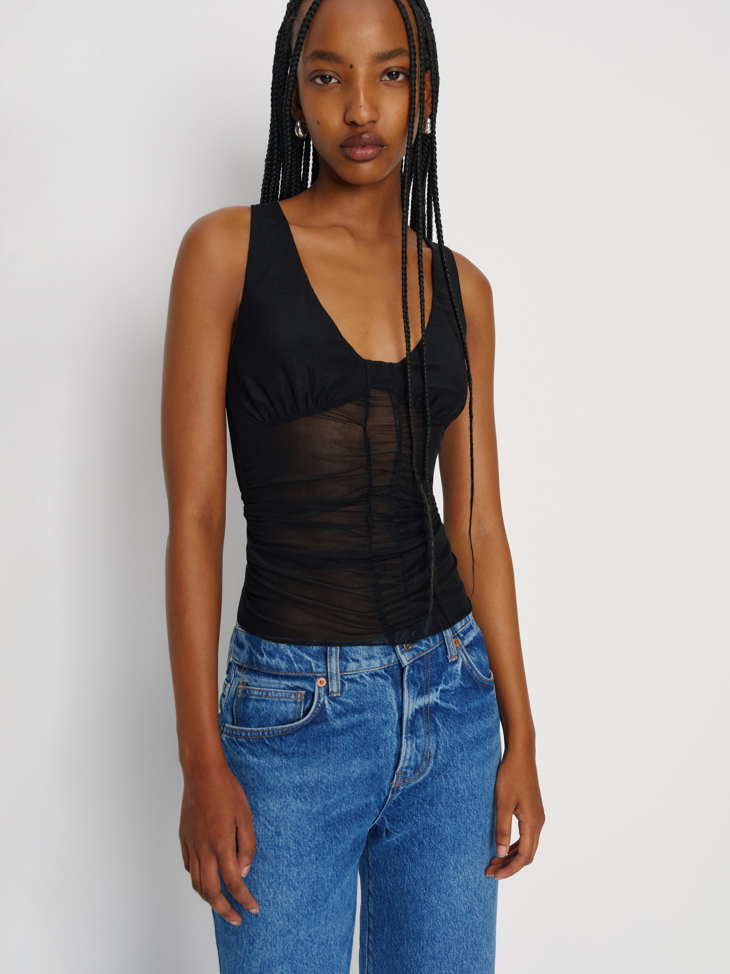 Go out with us. Shop the Valentine Knit Top from Reformation, a top with a V-neckline and ruching details. You can't go wrong, at least with this top.