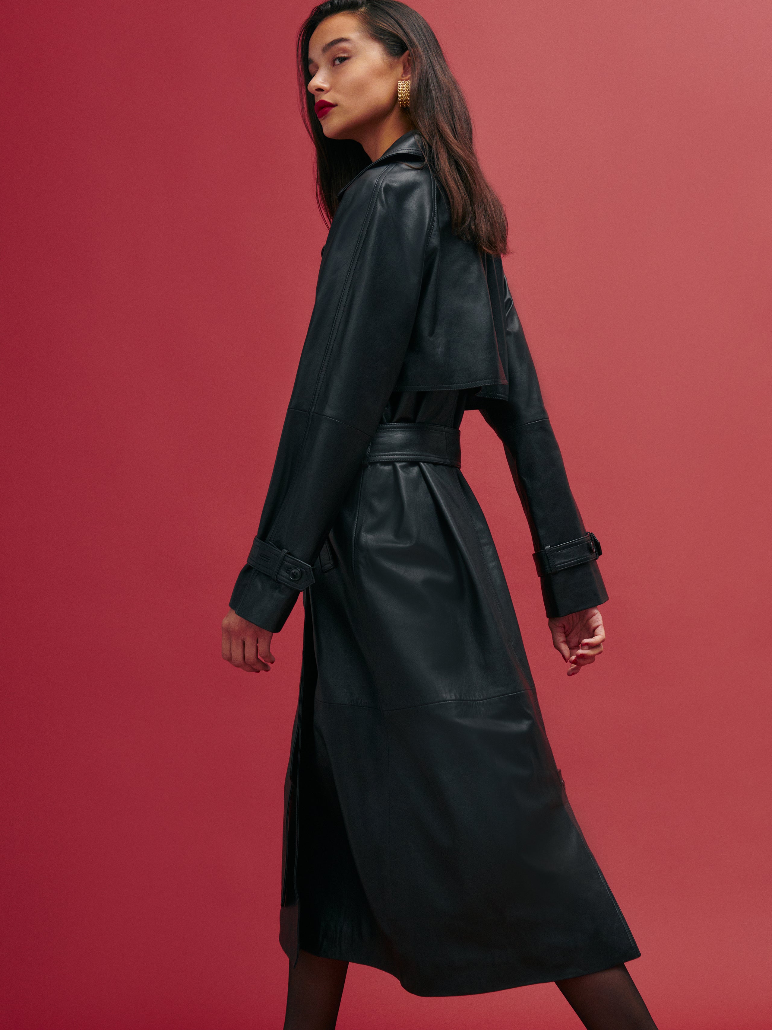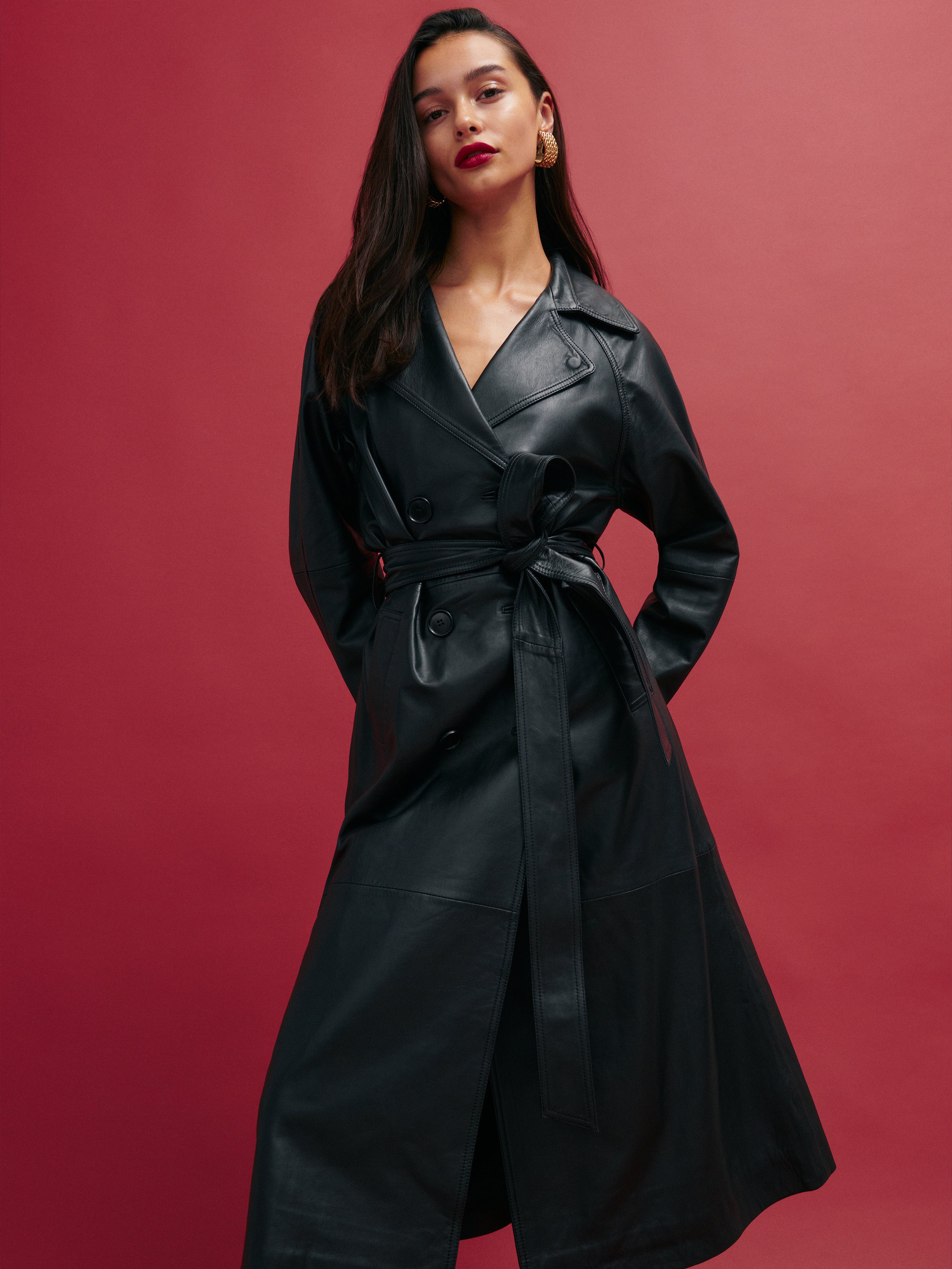Brr. Shop the Veda Ashland Leather Trench from Reformation, a relaxed fit, double-breasted, trench coat. It has...
