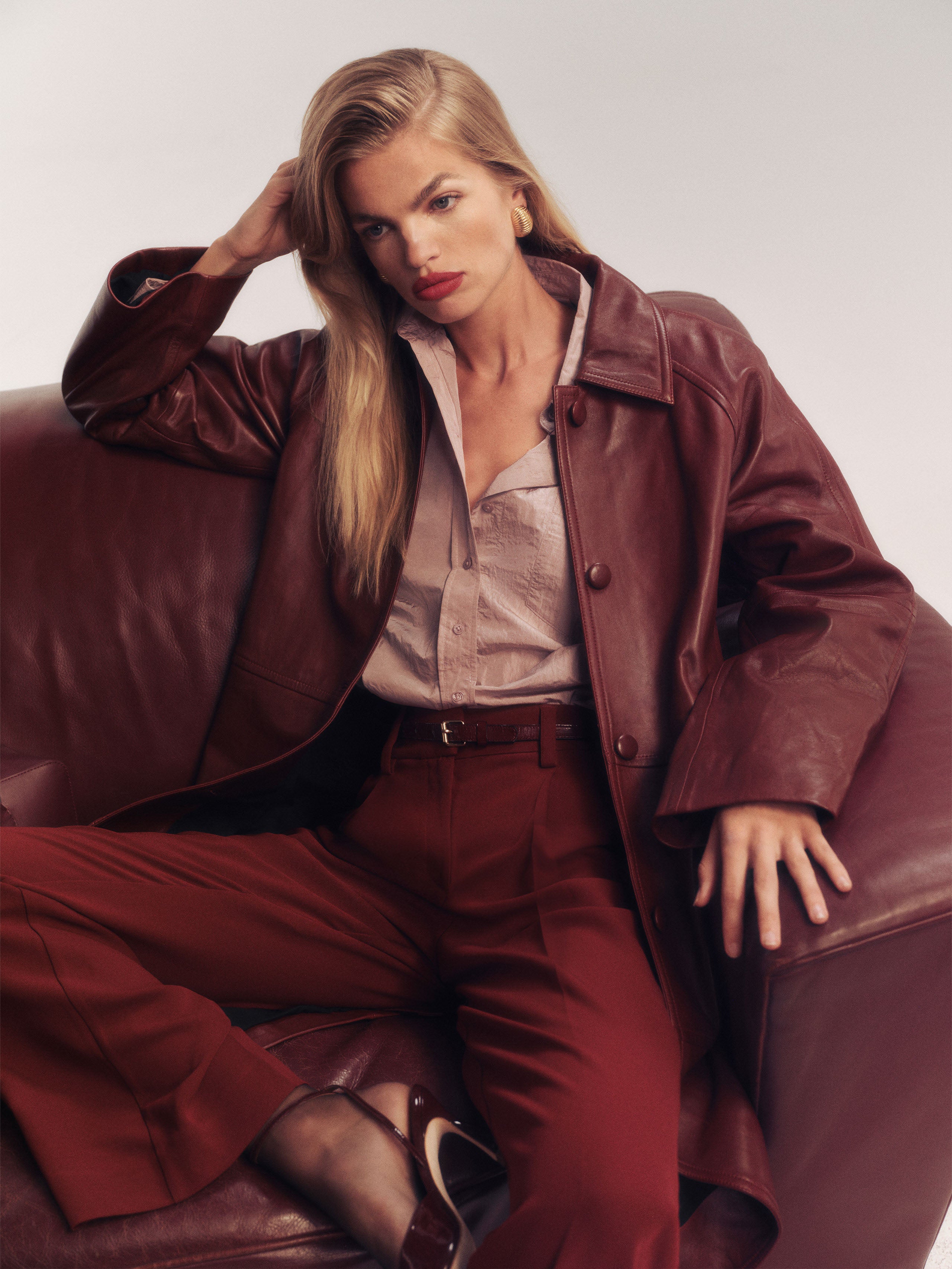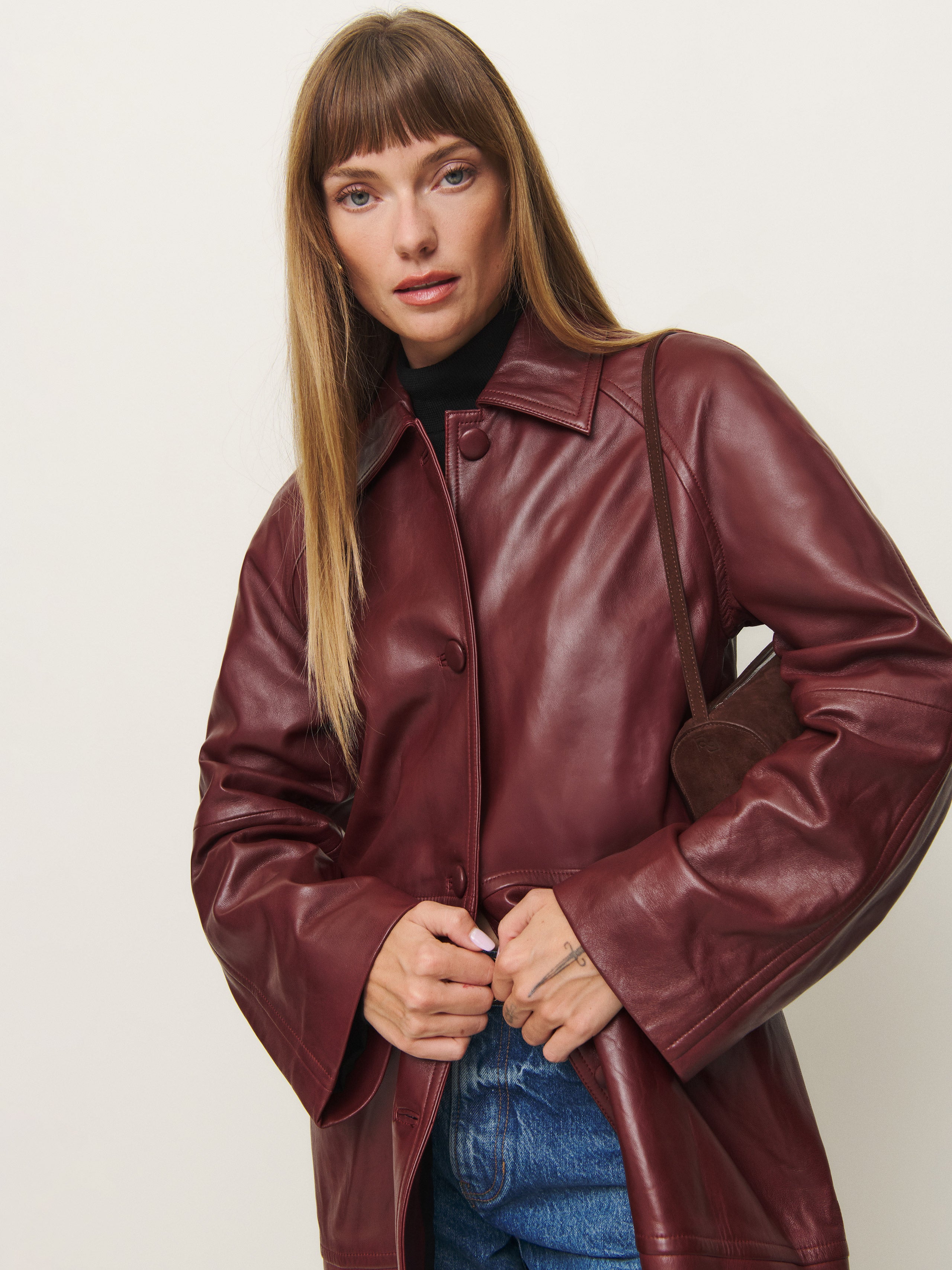 Stay warm out there. Shop the Veda Beck Leather Trench, a sustainable leather jacket from Reformation.
