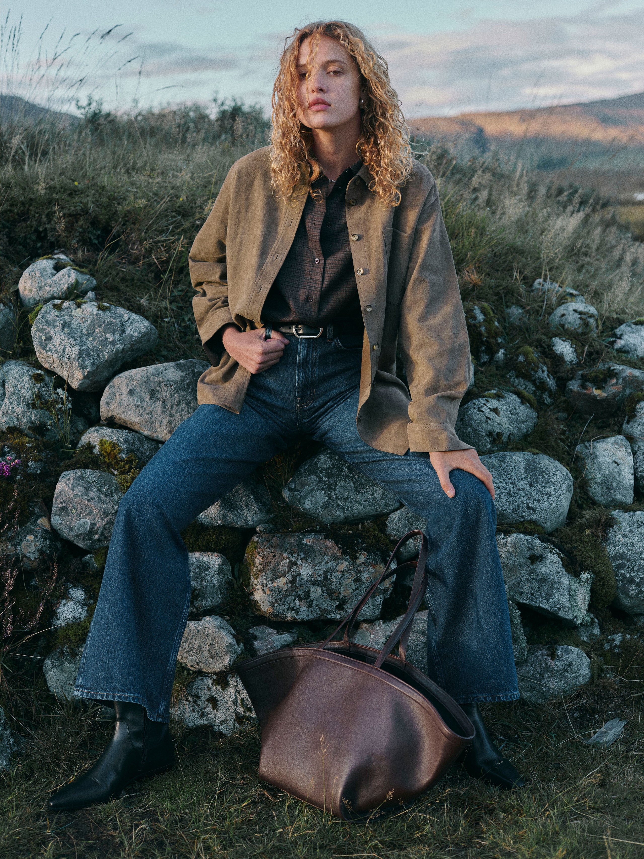 Get a hobby. Shop the Veda Eli Oversized Suede Shirt Jacket from Reformation, a jacket with a button front and patch pockets. Will go anywhere with you.