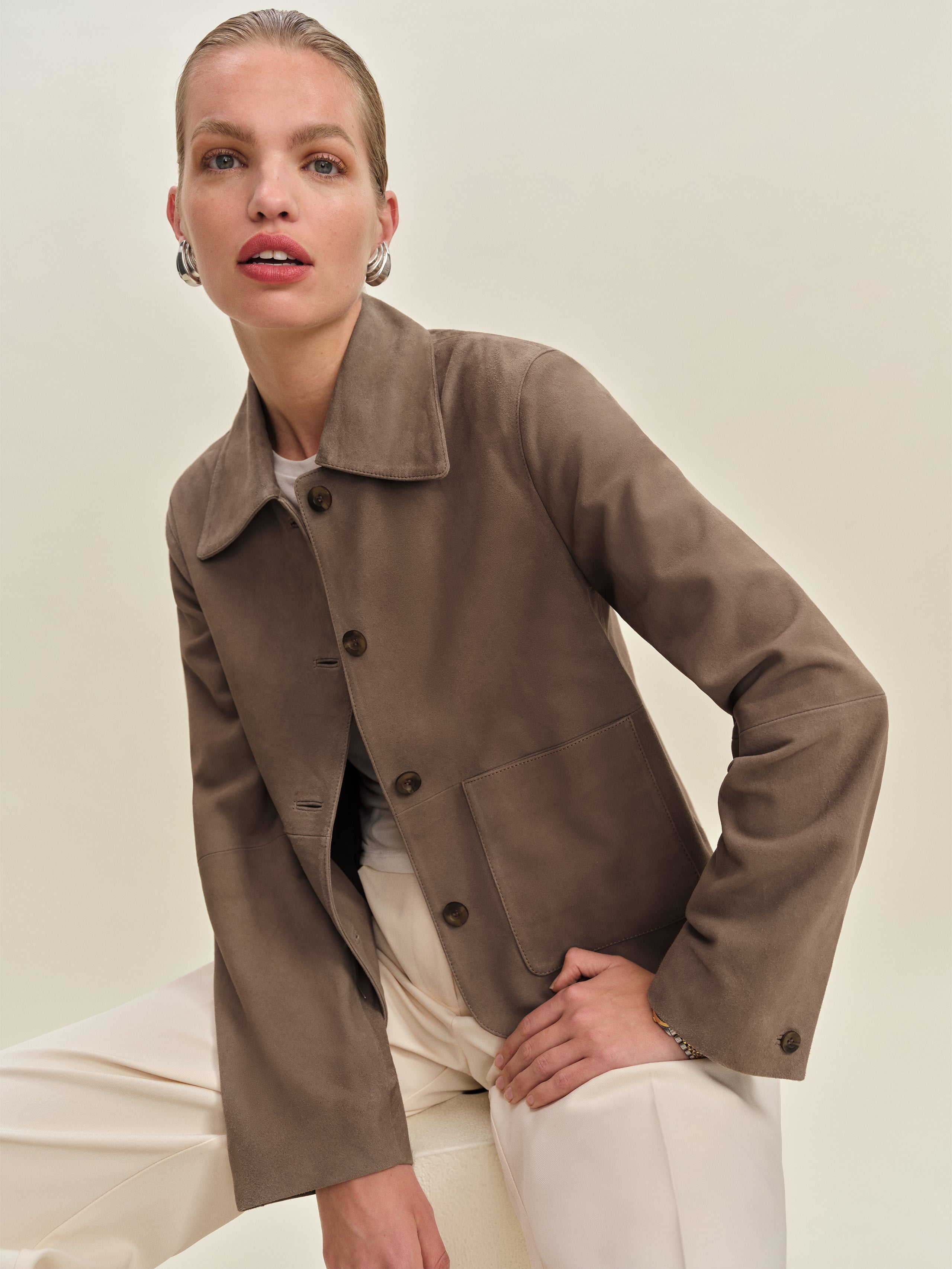 Stay warm out there. Shop the Veda Nell Suede Jacket, a sustainable jacket from Reformation.