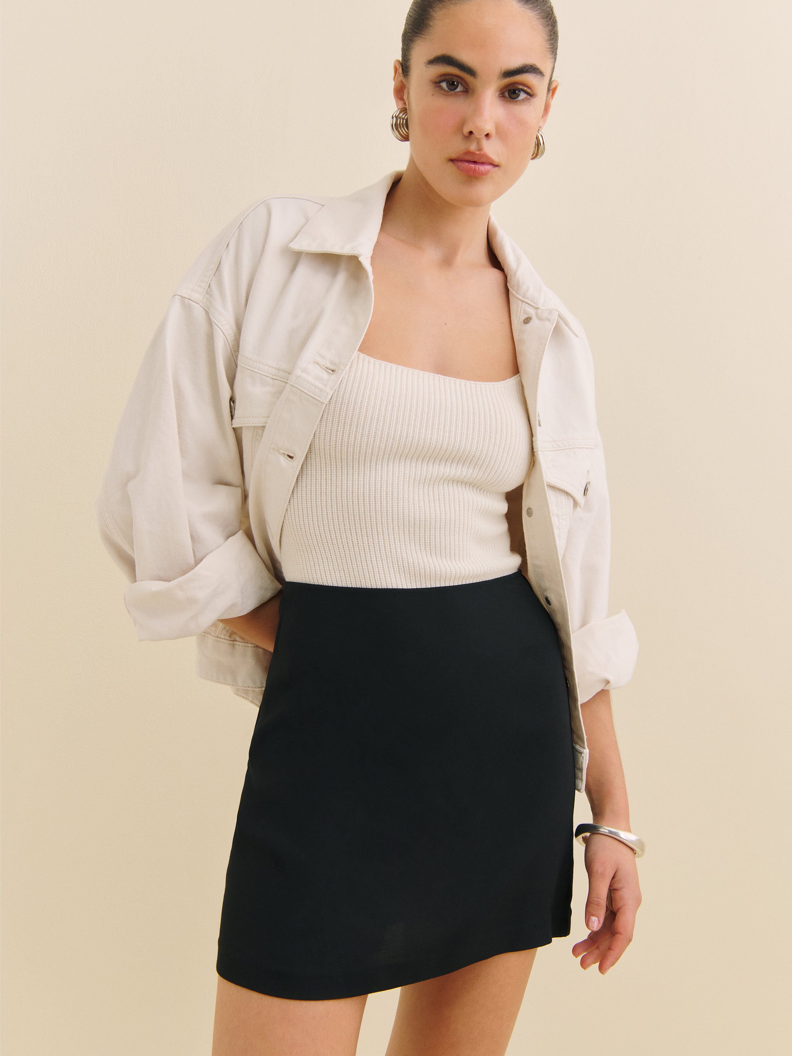 Show some leg. Shop the Veranda Skirt from Reformation, a high waisted, A-line, mini skirt.