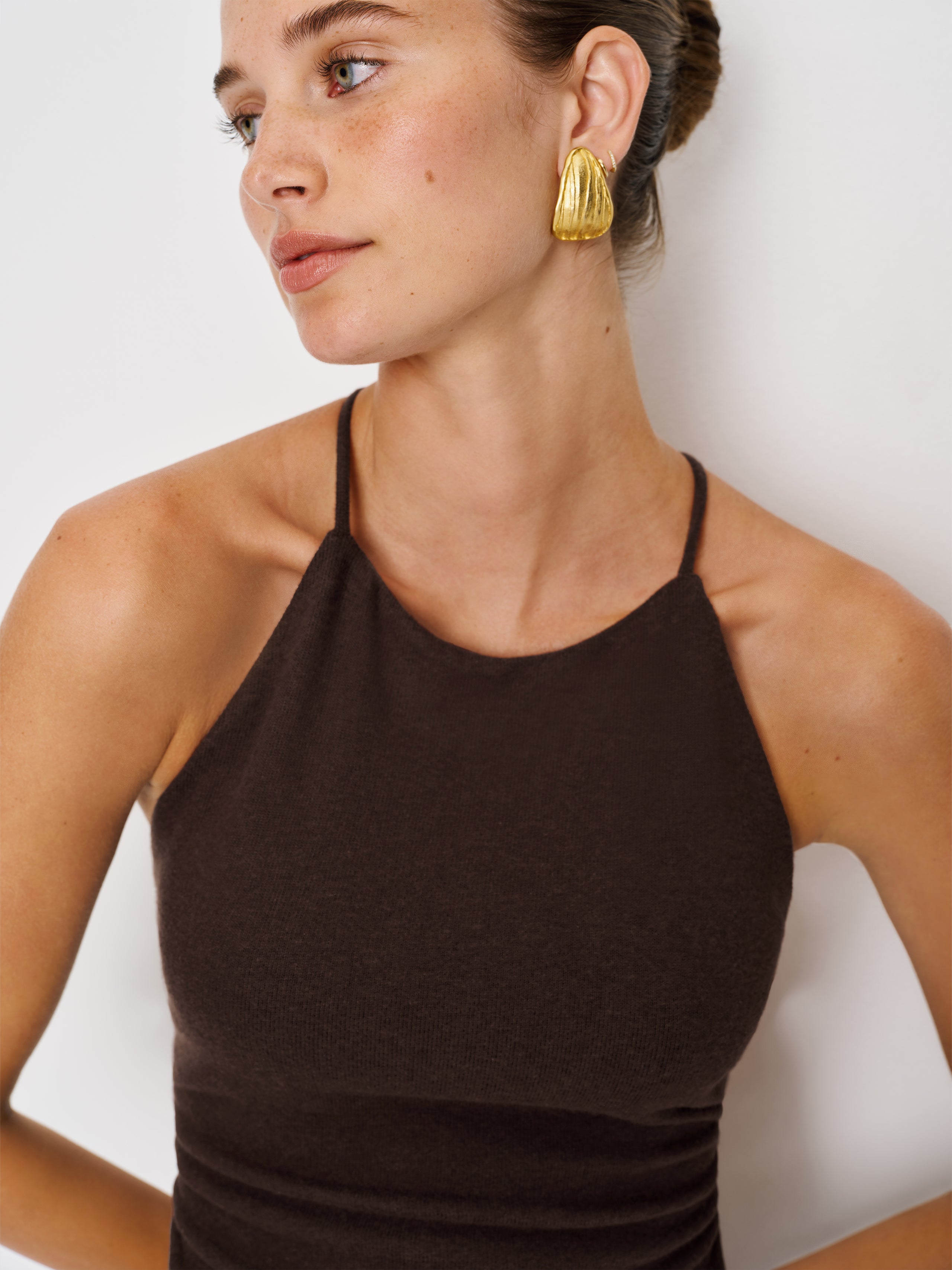 Not as complicated as it looks. Shop the Vevina Knit Top from Reformation, a sleeveless high-neck top...