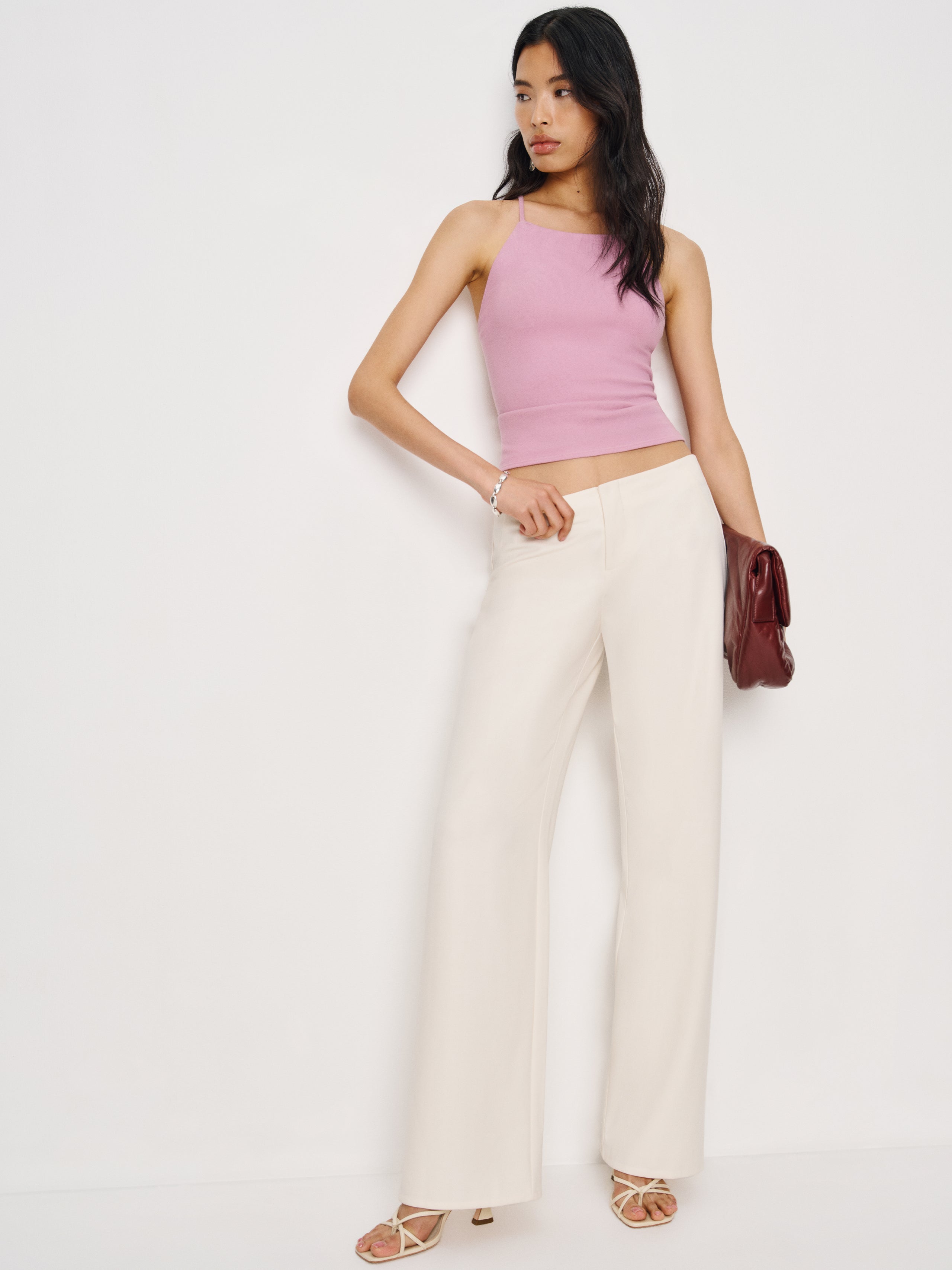 Not as complicated as it looks. Shop the Vevina Knit Top from Reformation, a sleeveless high-neck top with adjustable straps on the back.