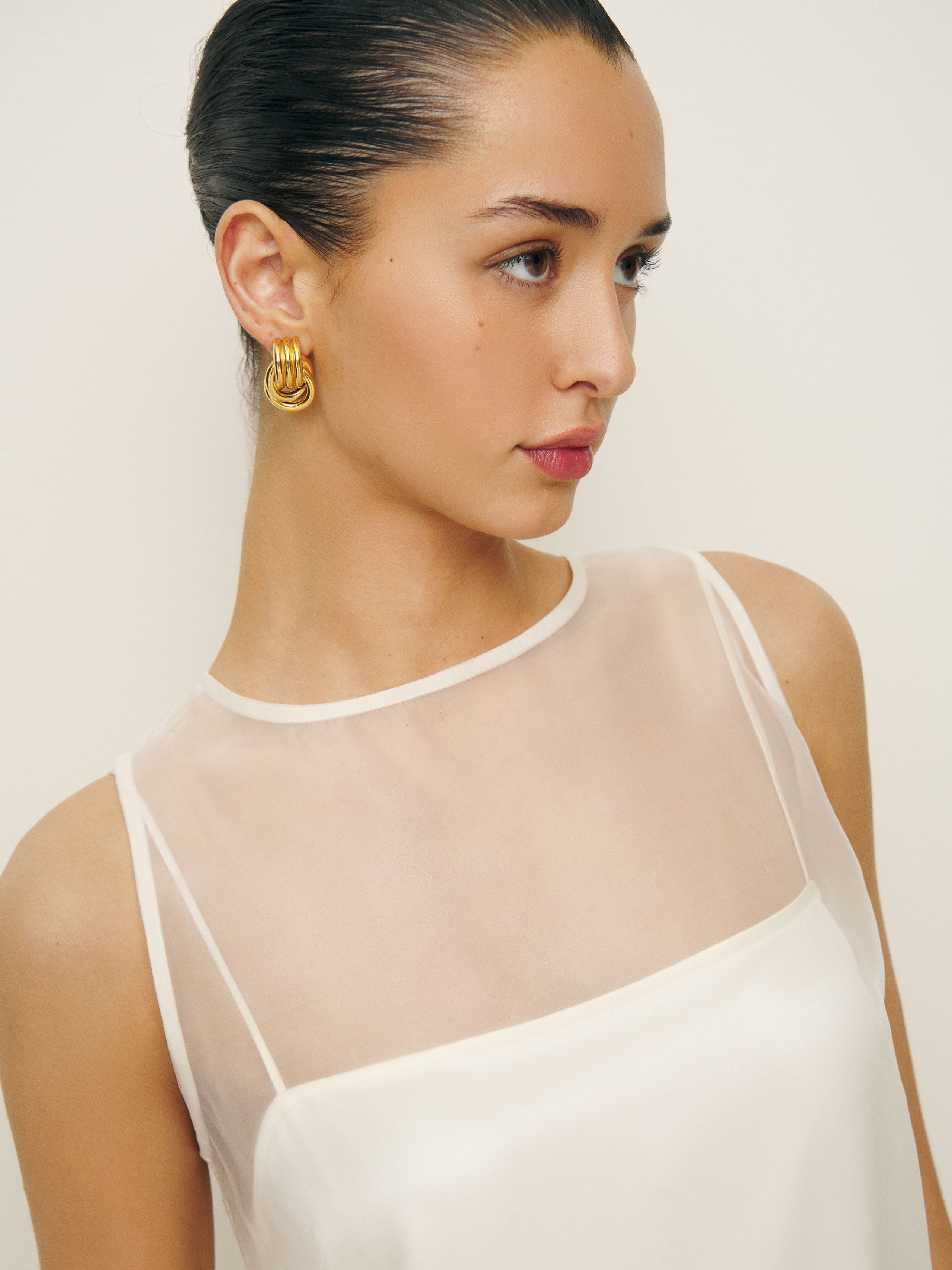 You're so fancy. Shop the Vina Dress from Reformation, a sleeveless mini length dress with a high neckline and sheer detailing.