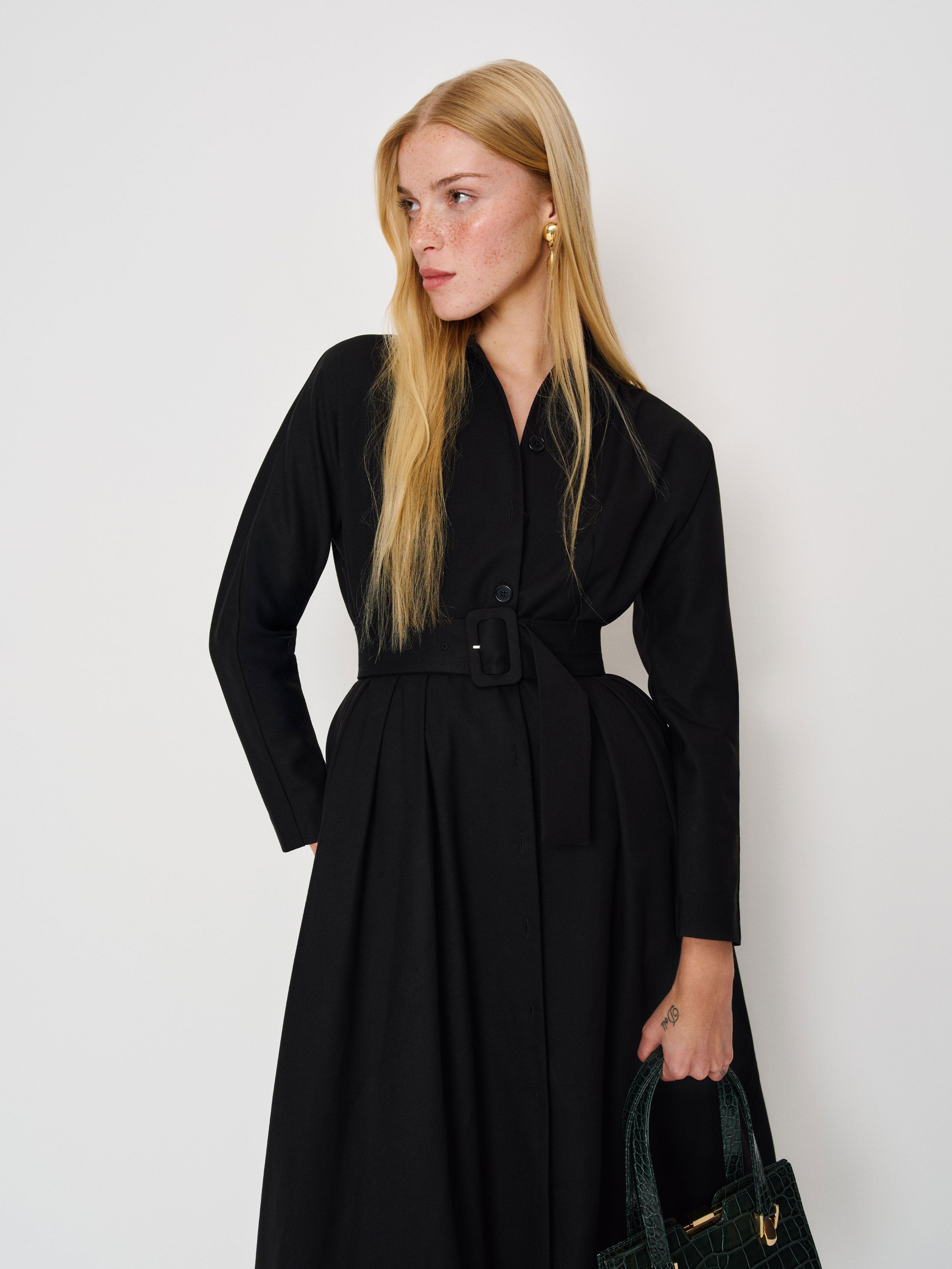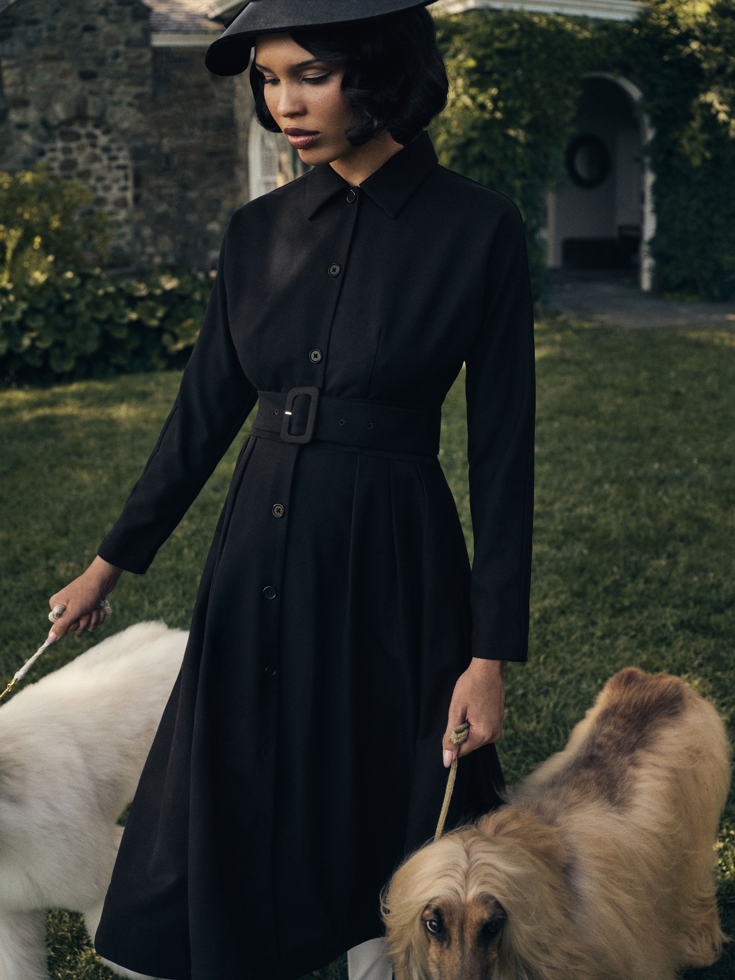 Not complicated. Shop the Vow Dress from Reformation, a long-sleeved midi dress with a collar neckline, button front, and belt detail.