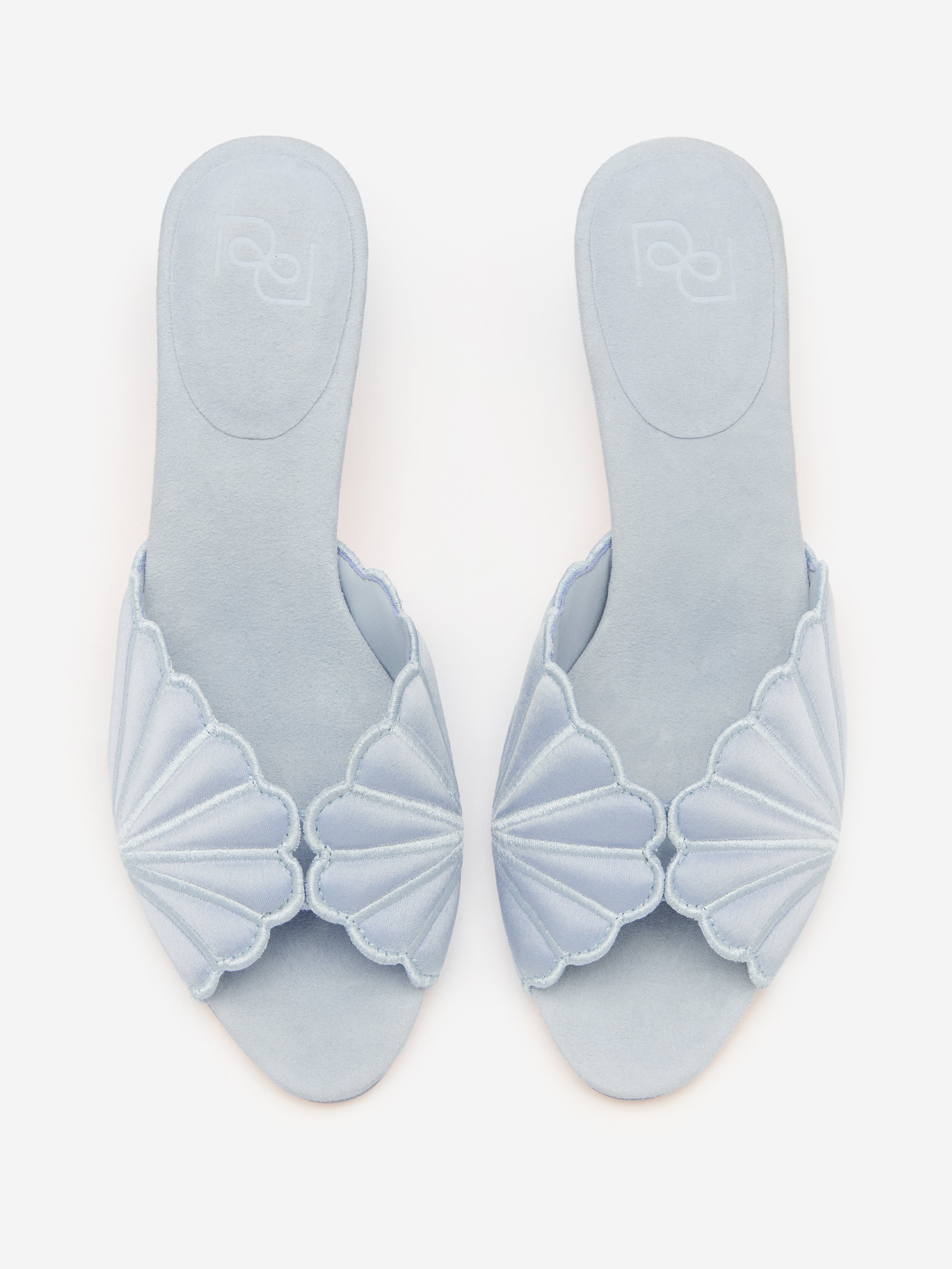 Wear me. Shop the Waldena Block Heeled Mule from Reformation, a mule sandal with a block heel, peep toe, and shell design at the upper.