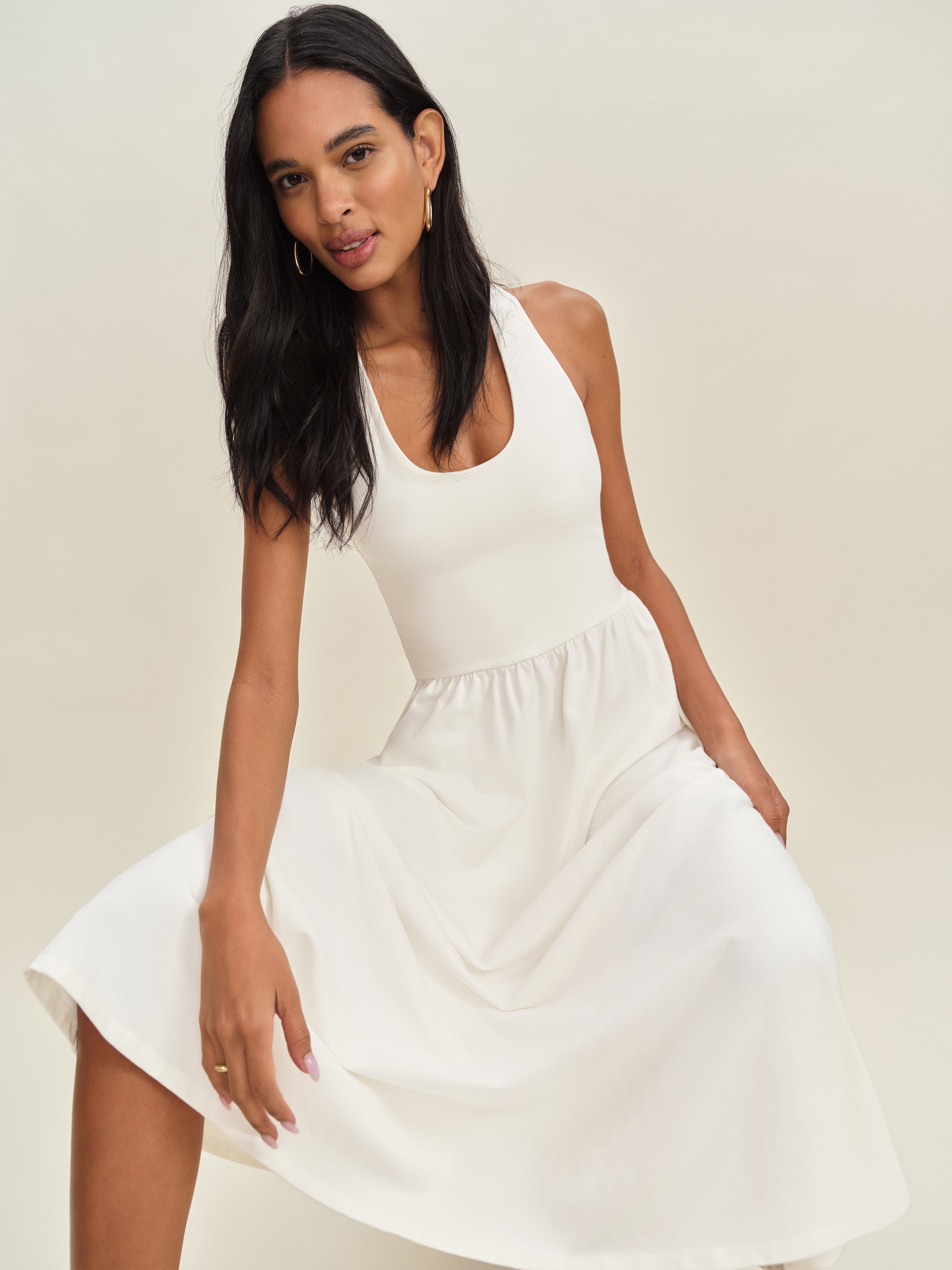 Wear the dress. Shop the Walker Knit Dress from Reformation, a sleeveless midi dress with a fitted...