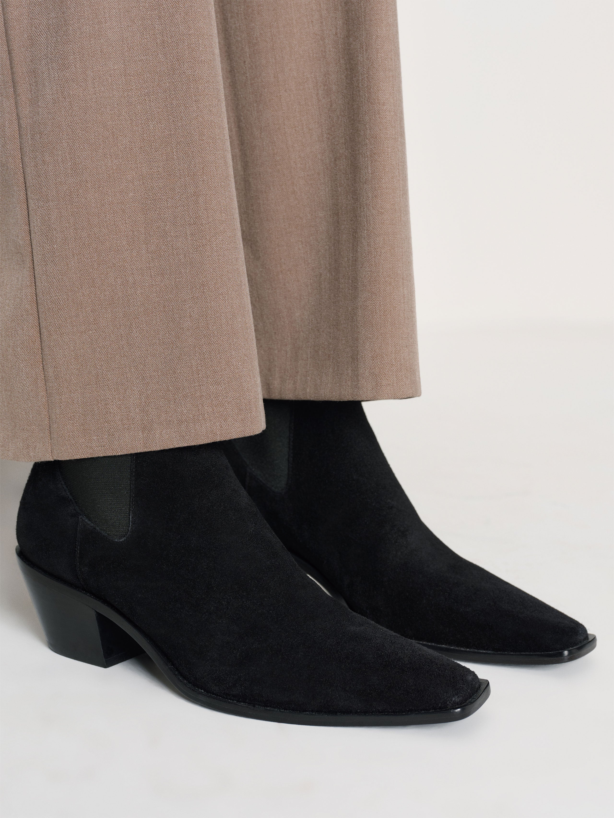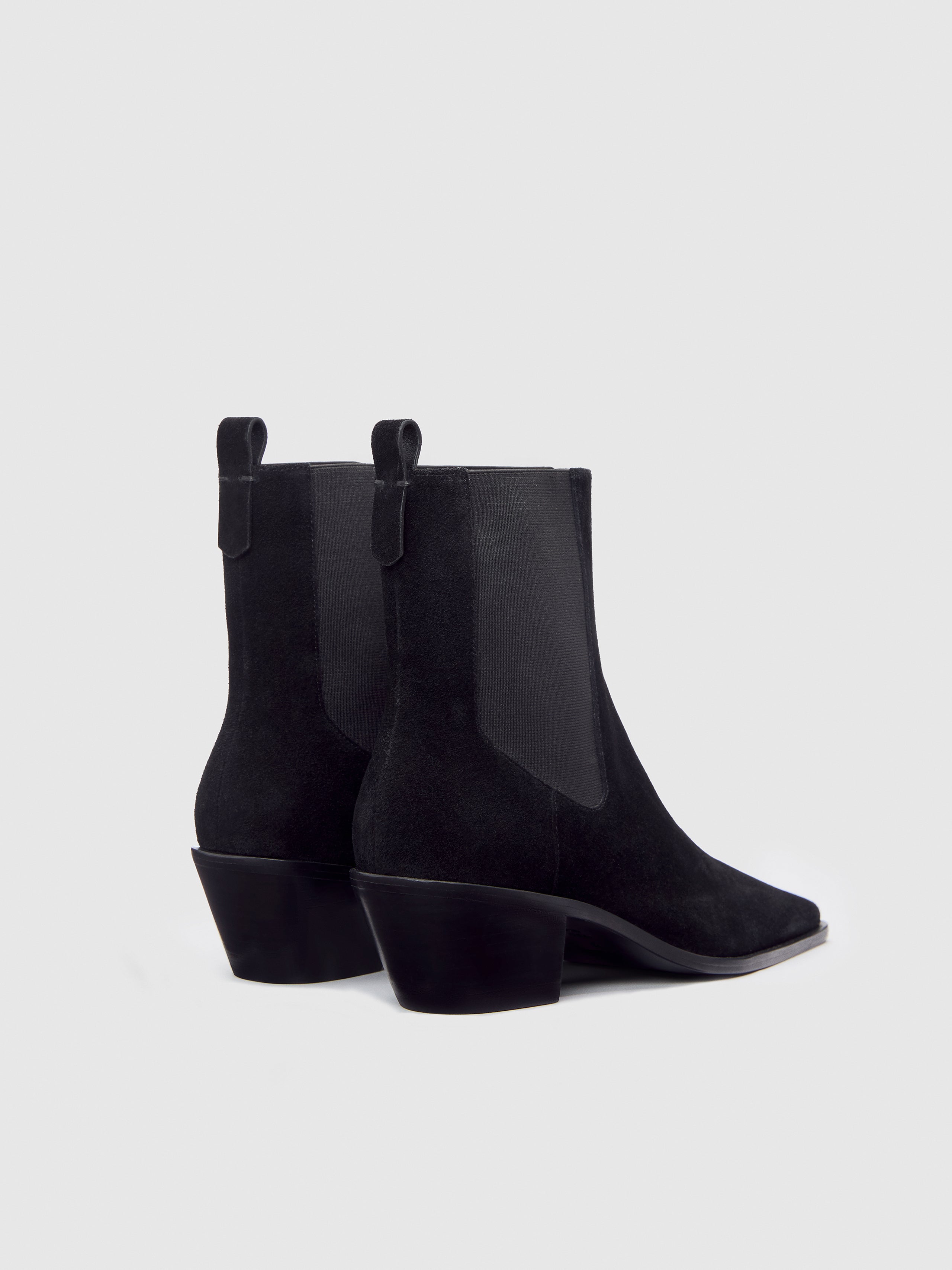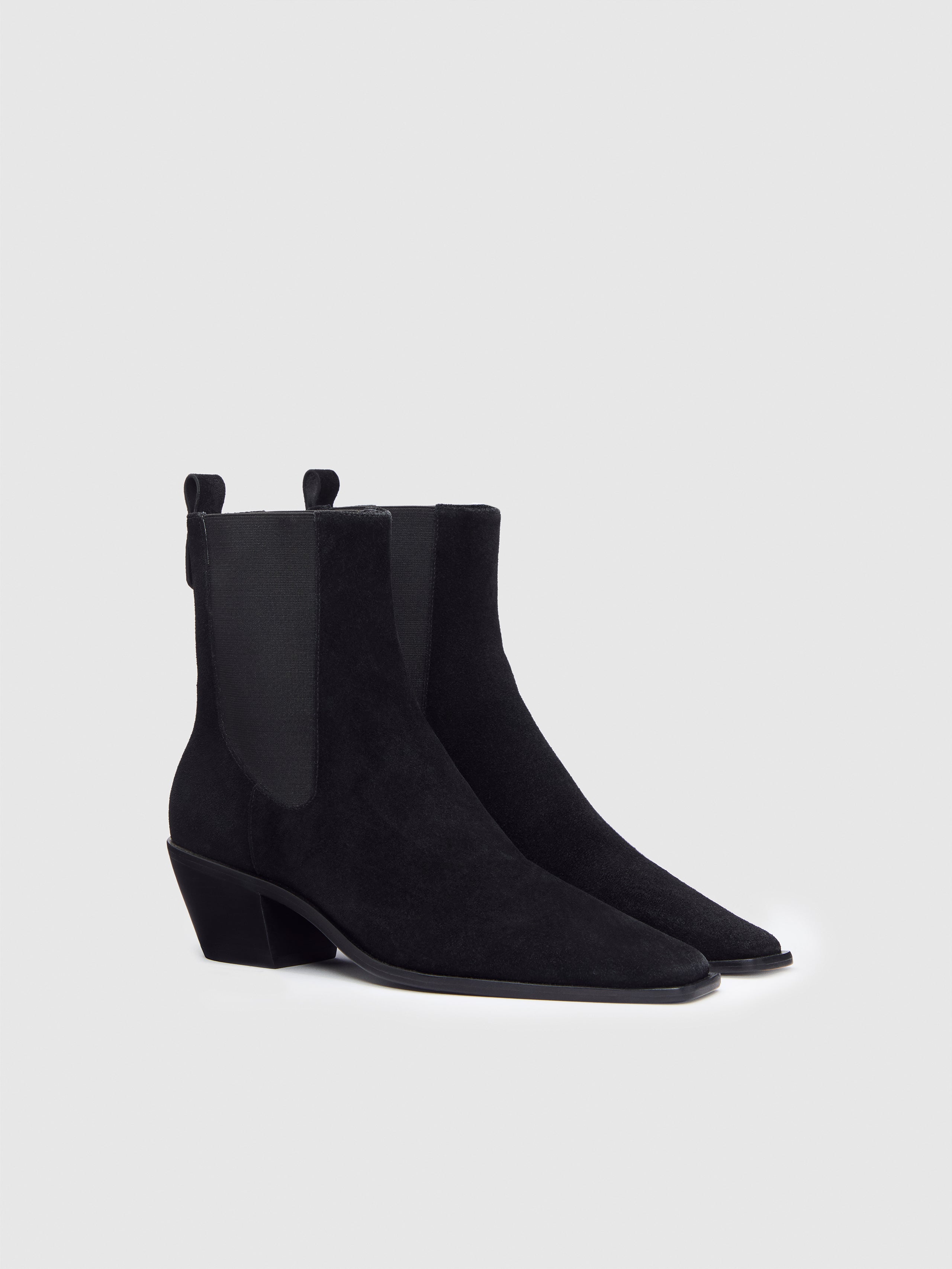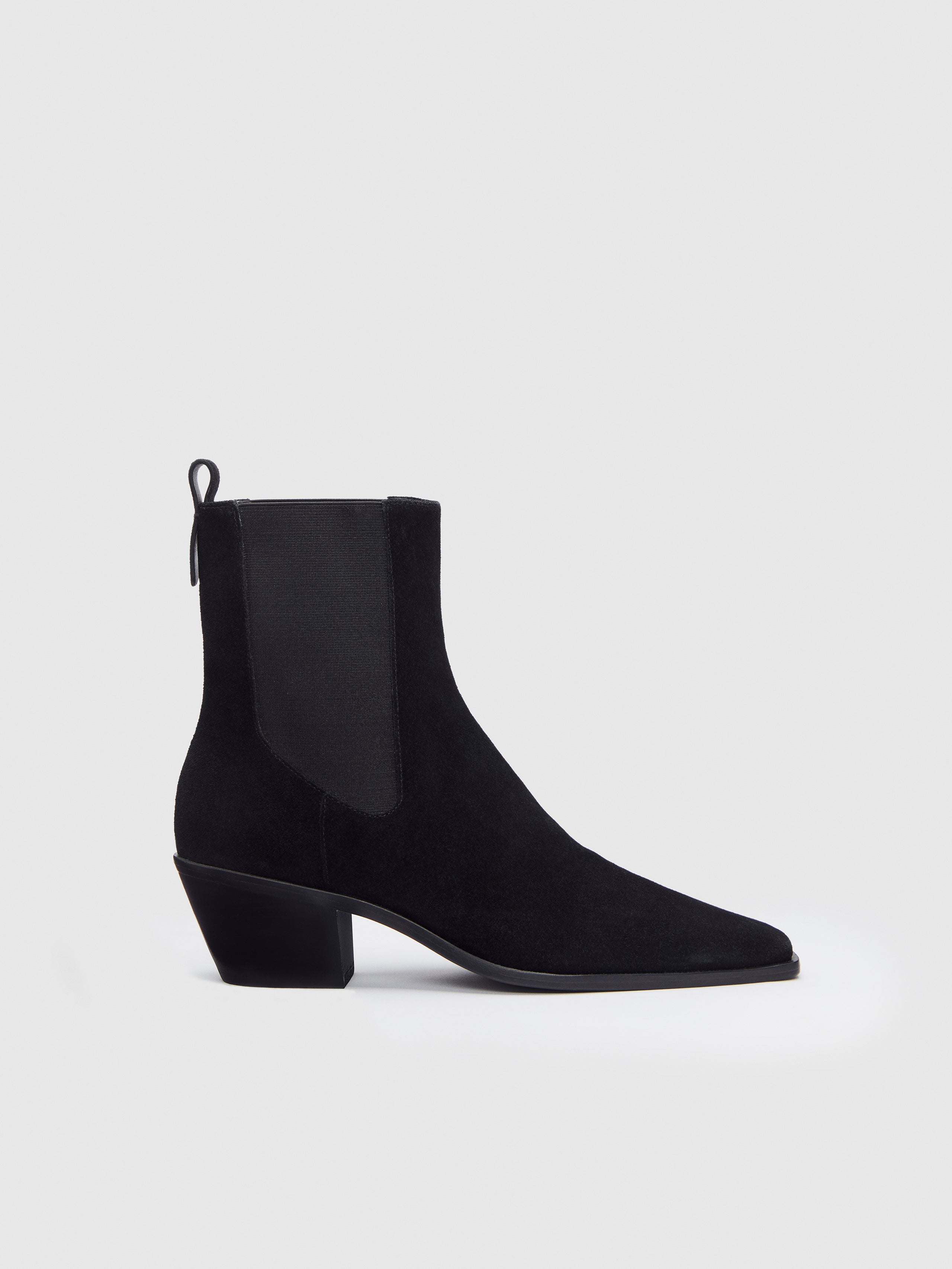 You must be new. Shop the Western Roberta Ankle Boot from Reformation, a pull on boot with a snip toe and a slanted heel.