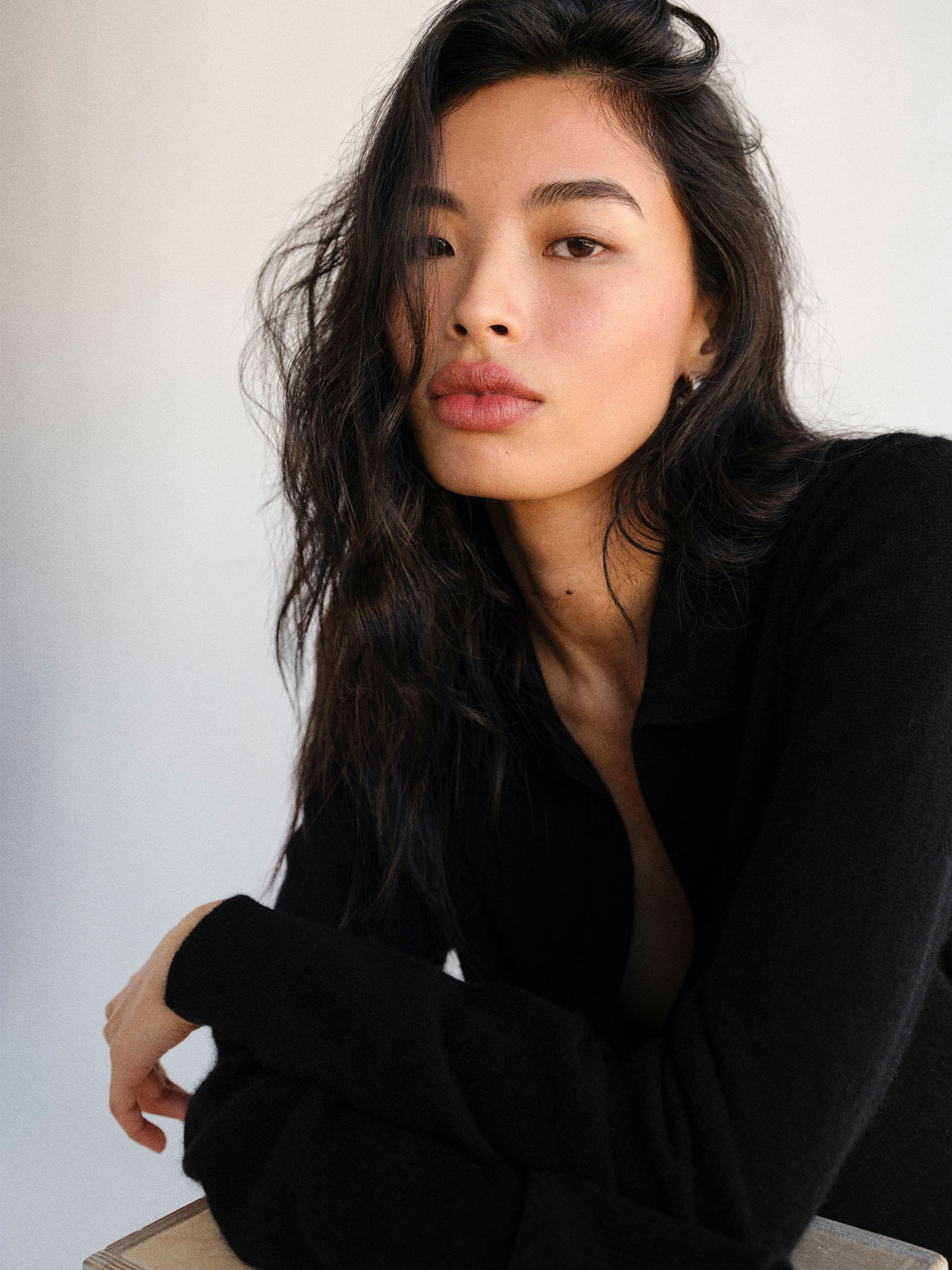 Time to add sleeves. Shop the Westley Cashmere Polo from Reformation, a long-sleeved sweater with a collar and V-neckline.