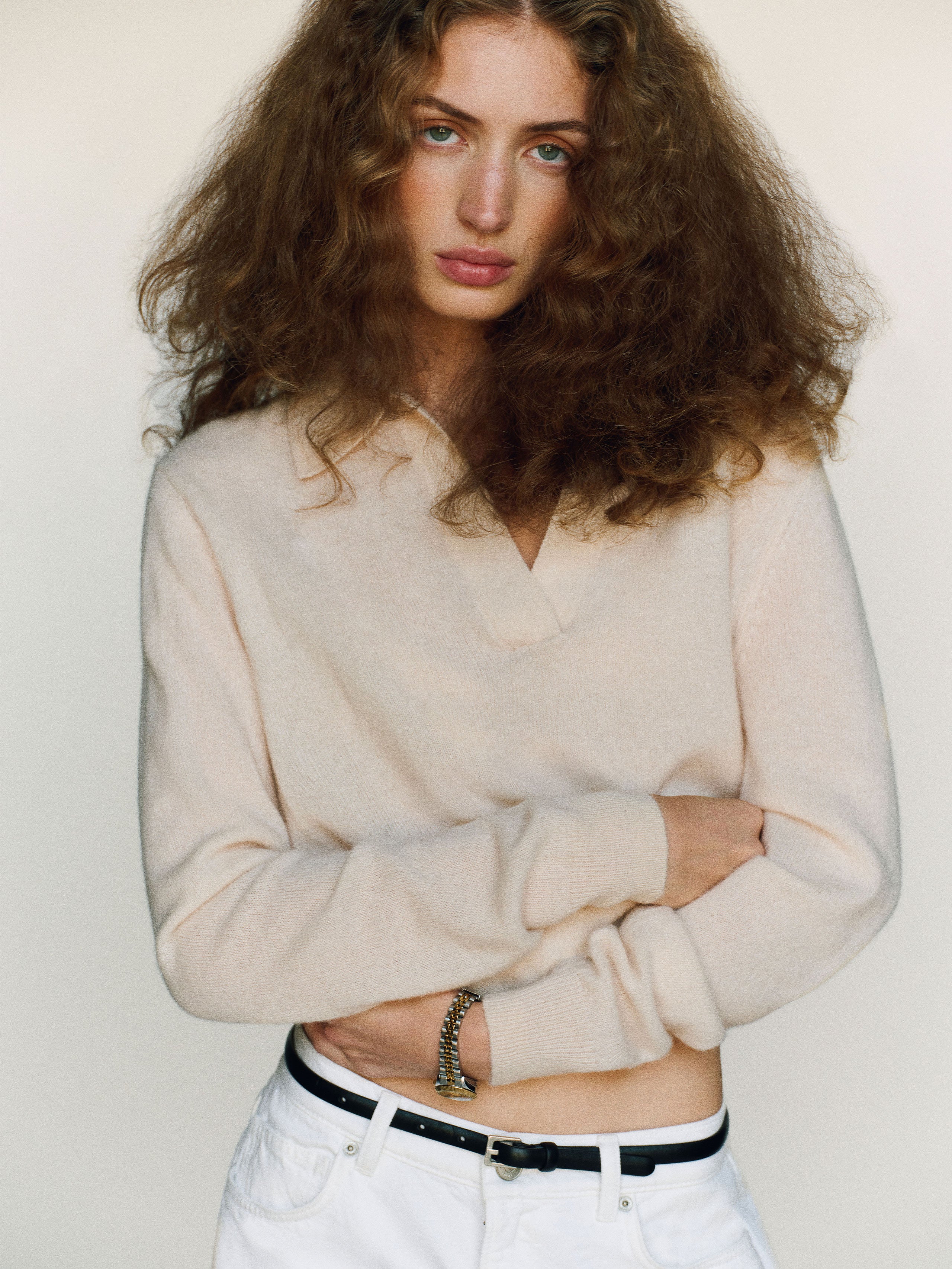 Time to add sleeves. Shop the Westley Cashmere Polo from Reformation, a long-sleeved sweater with a collar...