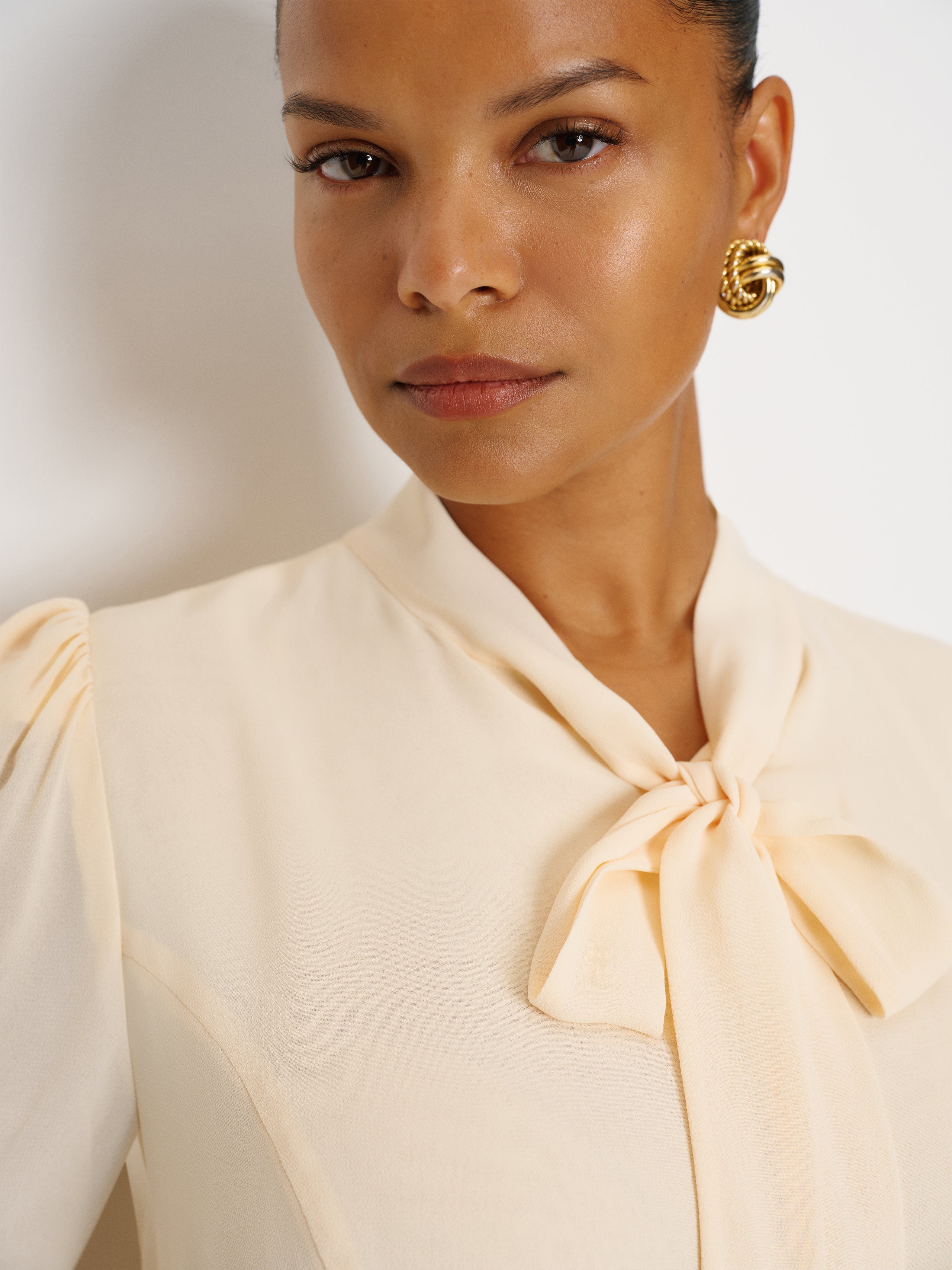 How classic. Shop the Whimsical Dress ES from Reformation, a mini dress with flutter sleeves, a bow...