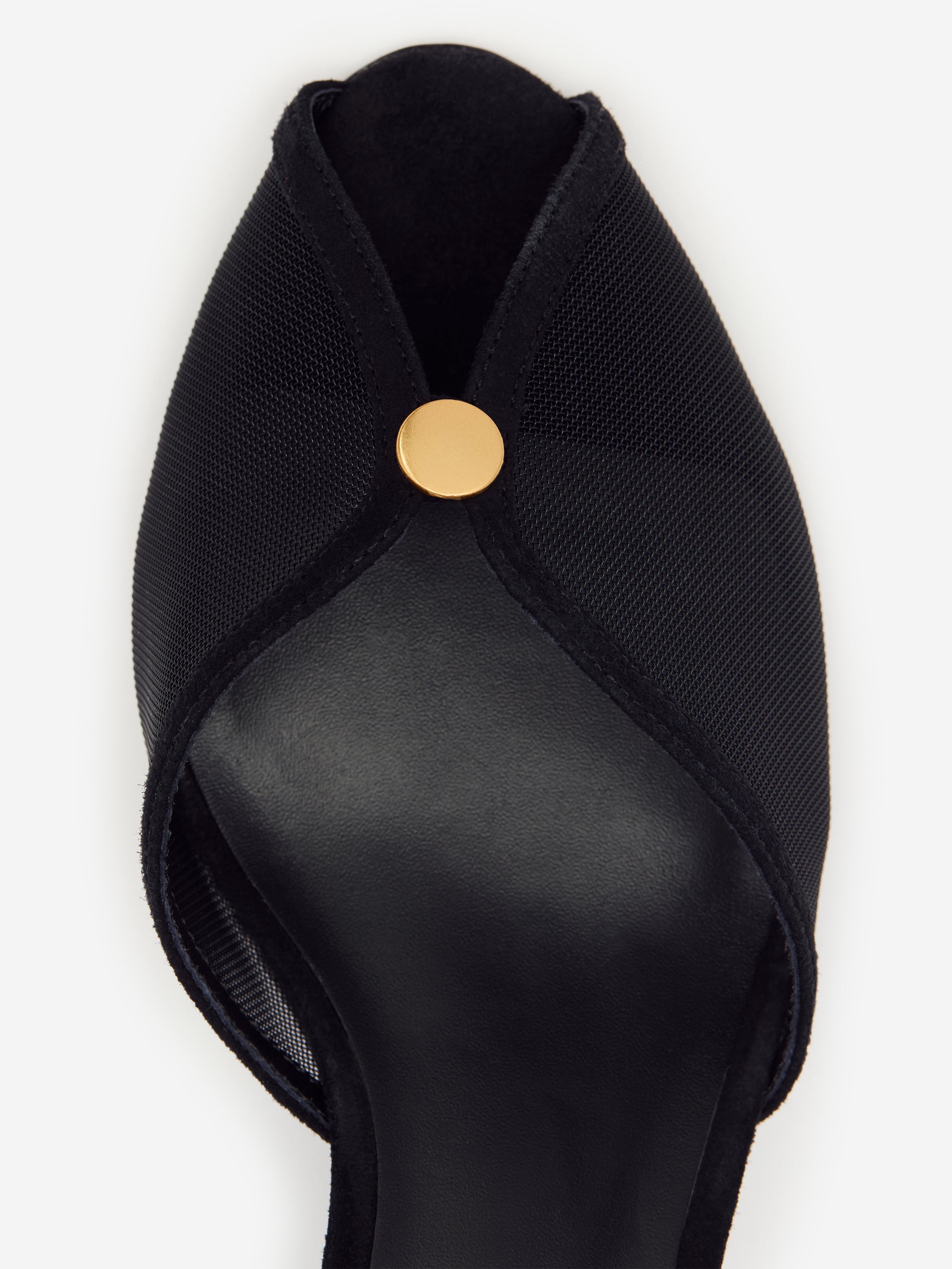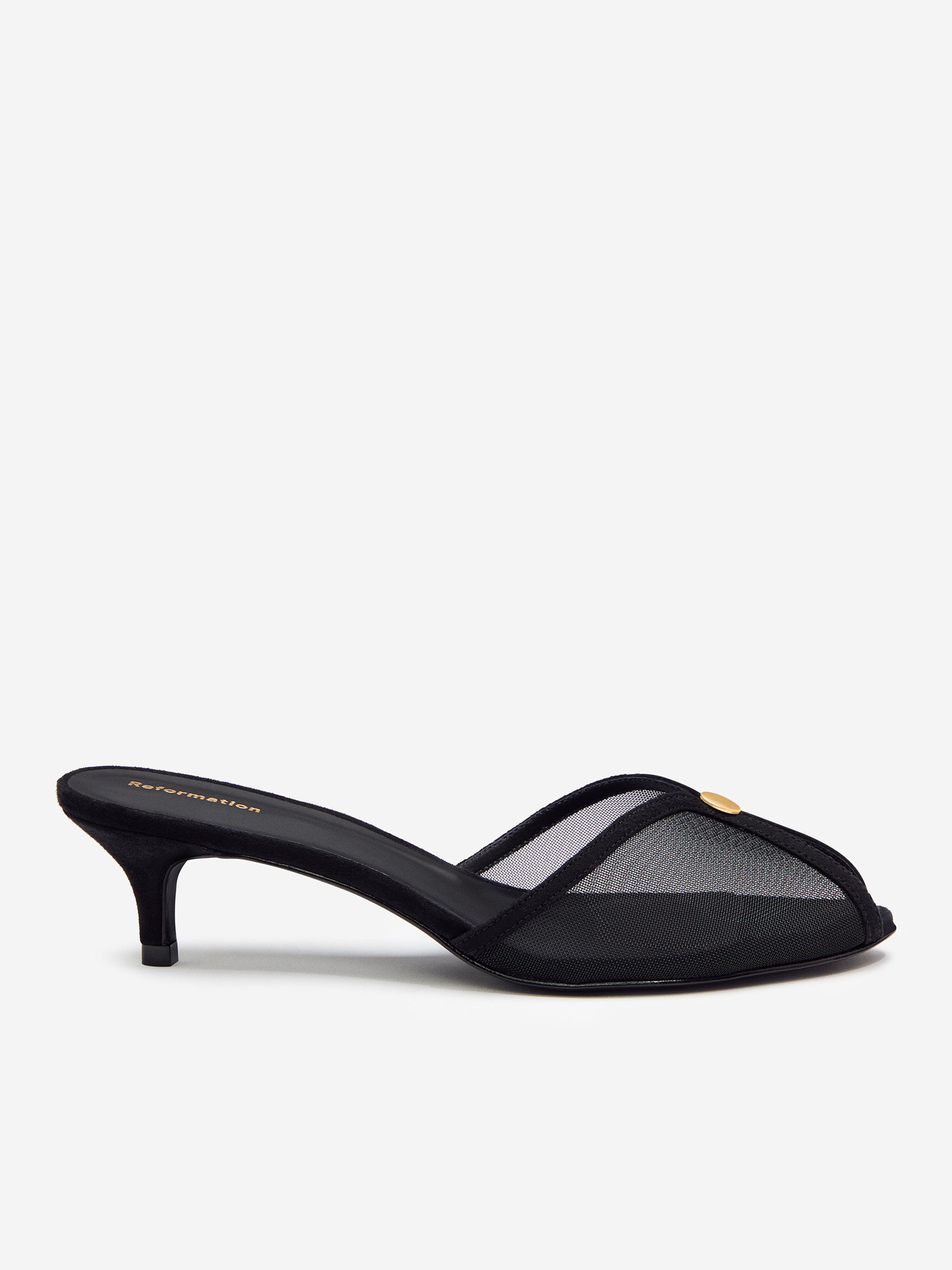 Detail oriented. Shop the Wisdom Heeled Sandal from Reformation, a heeled sandal with a peep toe and mesh details.