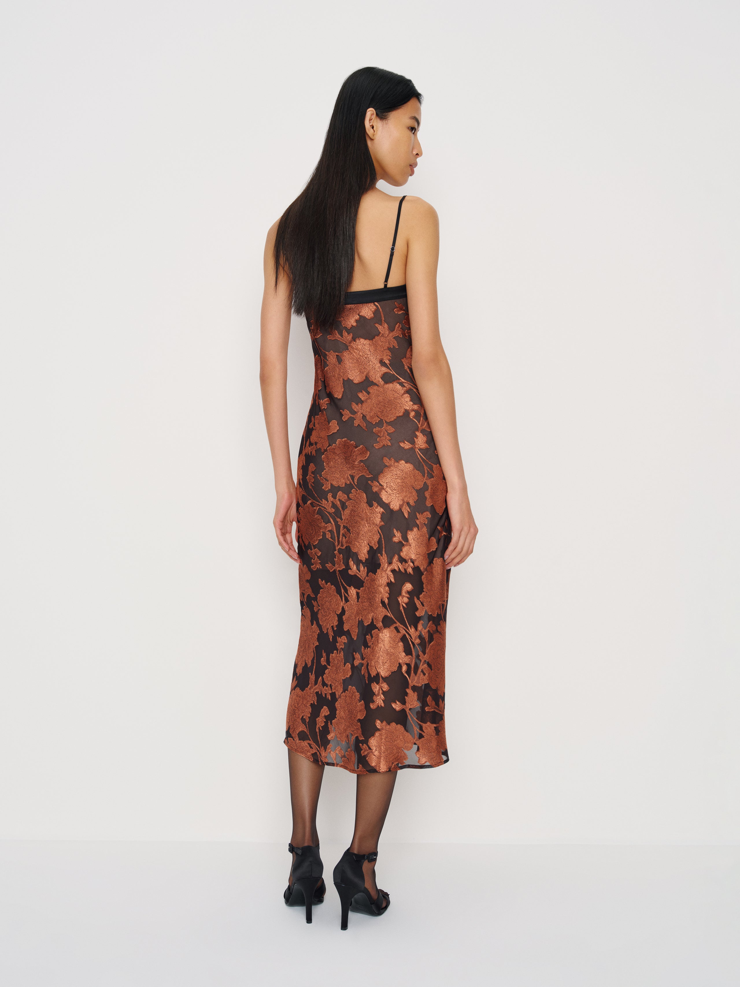 You flirt. Shop the Zahara Dress from Reformation, a midi dress with a straight neckline. Dress it up or dress it way up. We can be fancy when you need that.