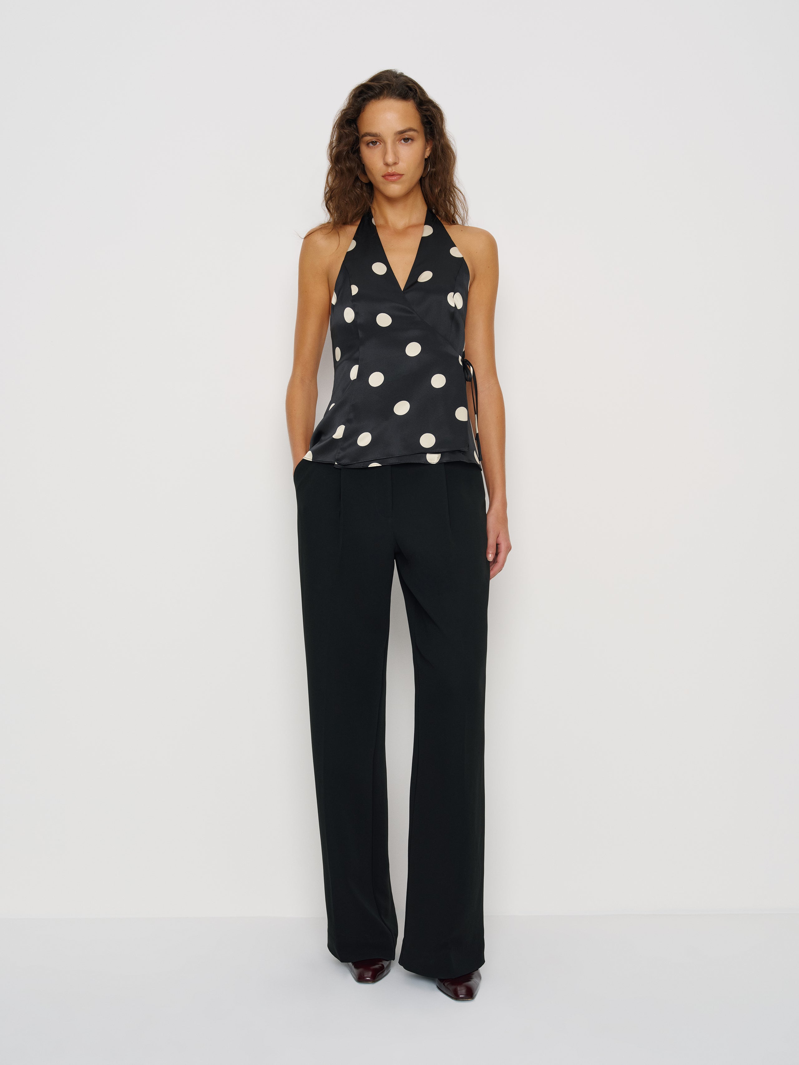 You must be new. Shop the Zavi Top from Reformation, a halter style wrap top with an adjustable tie at the side and an open back.