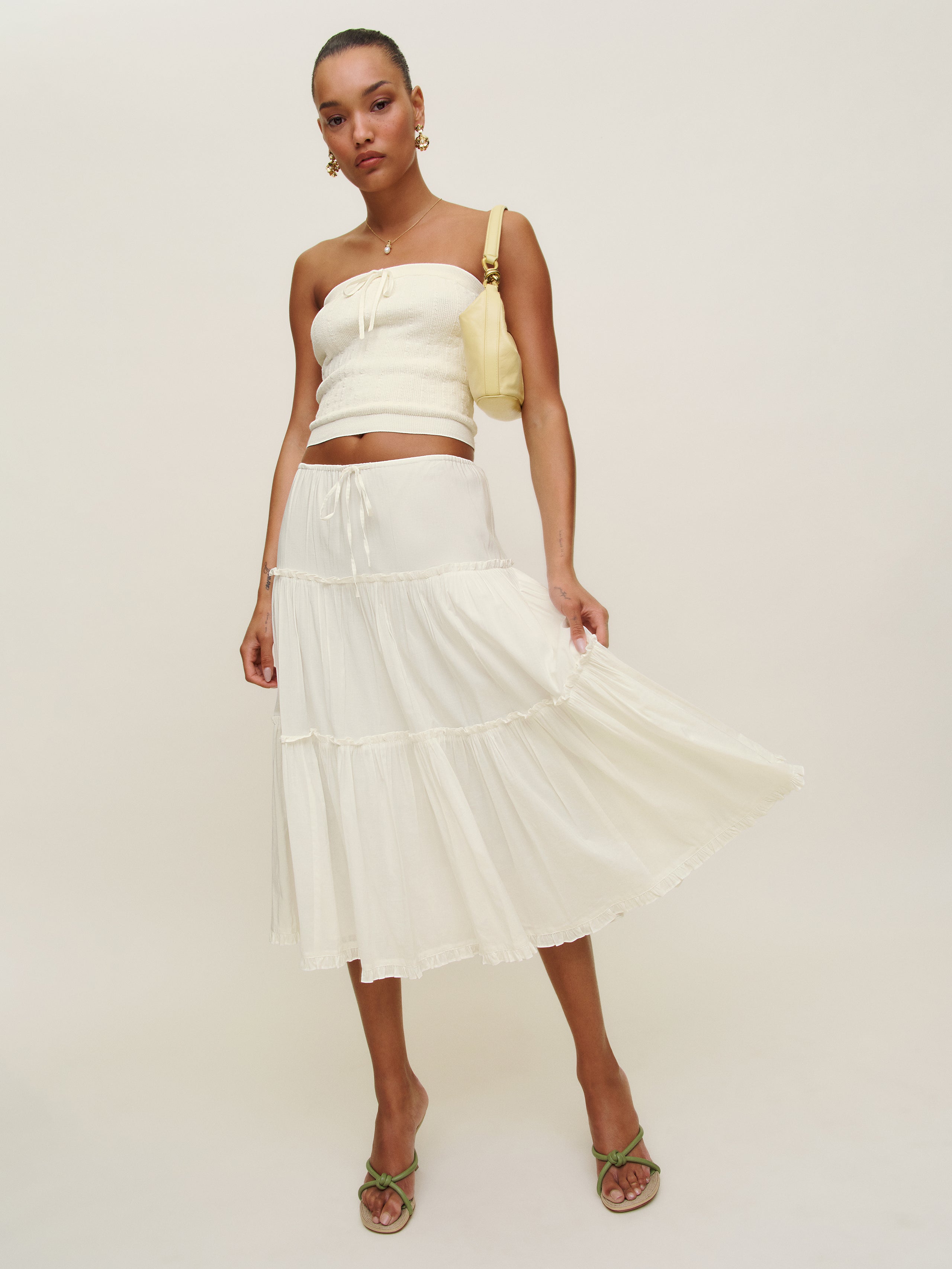 It's getting cold-ish. Shop the Zazie Cotton Strapless Sweater, a sustainable sweater from Reformation.